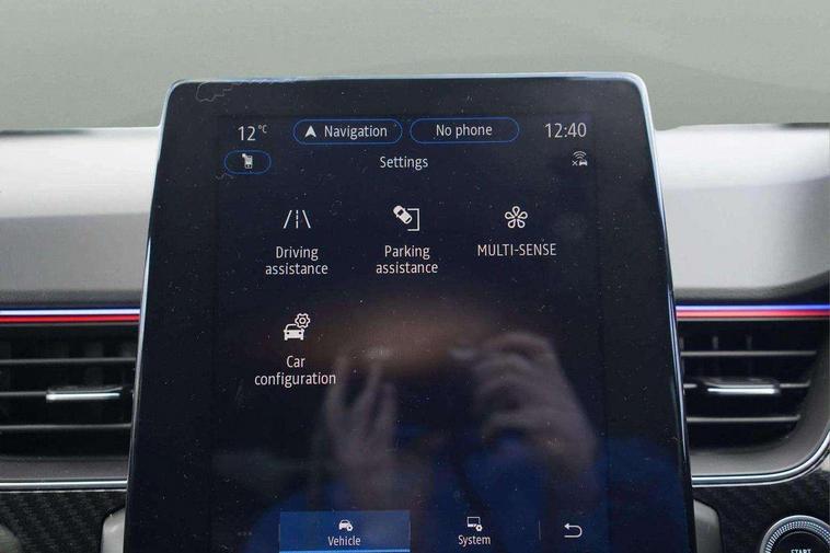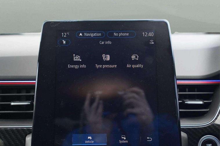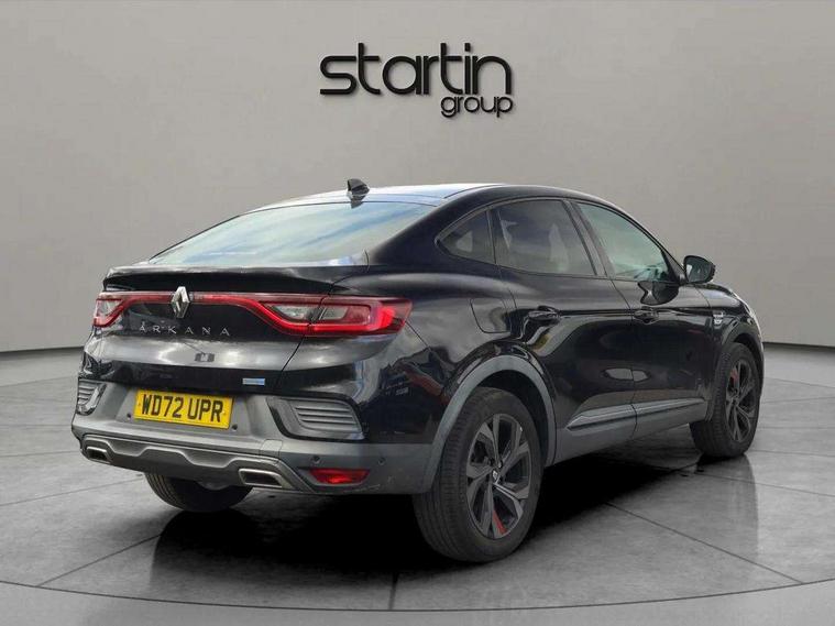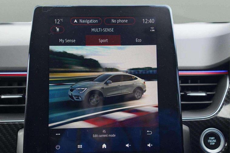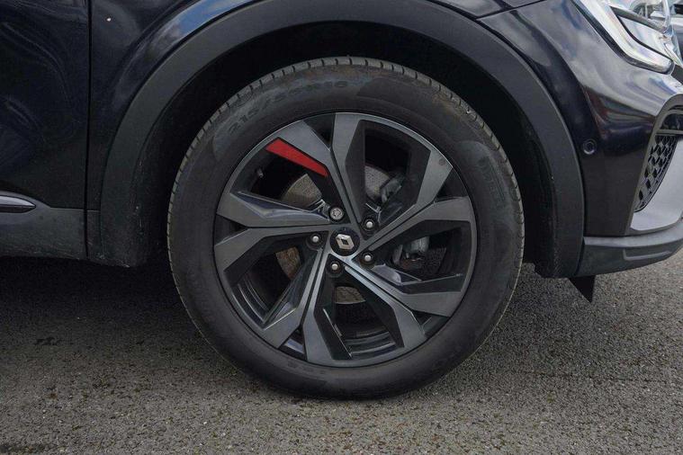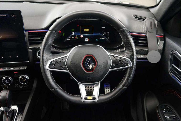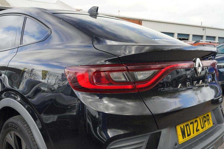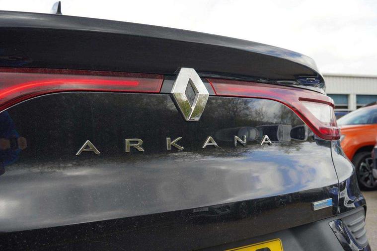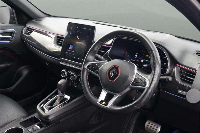 7" TFT Driver information display, Blind spot warning, Bluetooth system, EASY LINK 9.3" portrait touchscreen with navigation, Google search and traffic information, eCall emergency call system, Eco mode, EV button to activate pure mode, Front and rear parking sensors, Gear change indicator, Lane departure warning, Lane keep assist, Multi-sense - 3 driving modes and 8 ambient lighting, Rear cross traffic alert, Rear view camera, Renault automatic emergency assist, Smartphone integration compatible with Apple CarPlay and Android Auto, Traffic sign recognition with over speed prevention, Trip computer, Variable assistance electric power steering, Wireless phone charger, DAB radio, USB port, 3rd brake light, Auto dimming rear view mirror, Automatic headlights, Automatic high / low beam, Automatic windscreen wipers with rain sensor, Black side door protection with gun metal insert, Body coloured bumpers, C-shaped LED front signature lighting, Chrome decopart on wing (fender molding) with R.S. Line badge, Double chromed exhaust tailpipes elements, Extra tinted rear windows and tailgate, Frameless rear view mirror, Front and rear electric windows, Front bumper with F1 blade and honeycomb front grille, Front driver window with one touch facility and anti-pinch function, Front grille with chrome on upper part, Full LED headlights, Glossy black door mirror and lower window lining, Gun Metal front and rear skid plates, Heated rear window, R.S. Line badges on front wing and hatch door, Rain sensor, Rear windscreen wiper, Shiny black shark fin antenna, Side mirrors adjustable electrically, electrically foldable, with defrosting and temperature sensor, automatically foldable at vehicle closure, 3 seat bench in 2nd row, 60:40 split and fixed base rear seats, Aluminium pedals, Automatic climate control with combined filter, humidity sensor and AQS, Black interior roof lining, Carbon style dashboard, Central console with storage, Driver's seat height adjustment, Electrically adjustable front seats, Front and rear head restraints, Height and reach adjustable steering wheel, ISOFIX child seat fixing points on rear outermost seats, LED front and rear roof lights, Passenger seat height adjuster, R.S. line black suede-leather upholstery with red/grey stiching, R.S. Line perforated leather steering wheel with red/black harmony and R.S. Line badge, Rear air vents, Red inserts on air vents, Single front passenger seat, Parking Pack - Hands-free parking & flank protection - Arkana, Winter pack - Arkana, 3x3 point rear seat belts, ABS+EBA, Active emergency braking system, B Brake Mode - One pedal driving with increased regenerative braking, Distance warning alert, Driver airbag, Driver and passenger front and side airbag deactivation, Driver and passenger side airbags, Driver height adjustable seat belt, Electronic parking brake with auto hold, ESC (Electronic Stability Control), Front and rear no seatbelt warning sound, Front curtain airbags, Front head airbags, Hill start assist, Passenger airbag, Tyre pressure warning light, Anti drill door locks and locking fuel cap, Central door locking, Deadlocking system, Hands free keycard with Keyless access and start, RAID (Renault Anti-Intruder Device) automatic door locking, Rear side wing door and window child locking function (front driver door control panel), Superlocking, Thatcham alarm, 18" Silverstone diamond alloy wheels with red inserts,