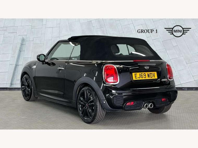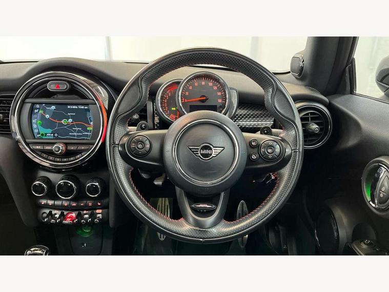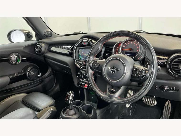Automatic start/stop function with brake energy recuperation, Compatible mobile phone bluetooth with audio streaming, Electro-mechanical speed dependant steering assistance, Instrument cluster, Mini E-call, MINI TeleServices, On board computer, Rear park distance control, Service interval indicator, Double Vanos system, Fully variable valve control, High precision injection, Performance Control, Steptronic sport transmission with double clutch and steering wheel paddles, 6.5" touchscreen with LED ring, FM tuner and DAB digital radio, Automatic headlight activation switch, Bonnet scoop, Chrome border honeycomb structure radiator grille with S badge, Chrome plated fuel cap, Dynamic brake lights, Electric windows, Fully electric black softtop with integrated sunroof functionality, Heated rear window, Heated windscreen washer jets, John Cooper Works - aerodynamic kit (front and rear apron, spoiler), front and rear sport bumpers and part-painted side sills with door sill finishers, LED headlight with closed ring and daytime driving lights, Metal door sill strips with Cooper S imprint, Model logo Cooper S on right of tailgate, Rain sensor window wipers, Rear fog lights, Rear LED lights with union jack design, Side scuttle panel with integrated indicator, Sun/heat protection glass, Two central exhaust tailpipes with chrome finisher, White indicator lenses, 12V Accessory socket in centre console, 4 lashing eyes in luggage compartment, 50/50 split folding rear seats, Chrome interior highlights, Cupholders, Easy Load boot handles, Front and rear isofix with front passenger airbag deactivation, Front seatback storage pockets, Glove compartment, Height and length steering column adjustment, Interior lighting with 12 basic colours selectable via toggle switch in roof, John Cooper Works perforated leather steering wheel with contrast stitching in chilli red and John Cooper Works logo, Leather gearshift lever and handbrake gaiters, Leatherette integrated headrest, adjustable thigh support with john cooper works logo, LED reading lights, vanity mirror lights, front foot well light and spotlight on front seats, Manual air conditioning, Mechanical seat adjustment, driver seat height adjust, forward/back and front seats backrest, Mini logo projection on floor from drivers exterior mirror, Multifunction steering wheel, Rear head restraints, Storage compartments in doors, Sunvisors with vanity mirrors, 3 point seatbelts on all four seats, 6 Airbags - front, side and seat belt tensioners, Active rollover protection, Anti-lock braking system (ABS), DSC - Dynamic Stability Control, Front and rear disc brakes, Hill start assist, Two tone horn, Tyre pressure monitoring system, Alarm system with tilt sensor, monitoring doors, bonnet interior and tailgate, Electronic vehicle immobiliser, Keyless Go, Tool kit,