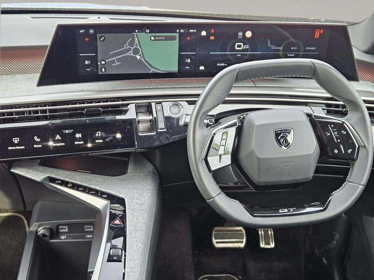 Adaptive cruise control with Stop and Go, Bluetooth with two microphones (Connect up to 2 phones), Drive modes select (Eco, normal and sport) with configurable ambient lighting, Driver foot rest, Driver profile selection, E-call, Exterior temperature indicator with ice warning, Front parking sensor, Front passenger seat detection, Hands free Smart Electric Tailgate (foot operated), Lane keep assist, Manual gear changes via steering mounted paddles, Multi function trip computer, Natural voice recognition, PEUGEOT i-Cockpit - 21" HD panoramic curved display incorporating instrument panel and touchscreen with 3colour themes, PEUGEOT i-connect advanced HD fully customisable touch screen, Navigation with Tom Tom Live updates and over the air map updates, PEUGEOT SOS and assistance, Rear parking sensor, Speed limit and traffic sign recognition and recommendation, Wireless mirror screen with apple carplay and android auto, Wireless smartphone charger with status light and ambient lighting, Dynamic stability control and electronic anti-skid system, AM/FM bi-tuner, DAB Radio (Digital Audio Broadcasting), Peugeot customisable virtual iToggles, USB-C sockets (2 x front and 2 x rear), 3008 model designation badgers front and rear in basalt grey, Acoustic windscreen, Automatic hazard light activation upon heavy brake application, Automatic headlamp activation, Automatic windscreen wiper activation with interval wiping intensity control, Black diamond roof and floating effect rear spoiler finished in nera black metallic, Body coloured exterior door handles, Dark tinted privacy glass for rear door, Tailgate and Quarter windows, Door mirrors - Welcome lighting and integrated LED indicators, Electric adjustable/heated/folding door mirrors, Flat blade wipers with magic wash integrated nozzles, Frameless electrochrome rear view mirror, Front and rear electric windows with one touch, Front grille with body coloured accents, Gloss black connecting strip between rear lights, Gloss black finish B pillar, Grained black lower door claddings and wheel arches, Heated rear window, Hybrid rear badging in basalt grey, Laminated windscreen, LED daytime running lights, LED exterior lighting, LED third brake light, Lower front and rear bumper trims in meteor grey, Orbital gloss black door mirrors, PEUGEOT shield on front wings, Pixel LED Technology headlights with adaptive high beam assist, Rain sensor, Rear full LED 3D peugeot signature claw effect lights with daylight function, Rear side wing doors, 2 cupholders in front centre console, 2 rear cupholders, 3 seat rear bench, 3x 12V sockets (Cabin front and rear and boot), 4 Grab handles retractable and damped, 4 tie down luggage rings, 40/20/40 folding rear seat backrest with fixed base, Aluminium pedals, Arch design central console with concealed storage, Cabin high efficiency filter, Central front armrest with ventilated storage compartment and LED lighting, Chrome finish interior door handles, Compact heated multifunction steering wheel with full grain leather Iced Clay stitching, gloss black and satin chrome detailing and GT badge, Dual zone climate control, Dynamic front seats, e-Toggle compact gear selector, Electric power steering with reach and rake adjustable steering column, Glasses storage box, roof mounted, LED boot light, LED footwell lights, LED front and rear roof lights, LED Glovebox light, LED illuminated driver and passenger concealed sunvisor mirrors, Luggage cover, Luxury front and rear carpet mats with Iced Clay stitching and GT logo, Mistral black pillars and headlining, Quick launch cabin heating/cooling function, Rear air vents, Rear smartphone holder, Roof lining - Meteor grey, Seatbelt unfastened on the move audible and visual alert for front and rear seats, Single front passenger seat, Stainless steel PEUGEOT door sill trims, Two bag hooks, Two position boot floor, 2x Isofix child seat fitting on outer rear seats with zipped cover, 3x3 point rear seat belts, ABS (Anti-lock Braking System) with EBD (Electronic Brakeforce Distribution) and EBA (Emergency Braking Assistance), Adaptive driver and front passenger airbags with passenger airbag deactivation function, Advanced Emergency Braking System with radar (AEBS3) providing night detection of pedestrians and cyclists, Child locking functionality on rear doors, Driver and front passenger side airbags, Electric parking brake, Front and rear curtain airbags, Front optimised safety headrests and 3 x rear retractable headrests with height adjustable, Front/rear disc brakes, Hill start assist, Post collision safety brake, Seatbelts - Front and rear outer seats with pyrotechnic pretensioners and force limiters, Tyre under inflation monitoring and detection (Indirect), 2x Keys (Lock, Unlock, Boot release function with concealed key), Acoustic vehicle alert system (AVAS), Automatic door locking when moving off, Deadlocking system, Electronic code immobiliser, Exterior passenger door lock, Locking wheel nuts, Peugeot Open and Go (keyless entry and push button start), Seatbelts reminder and unfastend warning indicator, Thatcham category 1 Perimetric and volumetric alarm with anti-lift detection, Aluminium printed dashboard and front door panel Alcove decor, Textile decor for dashboard, door panels and centre console arch, 19" YARI diamond cut alloy wheels with star center cap in orbital black, Michelin e-primacy class A tyres, Tyre repair kit includes 12V compressor, Sealant and storage box,