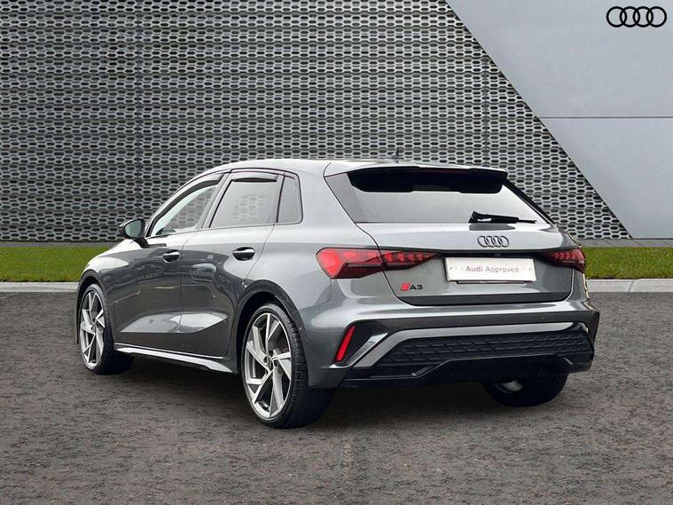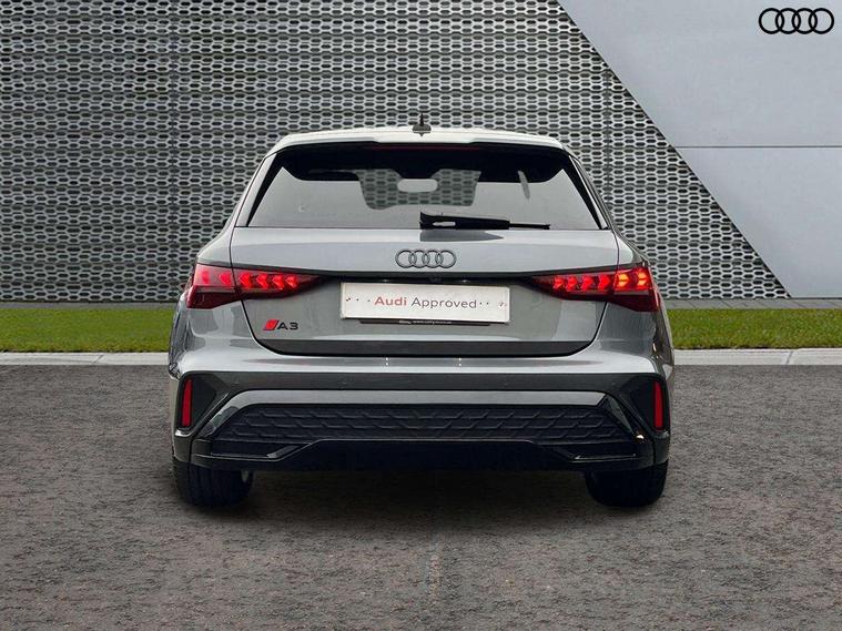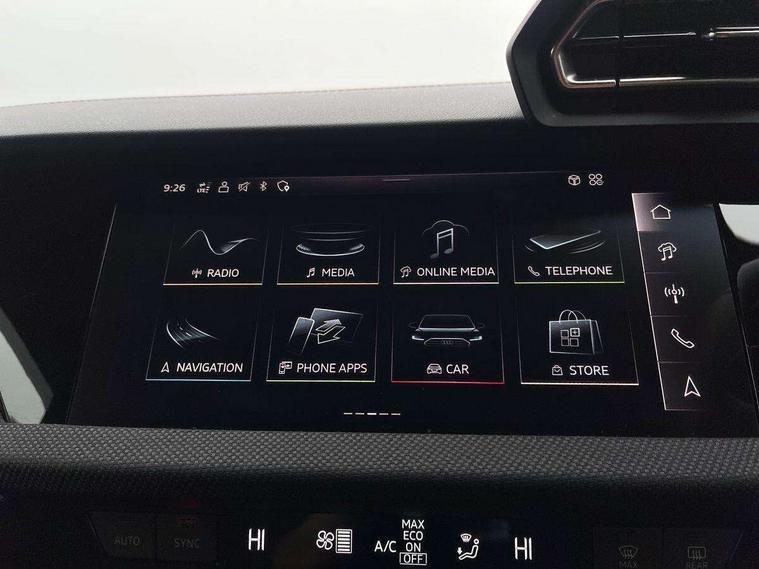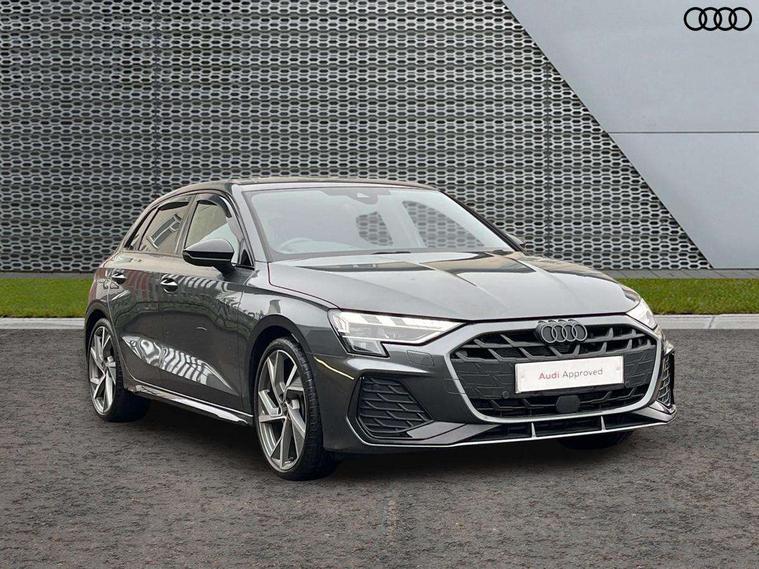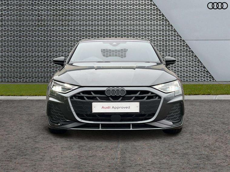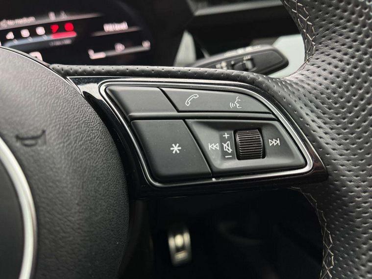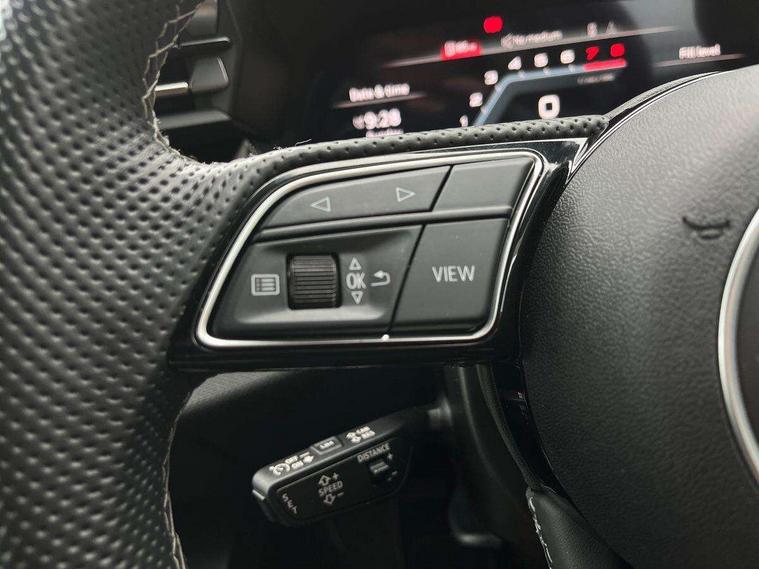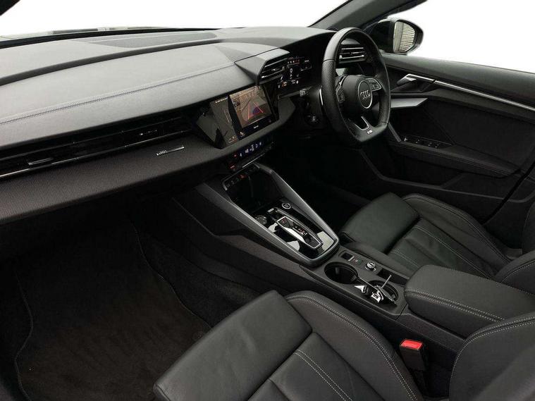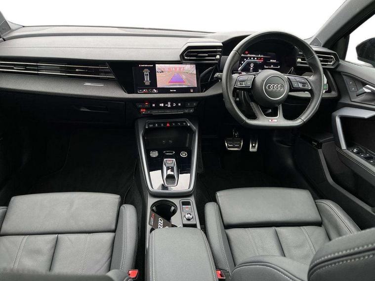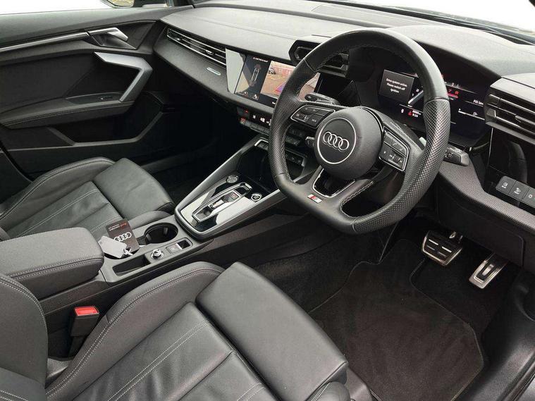 Adjustable speed limiter, Audi drive select, Audi smartphone interface with app store includes wireless Apple carplay, Android auto and Amazon alexa integration, Audi virtual cockpit plus - 12.3" full HD resolution dynamic digital instrument cluster, Automatic start/stop system with recuperation, Bluetooth interface, Camera based traffic sign recognition, Collision avoidance assistant, Cruise control, Distraction and Fatigue warning, e-Call (emergency call), Electromechanical power speed sensitive steering, Lane departure warning system, MMI Navigation Plus with high resolution 10.1" colour touch screen display, Park Assist with parking system Plus, Service indicator, Tailgate, Trip computer, Voice control system with natural language interaction, Sports suspension, Audi Phonebox light with wireless charging, Audi sound system - 10 loudspeakers including centre loudspeaker and subwoofer, DAB Digital radio, USB ports with charging function in the rear, Acoustic glass windscreen, Anthracite grey Audi rings (front and rear), Audi beam uses LEDs to project the Audi logo onto the ground as you exit your A3, Auto dimming frameless rear view mirror, Black accents front and rear bumpers, Black accents in the area of the Audi single frame grille, Black accents window trims strips, Electrically adjustable/heated/folding/auto dimming door mirrors with integrated LED indications + kerb view function for passenger side, Exterior model badging, Front electric windows, Heat insulating glass windscreen, Illuminated door sills with aluminium inserts at the front with S logo, LED 3rd brake light, LED daytime running lights, LED headlights with LED rear lights and dynamic rear indicators, Light and rain sensors, Privacy glass - dark tinted rear window, rear door and side windows, Rear electric windows, Rear side wing doors, Rear wiper, S roof spoiler, 12V socket and storage compartment in front centre console, 3 seat bench in 2nd row, 3 spoke flat bottomed leather multifunction sport steering wheel with gear shift paddles, 3-zone deluxe automatic air conditioning, 4 way electrically adjustable lumbar support for driver and front passenger, 40/20/40 split folding rear seat bench, Black cloth headlining, Front and rear centre armrest in artificial leather, Front and rear headrests, Front/rear floor mats, Heated front seats, Height and reach adjustable steering wheel, Manual boot compartment lid, Manually adjustable front seats, S badging on the steering wheel, Seat side bolsters, Single front passenger seat, Stainless steel pedals and front footrest in black, Twin leather upholstery with front sports seats S embossed logo, Aluminium interior elements pack - A3 Sportback, Multi-coloured LED interior lighting package - A3 Black Edition, 3x3 point rear seat belts, Driver and front passenger airbag with passenger airbag deactivation, Electronic Stabilisation Control (ESC) including ABS, ASR and EDL, First aid kit with warning triangle and 2 safety vests, Front side airbags with head airbags and interaction airbag, Hill hold assist, Pre-sense front with pedestrian and cyclist detection, Seatbelt monitoring, Tyre pressure loss indicator, Anti theft alarm, Anti-theft wheel bolts, Electronically operated child locks, Immobiliser, Remote control central locking, Inlays in black Impressum woven textile,