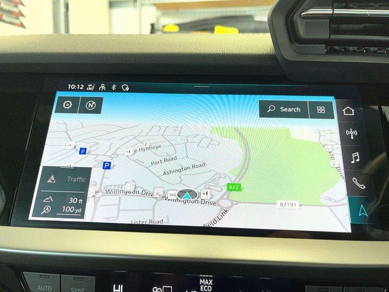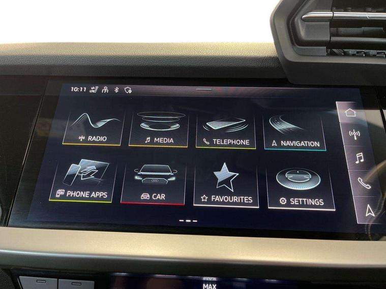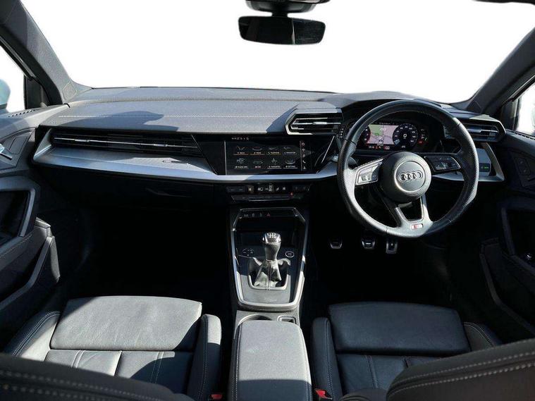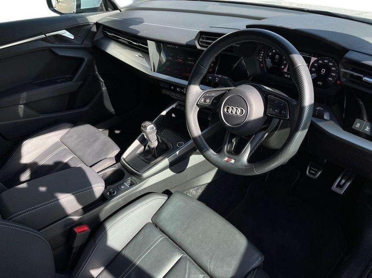 Audi connect emergency call and service, Audi drive select (Auto, Comfort, Dynamic, Efficiency and Individual), Audi smartphone interface, Audi Virtual Cockpit - 10.25" digital and colour instrument cluster, Automatic start/stop system with recuperation, Bluetooth interface, Collision avoidance assistant, Cruise control + speed limiter, Electromechanical power speed sensitive steering, Lane departure warning system, MMI Navigation Plus with high resolution 10.1" colour touch screen display, Rear parking sensors, Service indicator, Voice control system with natural language interaction, 2x USB Type C ports (for charging and data transfer), 6 passive loudspeakers, CD player, DAB Digital radio, 3rd brake light, Acoustic glass windscreen, Aluminium window trim, Auto dimming frameless rear view mirror, Electrically adjustable/heated/folding/auto dimming door mirrors with integrated LED indications + kerb view function for passenger side, Front electric windows, Illuminated door sills with aluminium inserts at the front with S logo, LED daytime running lights, LED headlights with LED rear lights and dynamic rear indicators, Light and rain sensors, Model and engine designation badges at rear, Privacy glass - dark tinted rear window, rear door and side windows, Rear boot, Rear electric windows, Rear side wing doors, S line bumpers, S roof spoiler, 12V socket and storage compartment in front centre console, 3 seat bench in 2nd row, 40/20/40 split folding rear seat bench with cupholder, Black cloth headlining, Dual zone electronic climate control, Front and rear centre armrest in leather, Front and rear headrests, Front/rear floor mats, Height and reach adjustable steering wheel, Illuminated vanity mirror, Interior lighting - glove compartment light and right hand side, Luggage compartment floor covering, Manual boot compartment lid, Manually adjustable front sport seats, Seat side bolsters, Single front passenger seat, Stainless steel pedals and front footrest in black, Twin leather upholstery with front sports seats S embossed logo, Aluminium interior elements pack - A3, S line styling pack - A3 Saloon, 3x3 point rear seat belts, Driver and front passenger airbag with passenger airbag deactivation, Electronic Stabilisation Control (ESC) including ABS, ASR and EDL, First aid kit with warning triangle and 2 safety vests, Front side airbags with head airbags and interaction airbag, Hill hold assist, Pre-sense front with pedestrian and cyclist detection, Seatbelt monitoring, Tyre pressure loss indicator, Anti theft alarm, Anti-theft wheel bolts, Immobiliser, Manual child locks, Remote control central locking, Aluminium air vent surrounds, Aluminium trim elements, Dark spectrum aluminium inlays, accent surfaces in the dashboard and centre console in platinum grey silk effect paint finish,