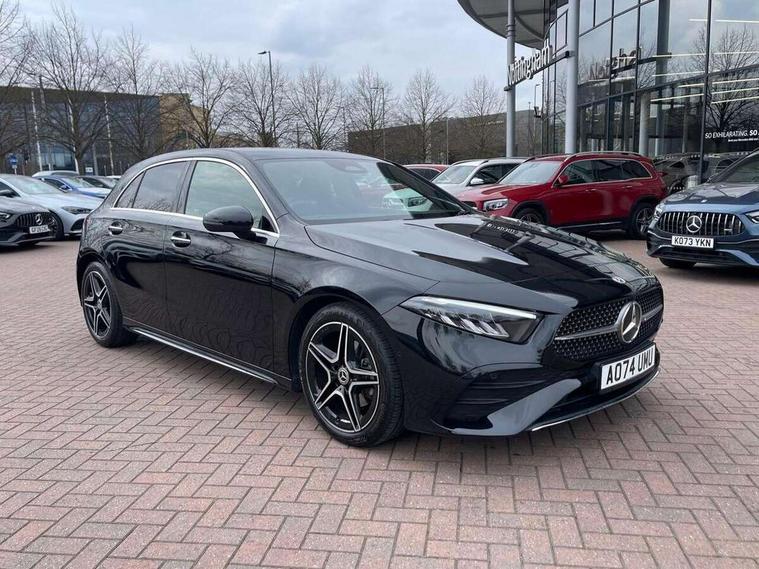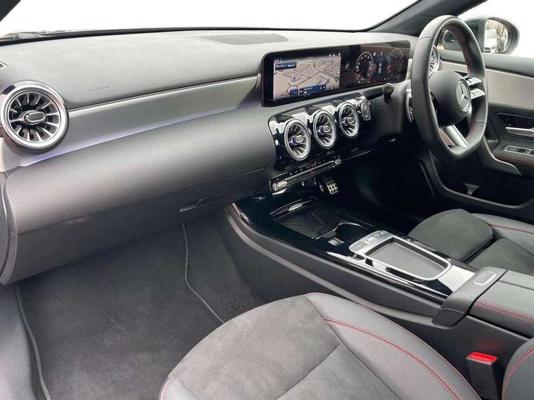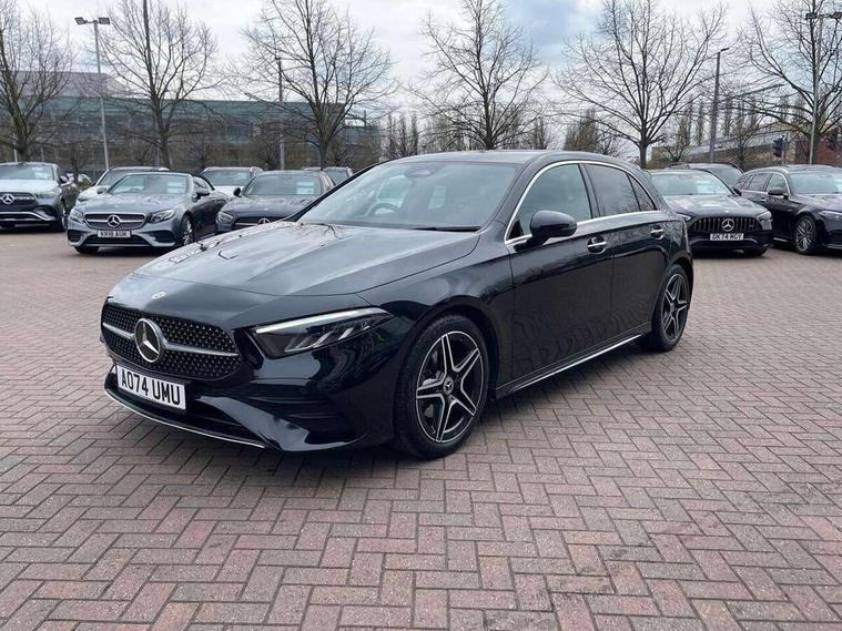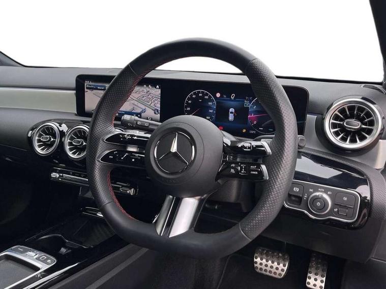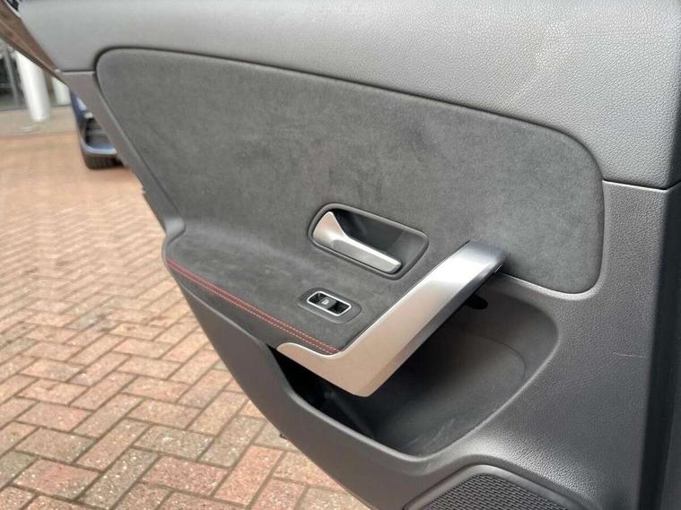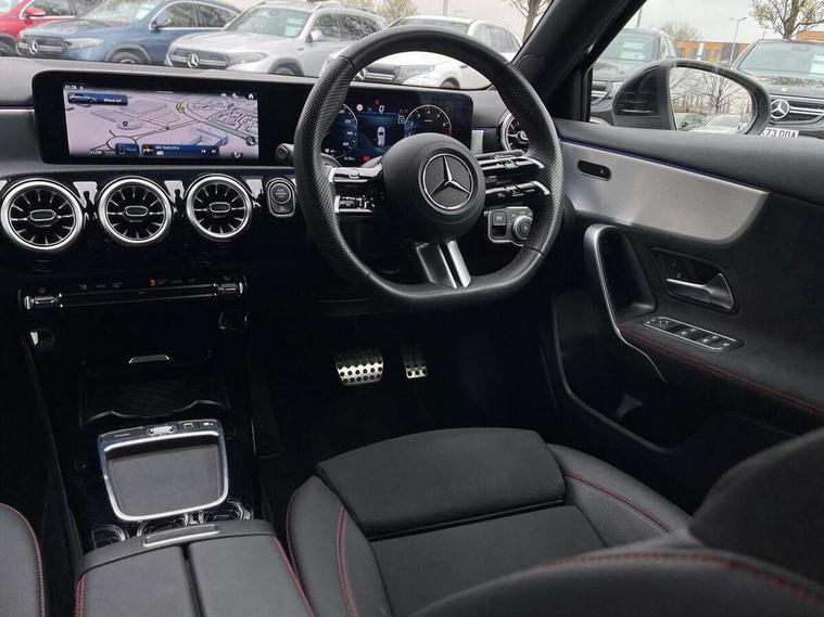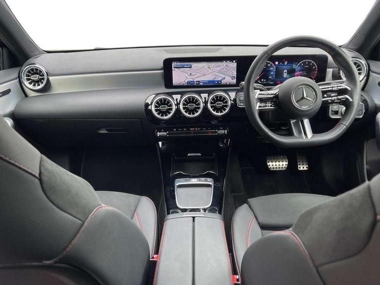 10.25 inch touchscreen central media display, 10.25" Digital instrument cluster display screen, Attention assist, Blind spot assist, Brake pad wear indicator warning light, Car wash mode, Cruise control + speed limiter, Direct steering, Direction indicators with lane change function, Dual bluetooth interfaces, DYNAMIC SELECT with a choice of driving modes (ECO, Comfort, Sport and Individual), Easy pack tailgate hands-free access, ECO start/stop function, Engine start/stop button, Fingerprint scanner, Fluid level warning indicator for fuel, oil, coolant and washer fluid, Fluorescent jacket for driver, Hard-disk navigation, Hey Mercedes Voice activation, Lamp failure indicator, Lane keeping system, Mercedes me connect including emergency call system, accident recovery, breakdown and maintenance management, Mercedes me remote services, Outside temperature gauge, Owners manual in English, Pre-installation of private car share, Preinstallation for Mercedes Benz link, Remote boot closing, Service indicator (ASSYST), Smartphone integration with Apple CarPlay and Android auto, Speed limit assist, Speed sensitive power steering, Tailgate, Trip computer in multifunction display with current consumption indicator, Wireless charging, Lowered comfort suspension, DAB Digital radio, MBUX multimedia system, Mercedes Benz sound system (100 W) with 6 speakers, 4 Electric Front and Rear windows, Adaptive brake lights, AMG body styling - AMG front apron with front splitter and AMG rear apron and visible exhaust tailpipe trim elements, Body colour bumpers, Body colour door handles with chrome inserts, Body colour side skirt, Body coloured door mirrors, Chrome beltline strips, Diamond radiator grille with pins in fine star pattern, Electric adjustable and heated door mirrors with integrated LED side indicators, Exhaust system with 2 visible tailpipe trim elements and rear apron, Headlamp assist automatic headlamp activation, Heat insulating dark tinted rear and rear side windows, Heated glass rear windscreen + timer control, LED High level third brake light, LED High Performance headlamps including integral LED daytime running lamps and adaptive highbeam assist, LED tail lamp, Privacy glass, Radio aerial, Rain sensing windscreen wipers with two sensitivity settings, Rear fog lights, Rear side wing doors, Rear windscreen wiper, Window line trim strip in chrome, 3 seat bench in 2nd row, 3 Spoke flat bottom leather multi function steering wheel with perforated leather in grip area, 4 way lumbar support, 40:20:40 split folding rear seats, Air conditioning - One zone THERMATIC automatic climate control with automatically controlled air distribution, AMG floor mats, Automatic child seat recognition sensor, Black air vents with surround in silver chrome, Black roof lining, Brushed stainless steel sports pedals with rubber studs, Front centre armrest with stowage, Front door sills with Mercedes Benz lettering, Front seat backs luggage nets, Galvanished gear shift paddles on steering wheel, Heated front seats, Height/reach adjustable steering column, Interior lighting - 64 colour Ambient lighting, Interior mirror with reading lamps in black and frameless, Rear armrest with 2 cupholders, Seat occupancy sensor for front passenger seat, Single front passenger seat, Sports seats with integrated headrests, Stowage compartment in centre console with retractable cover, Sunvisors with illuminated vanity mirrors, Twin front cupholders, Light and sight package - A Class, Mirror package - A Class, Parking pack with 180 degree view - A Class, Seat comfort pack - A Class, USB pack plus - A Class, 3 rear 3 point seatbelts, ABS with Brake Assist, Active bonnet, Active brake assist includes forward collision warning system with autonomous braking, Adaptive brake assist with hold function and hill start assist, Bonnet with power domes, Childproof locks manually operated for rear doors and electrically operated for rear power windows, Crash responsive emergency lighting, Driver and passenger head and side airbags, Drivers knee airbag, Dual stage driver/passenger airbags, Electronic parking brake, ESP curve dynamic assist, ESP with ASR, Front and rear seatbelt reminder, ISOFIX and top tether child seat fixing points in two outer rear seats, Tyre pressure monitoring system, Warning triangle and first aid kit, Window airbags, Alarm system/interior protection/immobiliser, Guard 360 degree vehicle protection, Keyless entry lock/unlock, Keyless Go, Remote central locking and crash sensor with emergency opening function, Black seatbelts, Light longitudinal grain aluminium trim, 18" AMG 5 twin spoke light alloy wheels, aerodynamically optimised, painted in black with high sheen finish, Summer tyres, Tirefit sealant kit,