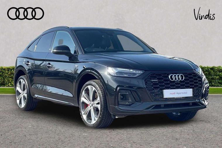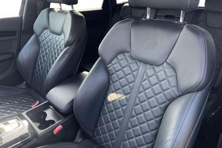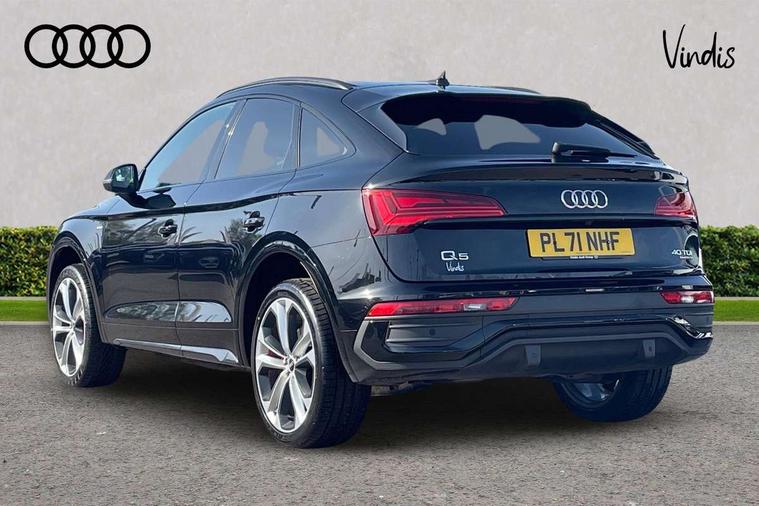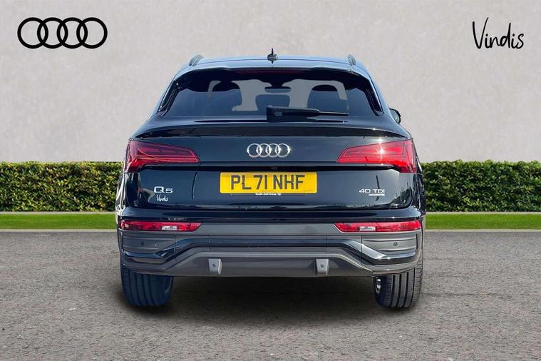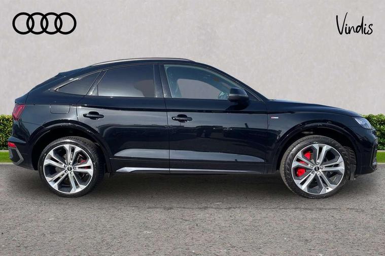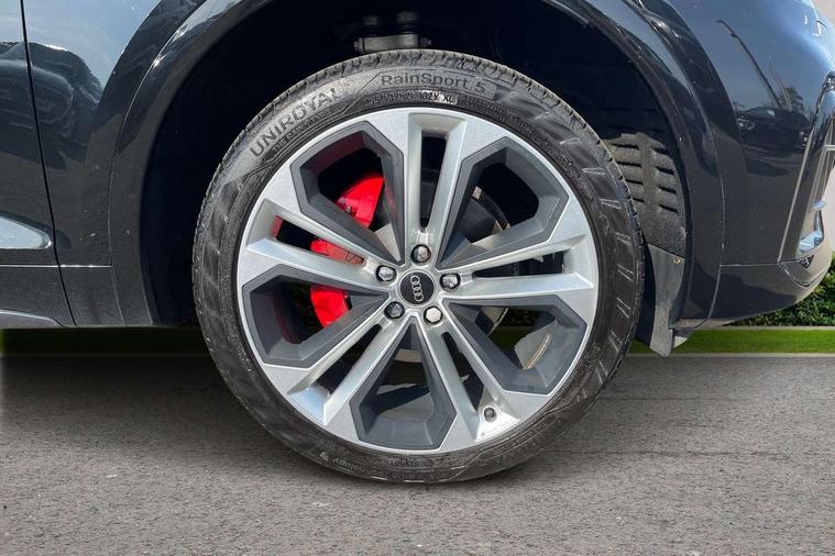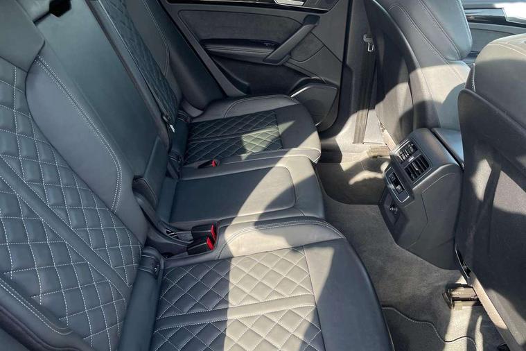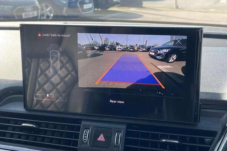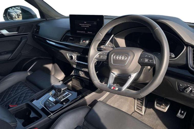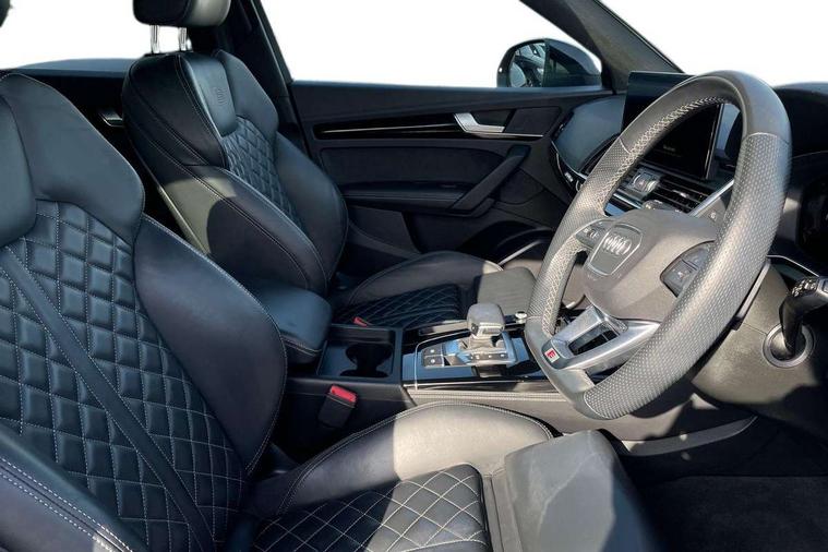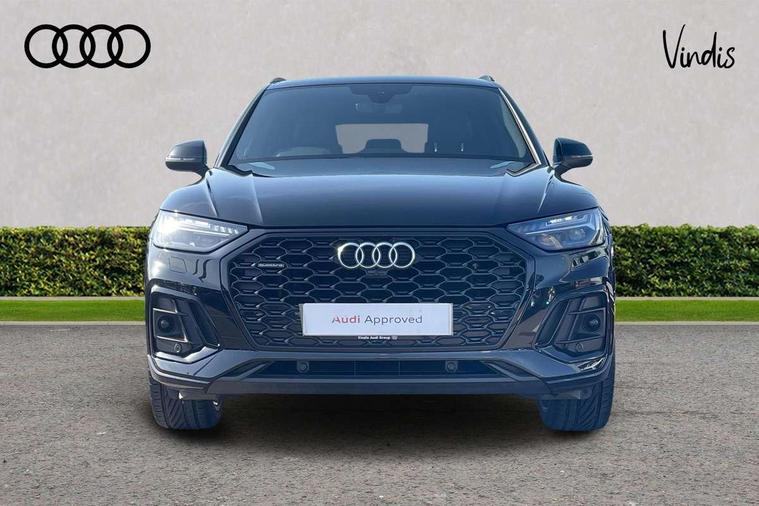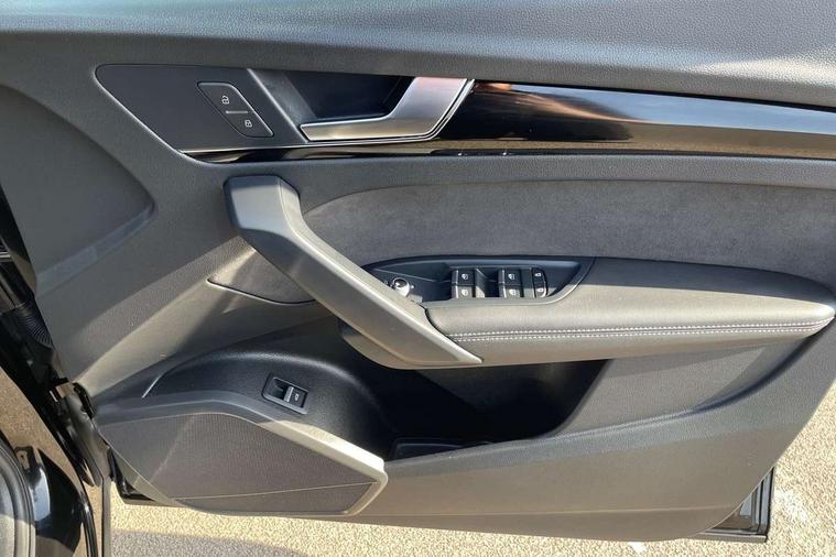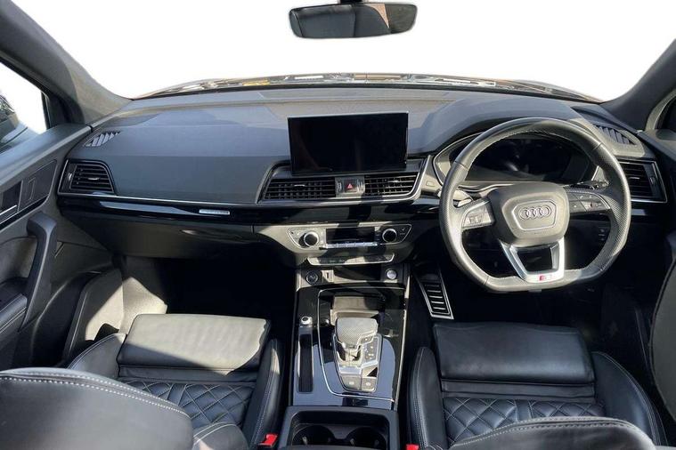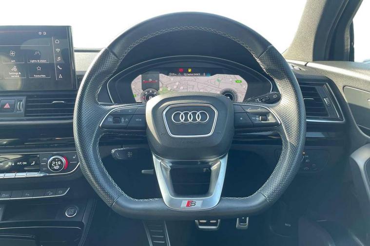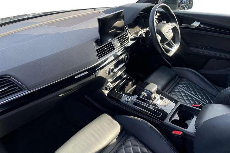 Audi connect safety and service (e-call), Audi connect with Amazon Alexa Integration, Audi drive select, Audi virtual cockpit plus with 12.3" screen and three different layout designs, Audi wireless smartphone interface, Automatic start-stop system with coasting functionality and efficiency programme, Bluetooth interface, Electro - mechanical power assisted steering, MMI navigation plus with 10.1" touch screen, Power tailgate, Reversing camera, Service interval indicator, Voice control system with Audi hotword activation "Hey Audi", Diesel particulate filter, Quattro on demand, S line sports suspension, 2 x USB charging port with aux input socket, DAB Digital radio, Acoustic windscreen, Audi beam with Audi rings logo, Audi matrix LED headlights with dynamic front and rear indicators, Audi rings at front and rear in black, Audi rings decal on rear doors, Auto dimming rear view mirror, Automatic headlights and windscreen wipers, Black door mirrors, Black roof rails, Body colour underbody protection, Chrome plated exhaust trims, Door sills in Selenite silver, Electric adjustable/heated/folding door mirrors, Front air inlet surrounds in aluminium, Front and rear electric windows, Headlight washers, High gloss black B pillar trims and triangular rear door trim, Rear chrome trim strip below lights, Rear privacy glass and rear side windows, Rear spoiler, Rear wiper, Roof bars, Without model and engine badging at rear, 3 rear headrests, 4 way electric lumbar support for driver and front passenger, 40:20:40 split folding rear seat with rear centre armrest, Black cloth headlining, Comfort front centre armrest, Contrast stitching on seats, steering wheel and gear lever gaiter, Deluxe 3 zone electronic climate control, Electrically adjustable front seats, Fine Nappa leather upholstery with diamond pattern contrast stitching + front sport seats with S embossed logo, Front head restraints, Front/rear floor mats, Gear lever in black leather, Heated front seats, Height/reach adjustable steering column, Illuminated door sill trims with S logo, ISOFIX child seat mounting and top tether, Rear seat bench plus, Removable luggage compartment floor, Stainless steel pedals, Sunvisors with vanity mirrors, Trunk roller cover, Artificial leather pack - Q5, Black styling package - Q5 Edition 1, Extended LED Interior multi coloured Lighting Pack - Q5, 3 point seatbelts on all seats, 6 airbags - Driver, front passenger, curtain and side airbags, Electrically operated child locks on rear doors, Electromechanical parking brake, Electronic stabilisation control including ABS, ASR and EDL, Front and rear brake calipers painted in red, Front passenger airbag deactivation, Hill descent control, Hill hold assist, Multi collision brake assist, Pop-up bonnet for pedestrian protection, Pre sense city, Seat belt force limiter, Seatbelt monitoring, Tyre pressure warning, Warning triangle and first aid kit, Anti theft alarm, Anti-theft wheel bolts, Keyless Go access/ignition system, Piano black finish inlay,