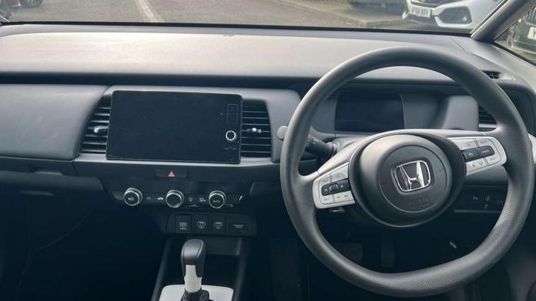 Adaptive cruise control, Adjustable speed limiter, Agile handling assist, Bluetooth hands free telephone connection, eCall emergency call system, Econ mode, Electric power steering wheel with variable gear ratio steering, Emergency stop signalling system, Forward collision warning, Front and rear parking sensors, Honda CONNECT with 9" touchscreen, AM/FM/DAB/Apple Carplay and android auto, Idle stop, Intelligent speed limiter, Lane departure warning system, Lane keep assist system, Low speed following, Multi-information display, Road departure mitigation, Traffic sign recognition, Vehicle stability assist, 'Shark fin' mobile antenna, 2x USB Front socket (1 data & 1 charge), 4 speakers, Remote audio controls on steering wheel, Aspheric door mirrors, Auto wipers, Automatic headlights with on/off timer, Coming/leaving home function, Body colour door handles, Body colour door mirrors, Body coloured bumpers, eHEV emblem, Electric adjustable door mirrors, Electric front windows, Electrically folding door mirrors, Heated door mirrors, High beam assist, LED daytime running lights, LED Headlights, LED rear lights, Rear side wing doors, Rear wiper, Single exhaust tailpipe, Third brake light, 3 seat bench in 2nd row, 60/40 split rear bench seat, Cargo net hooks, Climate control air conditioning, Driver and front passenger seat armrests, Driver and passenger front seat pockets, Driver's seat height adjustment, Fabric/leather upholstery, Front accessory power socket, Front head restraints, Front map lights, Front/rear courtesy lights, Isofix child seat restraint mechanism, Isofix points, Magic seat flexibility system, Plating interior door handles, Rear head restraints, Rear parcel shelf, Single front passenger seat, Sunvisors with vanity mirrors, Tilt/telescopic adjustable steering wheel, Tonneau cover, Trunk light, 3x3 point rear seatbelts, Anti-lock braking system (ABS), Brake assist function, Brake hold function, Child locks on rear doors, Collision mitigation braking system, Deflation warning system, Driver knee airbag, Driver SRS airbag (single stage inflation), Driver/Front Passenger airbags, Electric parking brake, Front and rear side curtain airbag, Front side airbags, Hill start assist, Passenger SRS airbag cut-off device, Rear side airbags, Whiplash lessening front headrests, Front seat belt with emergency locking retractor, Honda super locks, Immobiliser, Mirrors key fob operation, Remote central locking with 2 remote folding keys, Security alarm, Soft pad leather interior panels, 15" Multi apperance alloy wheels in mat berlina black, Tyre repair kit,