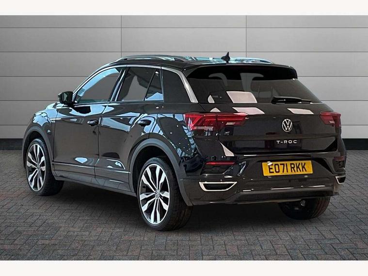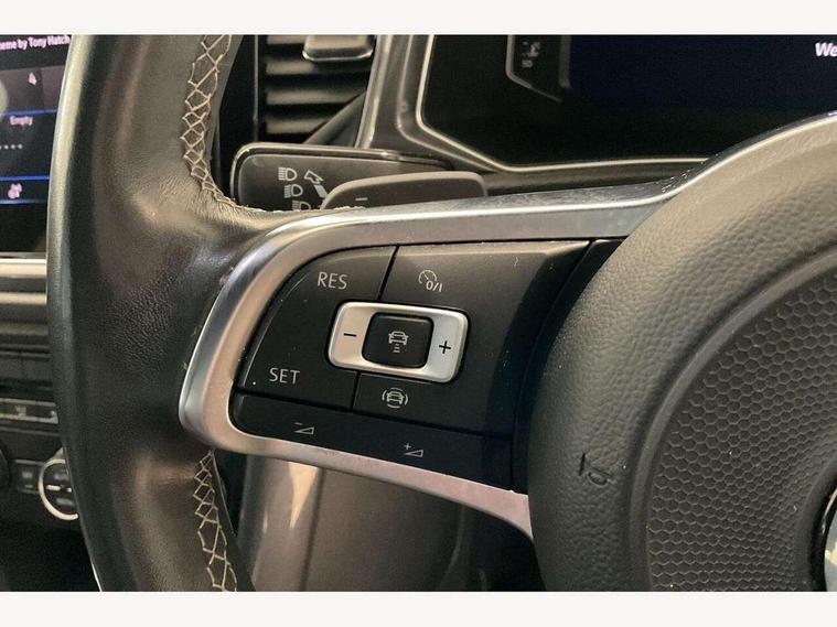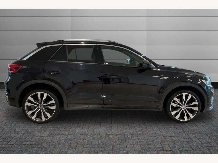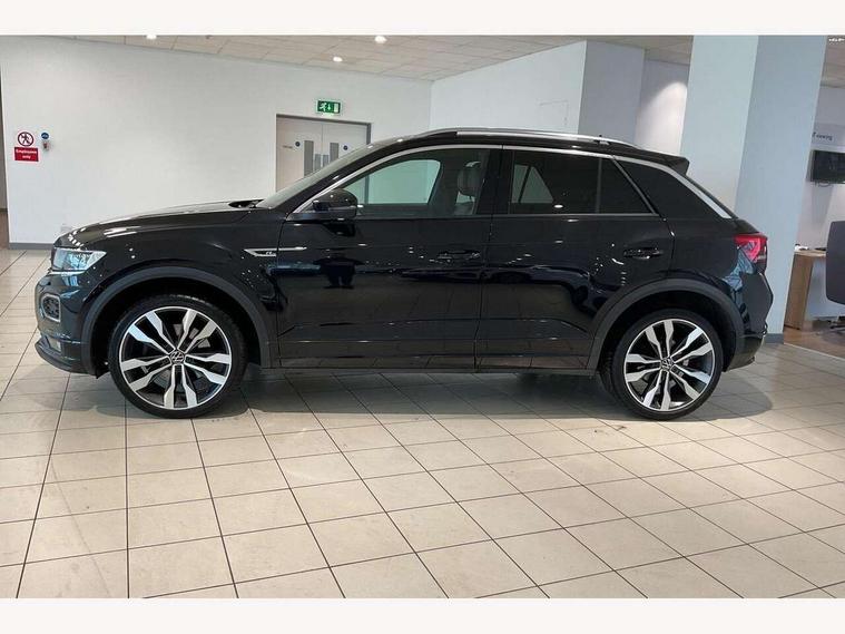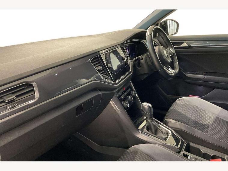 'Lights On' Reminder warning buzzer, Adaptive cruise control, Bluetooth telephone and audio connection for compatible devices, Car information display, Digital Cockpit Pro - Active info display, Driver alert system with audible and visual fatigue detection system, Driver tips and journey analysis, Dusk sensor, Emergency call service, Lane assist with warning text instrument cluster, Modified key software - reduce switch off time for key status change to Long no motion, Multifunction camera, Multifunction computer with visual gear change recommendation for fuel consumption, Navigation system discover media including streaming and internet, Service interval indicator, Think blue trainer driver tips and journey analysis, Traffic sign recognition, Voice activation, Warning sound and light for front seatbelts unfastened, Wireless app connect for apple carPlay, Battery regeneration during braking, Rear shock absorption for sports version, Start/stop function with battery regeneration, DAB Digital radio, Disk brakes in front, Diversity antenna for FM reception, Music playback - MP3, WMA and AAC files, Premium USB cable in choice of either Apple or Android smartphone compatibility, SD card slot, Simultaneous pairing of 2 compatible mobile devices, SMS functionality - read, compose and send SMS messages using touch-screen display, Storage compartment with longitudinal and height adjustable in armrest and two rear air vents, Three route options - Fast, Short, Eco, Title and cover art display, USB-C Interface and USB charging socket, Auto dimming interior rear view mirror, Automatic coming/leaving home lighting function and daytime running lights, Automatic hazard lights activation under emergency braking, Black grained lower door protectors, Body colored door lower parts, Body colour door handles, Body colour rear roof spoiler, Chrome effect left and right trapezoid exhaust tailpipe fascia surround, Chrome plated moldings, Chrome plated radiator grille inserts, air vent surrounds and light switch surrounds, Chrome trim on upper and lower radiator grille, Dynamic headlight range control with self adjusting whilst driving, Electrically foldable, adjustable and heated door mirrors with puddle lights and reverse activated kerb-view adjustment on passenger's door mirror, External USB type C socket and charging sockets, Front and rear electric windows, Front fog lights with static cornering function, Front windscreen wiper with intermittent wipe and 4 position delay, Fully galvanised body, Heated rear window, Heated windscreen washer jets, High level 3rd brake light, LED darkened rear light clusters, LED headlamps with automatic range adjustment and unique signature LED separate daytime running lights, LED rear number plate lights, LED tail lamp rear comination lamps, Privacy glass, R-Line design body coloured bumpers, Rain sensor, Rear tinted glass from B-pillar backwards approx 65% tinted, Rear wash/wipe with intermittent wipe setting, Silver anodised roof rails, Volkswagen roundel, 12V socket in centre console storage area, 3 rear head restraints, 4 load lashing points in luggage compartment, Aluminium pedals, Black roof lining and sun visors, Branded points of interest, Carbon flag cloth upholstery, Climate control - 2 zone electronic air conditioning with automatic air recirculation and allergy filter, Door and side trim panel, Door and side trim panel in foam film, insert in leatherette, Drawer under drivers seat, Front + rear carpet mats, Front centre armrest, Front cupholders x 2, Front seat back storage pockets, Front sports seats with R-Line logo on seat backrest, Glovebox, Heated front seats, Height adjustable front seats, Height/reach adjust steering wheel, Instrument lighting, white adjustable panel illumination, Interior light delay, Interior light in footwell, Isofix easy fit child seat preparation for 2 outer rear seats, Leather gearshift knob, Leather multi function sport steering wheel with gear change selection via paddle shift on steering wheel, LED interior light with switch off delay/dimmer and 2 front/rear LED reading lights, Load through provision with single cup holder when folded down, Luggage compartment cover, removable, Luggage compartment lighting, R Line badge, Scuff plates in door apertures, Split folding rear seat backrests with centre armrest, Stainless steel pedals, Storage compartment in left and right luggage area, Storage compartment in rear doors, Storage compartments in driver and front passenger doors, Sunvisors with illuminated vanity mirrors, Unique R Line door sill protectors, White ambient lighting, R line styling pack - T-Roc, Winter pack - T-Roc, 3 rear three point seatbelts, ABS, Curtain airbags, Driver and front passenger safety-optimised head restraints, Drivers and front passengers airbags with passengers deactivation switch, Drivers seatbelt reminder, Electronic parking brake with auto hold, Electronic stability control (ESC) includes ASR, EDL, EDTC and trailer stabilisation function, Front assist with city emergency braking and pedestrian monitoring, Front seat side impact airbags, Hill start assist, Predictive pedestrian protection, Rigid safety cell with front and rear crumple zones, Single tone horn, Three point height adjust front seatbelts + pretensioners, Tyre pressure loss indicator, Ventilated front and rear disc brakes, Volkswagen roadside assistance, Alarm with remote central locking and interior protection, Electronic engine immobiliser, Remote central locking with SAFELOCK, radio remote control with 2 remote control folding keys, Shadow grey decorative inserts in dash, centre console and door panel, 19" Suzuka alloy wheels with low rolling resistance tyres and anti wheel bolts,