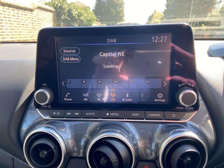 7" full colour TFT screen combimeter, Apple CarPlay and Google Android auto, Drive modes select (Eco, normal and sport), Emergency and breakdown call, Front parking sensor, Idle start/stop system, Intelligent lane intervention, Lane departure warning system, Nissan connect 8" touch screen entertainment system, Nissan connect nav with TomTom traffic, Nissan connect services and Wifi connection, Outside temperature sensor, Power Steering, Rear parking sensor, Traffic sign recognition, Trip computer, Voice recognition, Gasoline particulate filter, 6 speakers, Bluetooth system, USB, Aux-in and 12V socket, DAB Digital radio, Rear console USB port, Auto dimming interior rear view mirror, Auto headlights, Automatic hazard signal with emergency stop signal, Body colour bumpers, Body colour door handles, Electrically adjustable door mirrors with integrated indicators, Follow me home headlights, Front and rear electric window with one touch driver window, Heated and auto folding door mirrors, High beam assist, LED daytime running lights, LED headlamps, LED rear fog lamp, LED rear lamps, Rain sensor windscreen wipers, Rear privacy glass, Rear side wing doors, Rear wiper, Three blink turn signal, 3 height adjustable rear headrests, 3 seat bench in 2nd row, 60/40 split folding rear seat, Automatic climate control, Card holder on driver sunvisor, Cloth upholstery with black and metallic grey syntech leather inserts, Driver and passenger sliding and reclining seats, Driver side rear coat hanger, Driver/passenger sunvisors and vanity mirrors, Front and rear cabin lights, Front armrest, Front door pockets with bottle holders, Front head restraints, Front/rear passenger grab handles, Grey synthetic leather kneepad, Height adjustable driver's seat, Internal chrome door handles, Leather gearshift knob, Leather steering wheel, Luggage board, Luggage space lighting, Monoform sporty seats, Multifunction steering wheel, Rear door bottle holders, Single front passenger seat, Steering wheel mounted gearshift paddles, Telescopic steering wheel adjustment, Two cupholders in front centre console, Two rear isofix child seat anchorage points with top tether, Welcome light and console tray ambient lighting, ABS with EBD and brake assist, Active ride control, Active Trace Control, Driver and passenger airbags, Driver and passenger side airbags, Electric handbrake with auto hold function, Electronic Stability Programme (ESP), Front and rear curtain airbags, Height adjustable seatbelts, Hill start assist, Intelligent emergency braking with pedestrian and cyclist recognition, Rear door child safety locks, Seatbelt reminder for driver/front passenger and rear seats, Single tone horn, Three 3 point rear seatbelts, Traction control, Tyre pressure monitoring system, VDC Dynamic Vehicle Control, Ventilated rear brake discs, Alarm, Immobiliser, Intelligent key and start push button with walk away lock and approach unlock functions, Remote central locking,