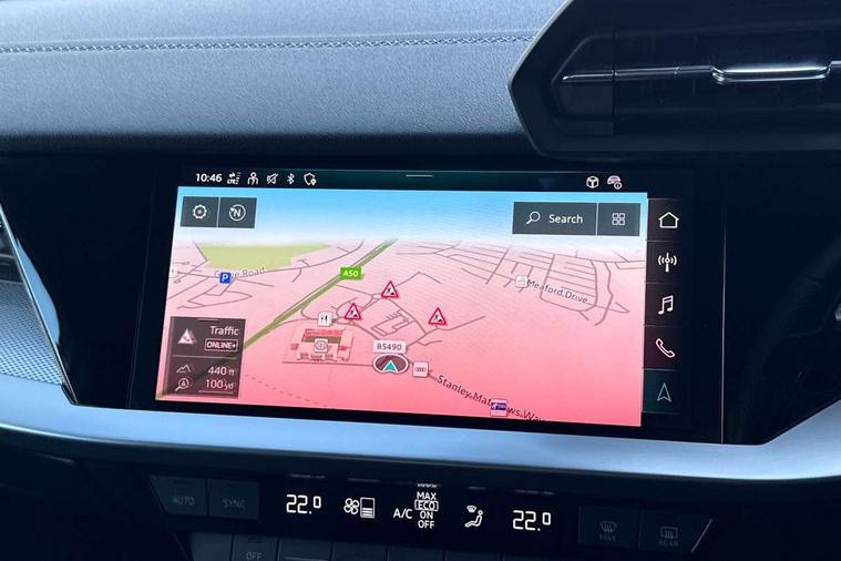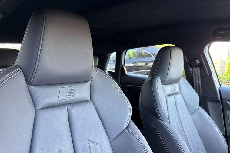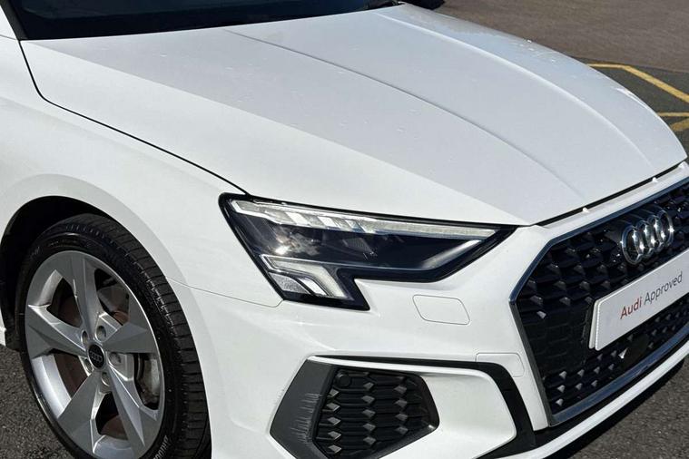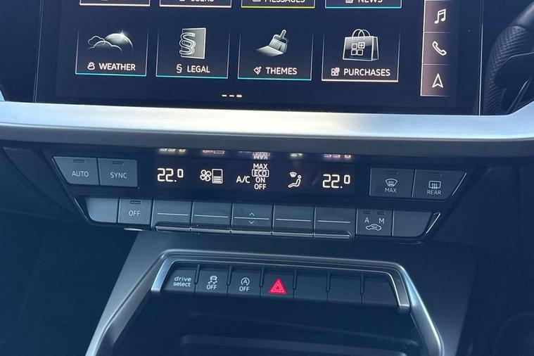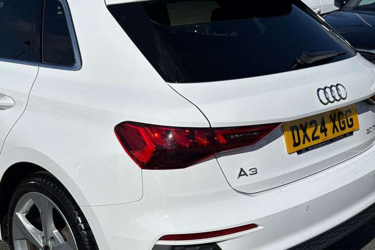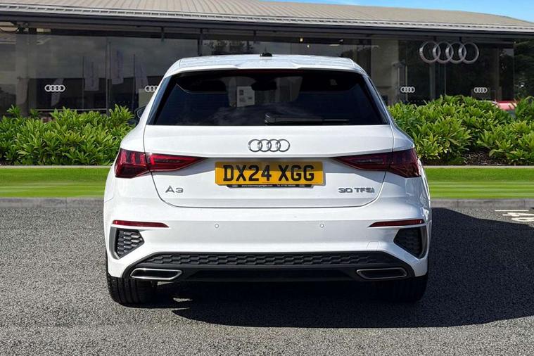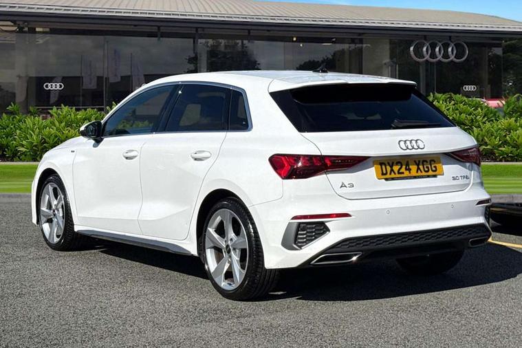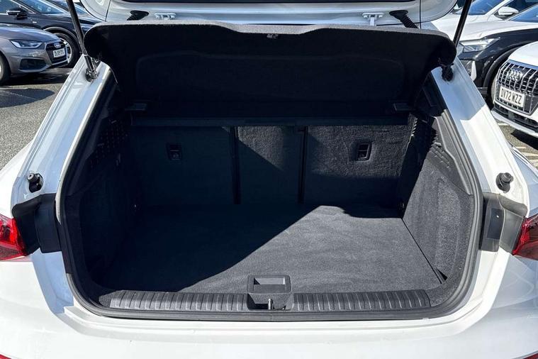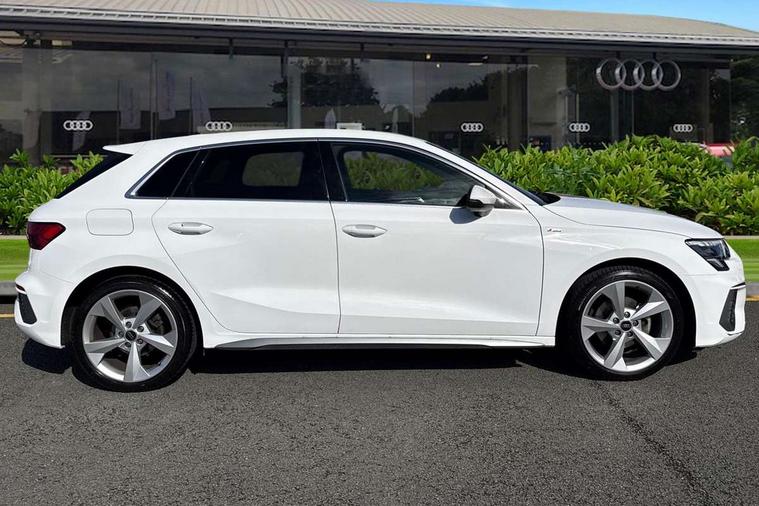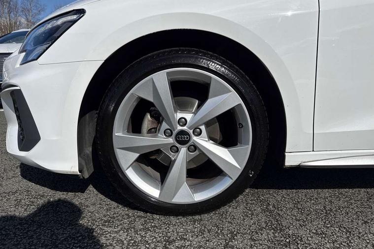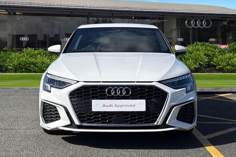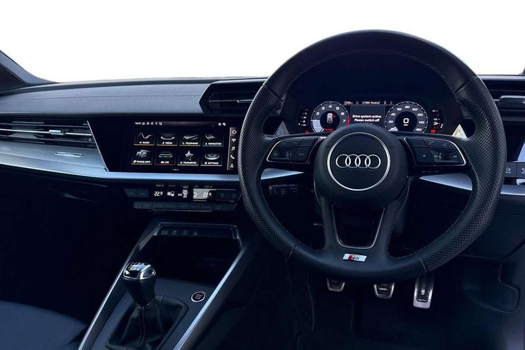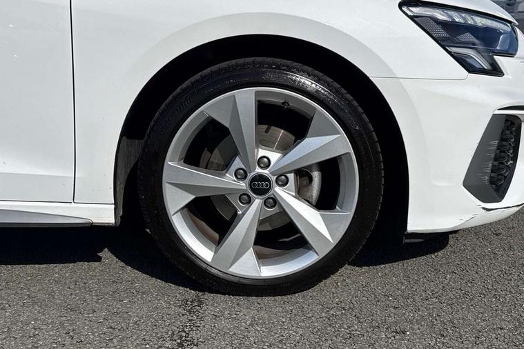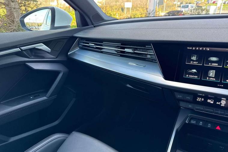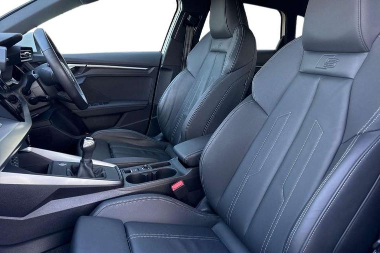 Audi drive select (Auto, Comfort, Dynamic and Individual), Audi smartphone interface, Audi Virtual Cockpit - 10.25" digital and colour instrument cluster, Automatic start/stop system with recuperation, Bluetooth interface, Camera based traffic sign recognition, Collision avoidance assistant, Cruise control, e-Call (emergency call), Electromechanical power speed sensitive steering, Lane departure warning system, MMI Navigation Plus with high resolution 10.1" colour touch screen display, Rear parking sensors, Service indicator, Trip computer, Voice control system with natural language interaction, Sports suspension, 2xUSB-C connection with data and charging functions, 6 passive loudspeakers, DAB Digital radio, 3rd brake light, Acoustic glass windscreen, Aluminium window trim, Auto dimming frameless rear view mirror, Body colour exterior mirrors, Electrically adjustable/heated/folding/auto dimming door mirrors with integrated LED indications + kerb view function for passenger side, Front electric windows, Illuminated door sills with aluminium inserts at the front with S logo, LED daytime running lights, LED headlights with LED rear lights and dynamic rear indicators, Light and rain sensors, Privacy glass - dark tinted rear window, rear door and side windows, Rear electric windows, Rear side air outlets in grained matt black, Rear side wing doors, Rear wiper, S line bumpers, S roof spoiler, 12V socket and storage compartment in front centre console, 3 seat bench in 2nd row, 3 spoke leather multifunction steering wheel, 4 way electrically adjustable lumbar support for driver and front passenger, 60/40 split folding rear seat bench, Black cloth headlining, Dual zone electronic climate control, Front and rear centre armrest in artificial leather, Front and rear headrests, Front/rear floor mats, Height and reach adjustable steering wheel, Interior lighting - glove compartment light and right hand side, Luggage compartment floor covering, Manual boot compartment lid, Manually adjustable front seats, Seat side bolsters, Single front passenger seat, Stainless steel pedals and front footrest in black, Twin leather upholstery with front sports seats S embossed logo, Aluminium interior elements pack - A3 Sportback, LED interior lighting pack - A3 Sportback, S line styling pack - A3 Sportback, 3x3 point rear seat belts, Driver and front passenger airbag with passenger airbag deactivation, Electronic Stabilisation Control (ESC) including ABS, ASR and EDL, First aid kit with warning triangle and 2 safety vests, Front side airbags with head airbags and interaction airbag, Pre-sense front with pedestrian and cyclist detection, Seatbelt monitoring, Tyre pressure loss indicator, Anti theft alarm, Anti-theft wheel bolts, Electronically operated child locks, Immobiliser, Remote control central locking, Dark spectrum aluminium inlays, accent surfaces in the dashboard and centre console in platinum grey silk effect paint finish,