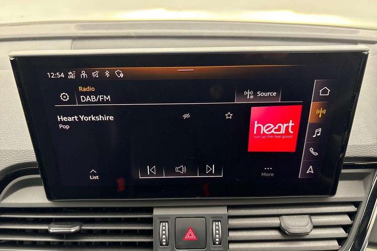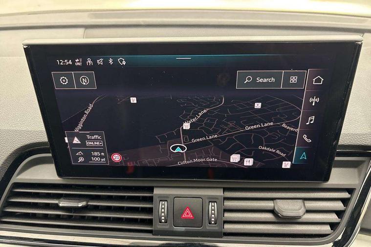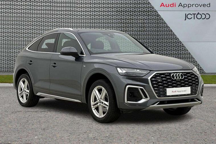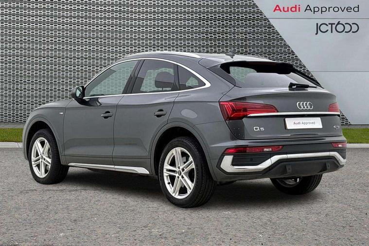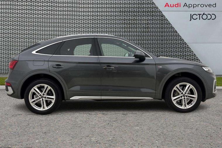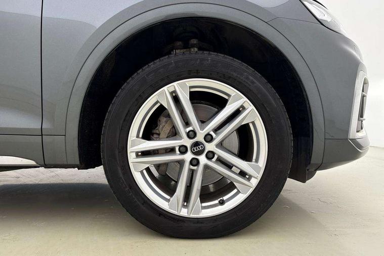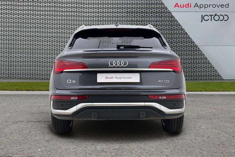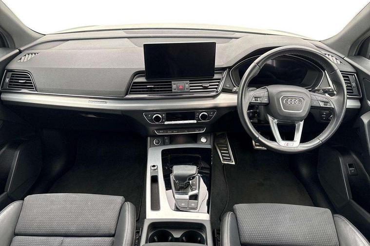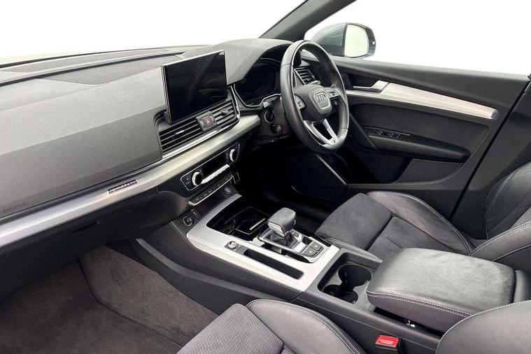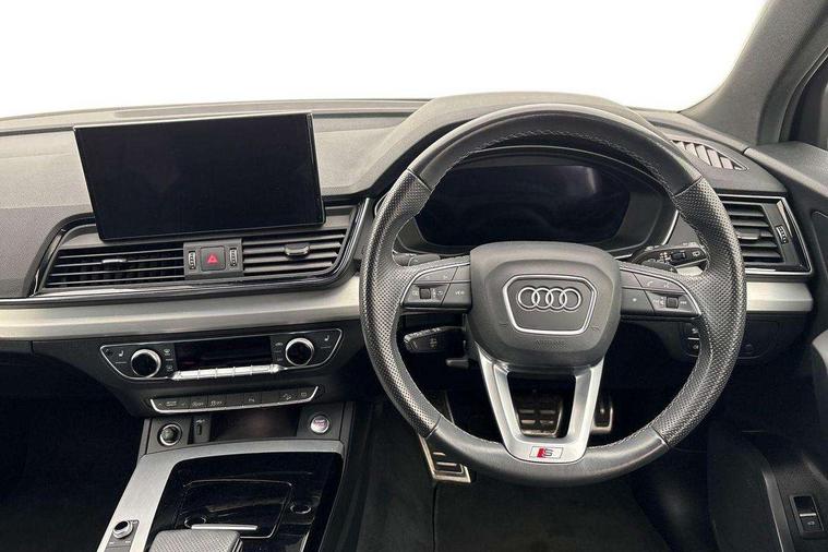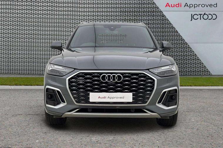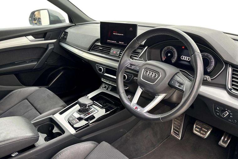 Acoustic front and rear parking sensor, Audi connect safety and service (e-call), Audi drive select, Audi virtual cockpit plus with 12.3" screen and three different layout designs, Audi wireless smartphone interface, Automatic start-stop system with coasting functionality and efficiency programme, Bluetooth interface, Camera based traffic sign recognition, Electro - mechanical power assisted steering, Lane departure warning, MMI navigation plus with 10.1" touch screen, Power tailgate, Reversing camera, Service interval indicator, Voice control system with Audi hotword activation "Hey Audi", Diesel particulate filter, Quattro on demand, S line sports suspension, 2 x USB charging port with aux input socket, 8 loudspeakers, DAB Digital radio, 3rd brake light, Acoustic windscreen, Aluminium roof rails, Auto dimming door mirrors, Auto dimming frameless rear view mirror, Automatic headlight adjustment, Automatic headlights and windscreen wipers, Body colour bumpers, Body colour door mirrors, Body colour rear diffuser with matt aluminium silver surrounds, Body colour underbody protection, Chrome plated exhaust trims, Daytime running lights, Door sills in Selenite silver, Electric adjustable/heated/folding door mirrors, Front air inlet surrounds in aluminium, Front and rear electric windows, Front radiator grille in honeycomb design, LED headlights and LED tail lights, Loading edge protection in stainless steel, Lower bumpers painted in contrast Manhattan grey, Rear chrome trim strip below lights, Rear privacy glass and rear side windows, Rear side wing doors, Rear wiper, Roof bars, S Line badges on the front wing panels, S Line front and rear bumpers, S Line rear spoiler, S Line side skirts, 3 rear headrests, 3 spoke leather multifunction steering wheel with S badging perforated leather grips, Black cloth headlining, Comfort front centre armrest, Contrast stitching on seats, steering wheel and gear lever gaiter, Deluxe 3 zone electronic climate control, Front head restraints, Front sport seats with S embossed logo, Front/rear floor mats, Gear lever in black leather, Heated front seats, Height/reach adjustable steering column, Illuminated door sill trims with S logo, Luggage compartment cover, Manual seat adjustment with 4-way electric lumbar support, Single front passenger seat, Stainless steel pedals, Sunvisors with vanity mirrors, High gloss pack - Q5, LED interior light pack - Q5, 3 point seatbelts on all seats, 6 airbags - Driver, front passenger, curtain and side airbags, Attention and drowsiness assist, Electrically operated child locks on rear doors, Electromechanical parking brake, Electronic stabilisation control including ABS, ASR and EDL, First aid kit with warning triangle and vests, Front passenger airbag deactivation, Hill descent control, Hill hold assist, ISOFIX child seat mounting for front passenger seat and ISOFIX child seat mounting with Top Tether for outer rear seats, Multi collision brake assist, Pop-up bonnet for pedestrian protection, Pre sense city, Seatbelt monitoring, Tyre pressure warning, Anti theft alarm, Anti-theft wheel bolts, Remote central locking, Remote control key with SAFELOCK and keyless go, Air vents inserts and centre console in gloss black, Matt brushed aluminium inlays, Tool kit, Tyre repair kit,