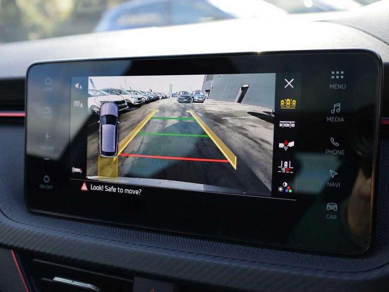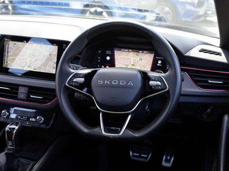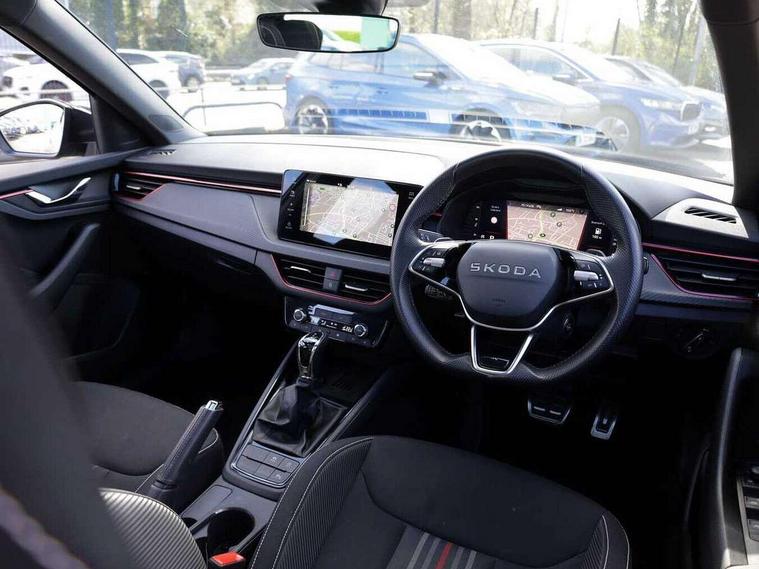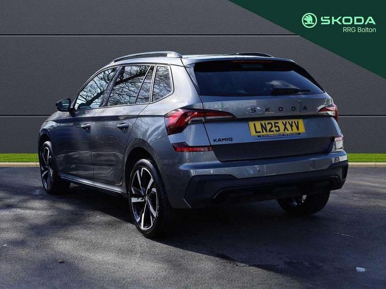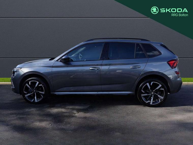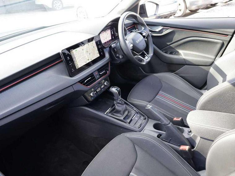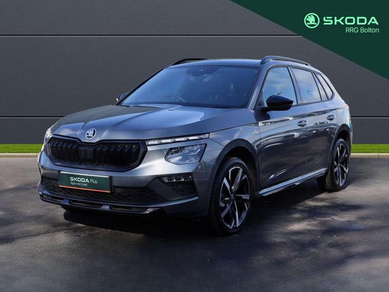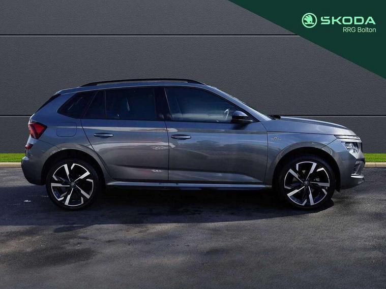 Advanced driver attention and drowsiness monitor, Bluetooth system, E-call, Front assist system, PAS, Rear parking sensors, Rear view camera, Service indicator, Speed limiter, Traffic sign recognition, Virtual cockpit with 10.25" display, Voice control system, Wireless smartlink, 4 USB C ports, 8 Speakers, 9.2" Skoda navigation display, DAB Digital radio, Auto dimming rear view mirror, Automatic headlight control with coming home and leaving home feature, Black door mirrors, Black radiator grille, Black rear diffuser, Black roof spoiler, Body colour bumpers, Body colour door handles, Boot lettering in black, Extended tailgate glass, Fixed panoramic sunroof with black roof rails, Front and rear electric windows, Heated rear window, LED daytime running lights, LED high beam, LED low beam, LED third brake light, Light sensors, Monte carlo plaque, Privacy glass, Rear side wing doors, Rear wiper, Ticket holder inside windscreen, 12V socket in luggage compartment, 3 seat bench in 2nd row, Aluminium pedals, Ambient lighting in white/red, Art leather carbon decor inserts, Art leather carbon door inserts, Black roof lining, Cargo elements, Chrome inner door handles, Driver and passenger sun visors with vanity mirror, Dual zone climate control, Front and rear roof lights, Front centre armrest, Front head restraints, Glove compartment with illumination, Height adjustable driver seat, Height adjustable front passenger seat, Ice scraper, Inner circulation control with pollen filter, ISOFIX on front passenger seat, Isofix preparation for back seats, Leather gearknob and handbrake lever, Manual lumbar support for front seats, Monte Carlo cloth upholstery, Net package and top tether hooks in boot space, Net under rear shelf, Pocket on the back of both front seats include mobile phone pockets, Rake/reach adjustable steering wheel, Reading lights, Rear centre armrests, Red hotstamping, Single front passenger seat, Sports seats, Textile floor mats, Third rear headrest, Top tether for front passenger seat, Umbrella in driver's door, Light and view plus package - Kamiq, 3x3 point rear seatbelts, Airbags - driver and front passenger, Disc brakes, ESP, Extended and predictive pedestrian/cyclist protection, Front passenger airbag deactivation switch, Front side airbags with curtain airbags, Hill hold control, Manual leather parking brake, Manual rear child locks, One tone horn, Seatbelt reminder for driver an co-driver, Traction control, Tyre pressure monitor, Anti-theft alarm system with interior monitoring, backup horn, towing protection and remote central locking with SAFE system, Anti-theft wheel bolts, Electronic engine immobilizer, 18" Ursa black diamond cut alloy wheels,