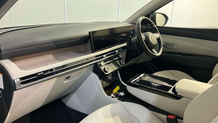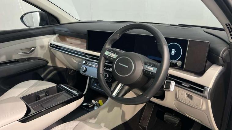12.3" LCD display with driver's supervision instrument cluster, 12.3" widescreen navigation with bluelink and mapcare, Blind spot view monitor, Bluetooth system, Cruise control - smart adaptive speed control with stop and go function, Digital clock, Drive mode selector, Driver attention warning, E-call, Emergency stop signalling system, Forward Collision Avoidance Assist (FCA) - Car, Pedestrian and Cycle, Forward Collision Avoidance Assist Junction Turning (FCAJX), Front and rear parking sensors, Front, rear and side parking distance warning, Highway Driving Assist (HDA), Hyundai road side assistance, Intelligent speed limit assist, Lane follow assist, Lane keep assist, Over the air updates(OTA), Parking collision avoidance assist (PCA), PAS, Rear camera and guidance parking system, Rev counter, Smart power tailgate, Surround view monitor, Tailgate open warning light, Trip computer, Trip odometer, Voice recognition, Water temperature gauge, Windscreen washer fluid sensor and warning indicator, Wireless Apple CarPlay/Android Auto, Wireless phone charging pad, 2 front and 2 rear USB-C ports, DAB Digital radio, Krell premium audio system with 8 speakers and subwoofer, Steering wheel mounted audio/phone controls, Adjustable intermittent front windscreen wipers with aero wiper blade, Auto dimming rear view mirror, Automatic defog system, Automatic headlights with dusk sensor, Automatic windscreen wipers with rain sensor, Black wheel arches, Body colour bumpers, Body colour door mirrors with integrated indicators, Body colour exterior door handles, Electric tilt/slide panoramic sunroof, Electrically adjustable, heated and power folding door mirrors, Follow me home headlights, Front and rear electric windows with anti-trap mechanism and one touch control, Front fog lights, LED 3rd brake light, LED daytime running lights, LED rear lights, Matrix LED headlights, Positioning Lights - LED, Privacy glass - Rear windows and tailgate, Rear side wing doors, Rear wash/wipe with intermittent wipe setting, Roof rails, Tinted glass with windscreen shade band, Trailer stability assist, 12V power outlets in front console and luggage compartment, 3 seat bench in 2nd row, 40/20/40 split folding rear seat, 64 colours interior ambient lighting, Adjustable head restraints (Up and down), Cupholders in rear armrest, Door courtesy lights, Driver and passenger sunvisors with illuminated LED vanity mirrors, Driver's seat electric adjustments, Driver's seat memory, Front and rear door pockets, Front armrest with storage box, Front centre console and door bottle holders, Front passenger's seat electric adjustments, Heated front seats, Heated rear seats, Heated steering wheel, Height/reach adjustable steering column, Illuminated/air conditioned glove compartment, ISOFIX child seat anchorage points attached on outer rear seats, Leather upholstery, Leather wrapped steering wheel and gear knob, Luggage compartment lighting, Luggage cover, Luggage hooks, Luggage net, Map and reading lights, Rear seat remote folding function, Rear side window sunblind, Reclining rear seats, Retractable load cover, Single front passenger seat, Sunglasses holder, Three zone climate control, Touch sensitive climate controls with temperature dials, TUCSON branded metal door scuff plate, Underfloor boot compartment, Ventilated front seats, Trailer wiring package - Tucson, 3x3 point rear seatbelts, Active bonnet, Airbag - Front, front side, curtain and centre front airbags, Anti-lock brake system (ABS), Brake assist function, Childproof rear door locks, Curtain airbag roll over sensor, Downhill brake control, Electric parking brake, Electronic stability control, Front and rear seatbelt reminder, Front passenger airbag deactivation switch, Front seatbelt pretensioners, Hill start assist control (HAC), Multi-Collision braking, Outer rear seatbelt height adjustment, Seatbelt height adjustment for front seats, Traction control, Tyre pressure monitoring system with individual tyre pressure display - TPMS, Vehicle stability management, Deadlocks, Immobiliser, Locking wheel nuts, Remote control central locking, Smart key with keyless entry and engine start/stop button, Speed sensitive auto door locking, Thatcham category 1 alarm, 19" Alloy wheels, Tyre repair kit,
