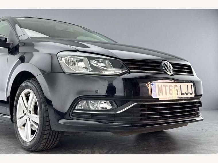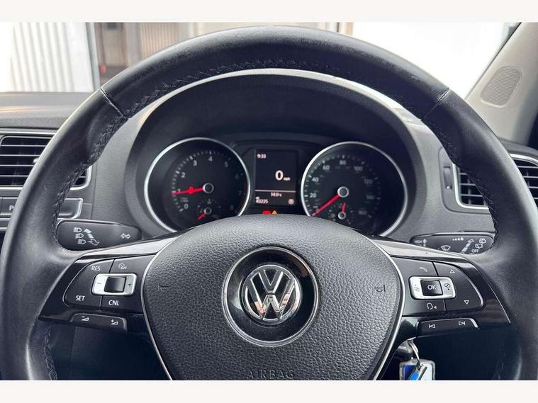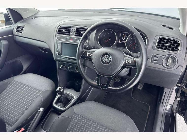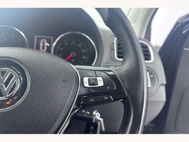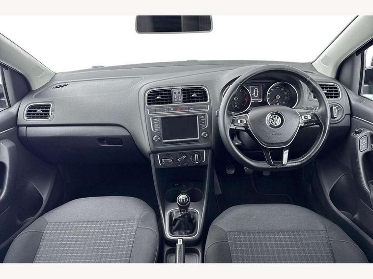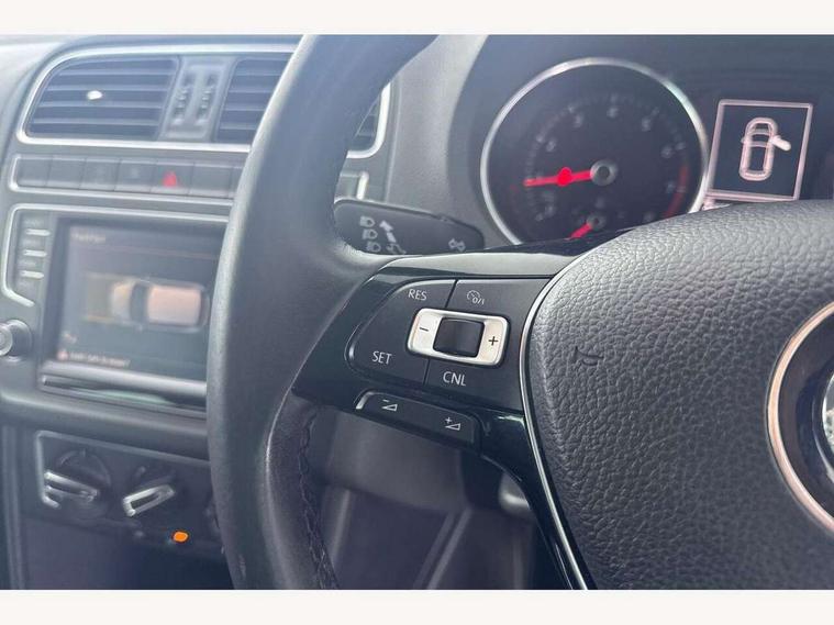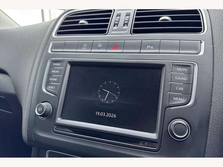 Bluetooth Telephone preparation, Driver alert system, Multi function display, Multifunction computer, PAS - speed related, Service interval indicator, Warning buzzer and light for front seatbelts unfastened, 6 speakers, Composition media system with radio, glovebox mounted CD, colour touch screen, SD card, aux-in, USB, multimedia interface, DAB Digital radio, Black grille with chrome surround, Body colour bumpers, Body colour door handles, Body colour door mirrors, Body coloured side sills, Chrome trimmed front air intake surrounds, Electric front windows, Electric operated/heated door mirrors, Front fog lights with static cornering function, Front wash/wipe with interval delay, Heat insulated tinted glass 65% light absorbing from B pillar back, Heated rear window with auto timer, Rear electric windows, Rear windscreen washer and wiper with interval delay, 12V power socket in centre console, 2 bag hooks in luggage compartment, 2 cupholders, 3 rear head restraints, 3 spoke steering wheel, 4 grab handles, 60/40 split folding rear seat, Centre console storage, Chrome interior door handles, Driver and passenger sunvisors, Driver seat height adjust, Dust/pollen filter, Front door pockets, Front passenger seat height adjust, Front seat backrest storage nets, Front/rear reading lights, Glovebox, Height/reach adjustable steering column, Illuminated vanity mirror, Interior light with delay, Isofix Preparation 2 Rear child seats, Luggage compartment cover, removable, Luggage compartment lighting, Matt chrome gear lever gaiter surround, Multifunction leather steering wheel with leather gear knob/handbrake grip, Storage compartment in front doors, Storage compartment in rear doors, Sunglasses holder, Variable boot floor, Cruise and Park Pack - Polo, 3 point height adj front seatbelts + pretensioners, 3x3 point rear seatbelts, ABS, Automatic post collision braking, Driver/front passenger airbag, Driver/Passenger whiplash optimised head restraints, ESC - Electronic Stability Control + traction control, ESP with EDL + ASR, Hill hold control, Hydraulic Brake Assist (HBA), Tyre pressure monitoring system, Alarm with remote central locking and interior protection, Electronic engine immobiliser, Air vents in Matt chrome, Matt chrome interior trim, 15" steel spare wheel,