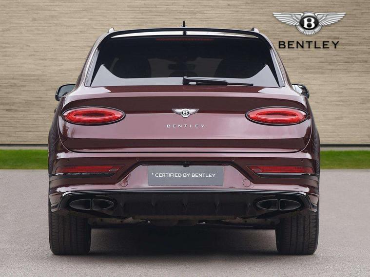 10.9" touch screen high resolution and configurable infotainment display and digital drivers information display, Advanced navigation function with text, search, 3D, satellite maps, speed limit, dynamic traffic route guide, telephone, Text-speech + voice, Bentley GPS tracking system full fitment, Bentley safeguard, Blind spot assist, Bluetooth and WIFI enabled, Four drive dynamics modes (bentley, comfort, sport, custom), Hands free power tailgate, MMI Screen, My Bentley connected car services, Power latching to all doors for easy entry, Redesigned instrument panel lower trim rolls, incorporating a storage compartment on the passenger side, Seamlessly integrated technology with wireless apple car play and android auto, Speed sensitive variable ratio electric power steering, Touch screen remote, Voice control system, Wireless phone charging compartment, Permanent all wheel drive with centre torsen differential, Bluetooth audio streaming, Adaptive low beam, Auto dimming rear view mirror, Bentley badge in tailgate opening switch, Black painted shark fin aerial, Body coloured lower bodywork - Standard paint range, Bumper design with large side intakes and sculptured surfaces, Clamshell rear tailgate design with Bentley lettering under the wings, Elec/heat/adj/fold door mirror+memory, Electric tilt/slide panoramic sunroof, Fender design reduces over bodied perception, Fixed rear spoiler, Front and rear fog lamps, Full LED supplementary lamps and tail lamps, Full matrix LED headlamps with high beam assist, Full width clamshell design and deeply contoured rear tailgate panel, Heated rear windscreen, Large dominant B shaped side wing vent front position, Long fender vent above the power line on body side, Lower door side mouldings, Number plate aperture position under rear bumper, Oval exhaust pipe, Phone antenna amplifier, Rain sensing wipers, Self levelling wheel badge, Standard oil and fuel filler caps, Trailer sway mitigation, Tunnel detection for auto light control, V8 exterior badge, Wet arm wipers and heated water jets, 12V power in rear centre console, 12V socket in glovebox, 12V socket in luggage compartment, Air Ioniser, Alcantara upper trim, Black (Beluga) boot carpet, Electric tilt and reach adjustment steering column with memory and easy entry function, Electronic accessory preparation, Foams and cover design on all seats, Folding luggage compartment cover, Front and rear cupholders, Indented steering wheel, Isofix attachments on outer rear seats, Key box, Leather trimmed gear lever, Load through facility, Lockable cooled glovebox, Luggage rails, Multi-zone automatic climate control - two zone, Rear head restraints, Rear seat climate control, Rear seat massage function, Stowage with instrument panel, doors (front and rear), armrests and console, Twin front armrests, Two type C USB ports front and rear, Wing pockets for small items, City specification pack - Bentayga, 3 rear seatbelts, ABS/EBD, EDL, Electronic park brake with move-off assist, Electronic stability control, Electronic tyre pressure monitoring, ESP + MSR + ASR, Exit warning, Front and rear head airbags, Front and rear thorax airbag system, Front passenger airbag deactivation, Front seatbelt pretensioners with force limiters, Hill descent function, Hydraulic Brake Assist (HBA), Rear outer seatbelt pretensioners with force limiters, Rollover mitigation, Side airbags, Traction control, Immobiliser, Keyless entry, Keyless ignition, Preparation for vehicle tracking, Remote central locking, Volumetric anti theft alarm,