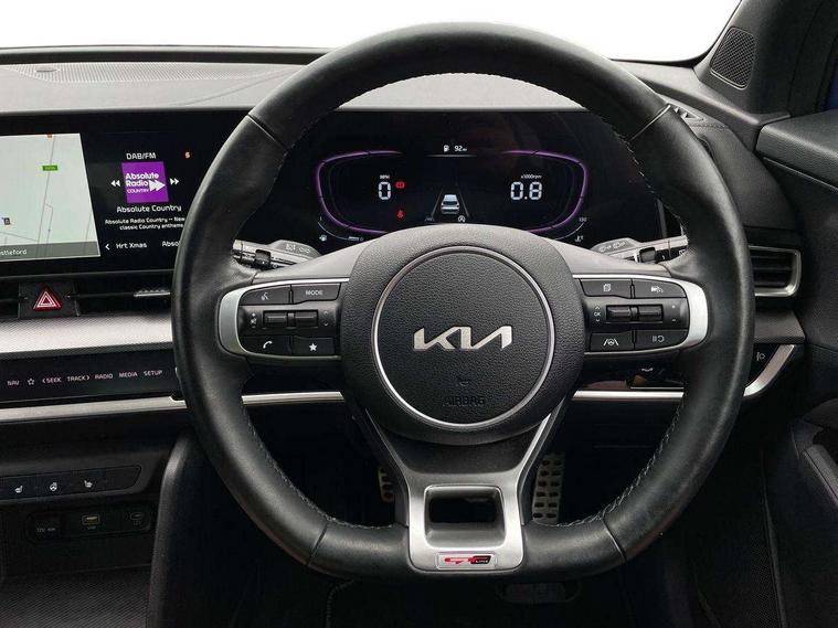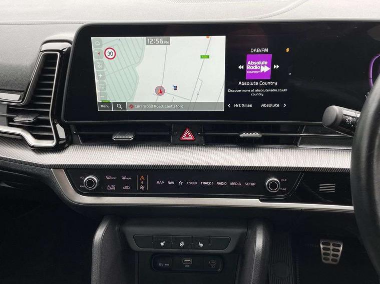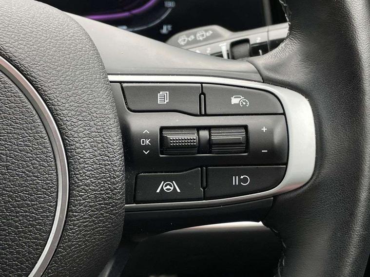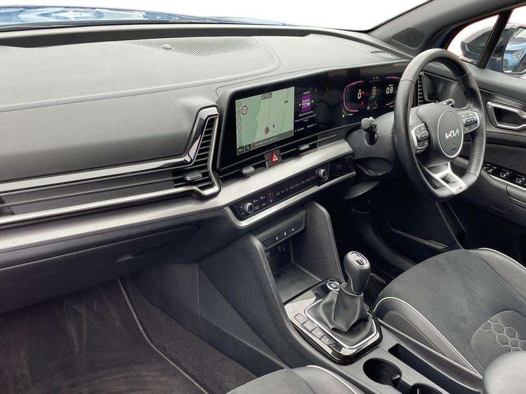 12.3" Display with navigation, 4.2" supervision colour cluster display, Apple car play/Android Auto with voice control, Cruise control + speed limiter, Drive mode selector, E-call, Forward collision avoidance assist (FCA) - city/pedestrian/cyclist/junction covering, Front and rear parking sensors, Intelligent speed limit assist, Kia Connect (UVO), Lane Following Assist (LFA), Lane keep assist, Low washer fluid warning, Rear view monitor, Reversing camera system integrated into centre fascia screen, Speed sensitive power steering, Trip computer, Windscreen washer level indicator, Intelligent Stop and Go, 6 speaker audio system, Bluetooth audio streaming, DAB Radio with MP3, Rear USB port, Steering wheel mounted audio controls, USB C type charging ports on centre console, USB C type charging ports on side of front seats, USB port for connection of a media device, All round electric windows with drivers and front passenger auto up/down function, Automatic headlight control system, Automatic window defogger, Backlite glass heated with timer, Black bumpers, Body colour and black bumper with silver accents, Body colour exterior door handles, Body colour radiator upper garnish and door garnish, Electrically adjustable/heated/folding door mirrors with LED indicators, Front and rear chrome skid plates, Gloss black door mirrors, Gloss black radiator grille, Gloss black side sill and wheel arch body mouldings, Glossy black roof rack, High beam assist, Interior electrochromic mirror, LED daytime running lights, LED front fog lamps, LED headlamps (low and high beam - MFR type), LED High mounted stop light, LED rear combination lamp, Rain sensing wipers with aero blades, Rear fog lamp, Rear privacy glass, Rear side wing doors, Rear spoiler, Rear wiper, Satin finished beltline, Silver coloured inserts to bumpers, Tinted rear glass, Trailer stability assist, 12V power socket in front centre fascia and luggage compartment, 2nd row personal lamps, 3 seat bench in 2nd row, 3 x passenger assist grips, 40/20/40 split folding rear seat, All-round height adjustable headrests, Black headlining, Centre console storage box, Cupholders in rear armrest, D-Shaped sports leather steering wheel and perforated inserts with GT-Line logo, Door courtesy lamps, Drink holder at centre armrest, Driver and front passenger side sunvisors with illuminated vanity mirrors, Driver's seat manual height adjust, Drivers seat power lumbar support, Front and rear door storage, Front seat and rear pockets, Front/rear centre armrests, Gear shift indicator, Glovebox illumination, Heated front seats, Heated steering wheel, Interior door lock/unlock function, ISOFIX Child seat top tethers and anchor fixings outer rear seats, Luggage area light, Luggage area load cover, Luggage net with hooks, Metal paint interior door handles, Overhead console lamp, Rear cabin light, Rear coat hooks, Single front passenger seat, Sports pedals, Suede leather upholstery, Three zone climate control, Tilt/telescopic adjustable steering wheel, Ventilation ducts to rear compartment, Active front headrests, All round 3-point seatbelts, Anti-lock braking system (ABS), Dual front side airbags, Dual horn, Electronic parking brake, Electronic stability control with downhill brake control, Front passenger airbag cut-off switch, Front seatbelt pretensioners + load limiters, Height adjustable front seatbelts, Hill start assist control (HAC), Impact sensing auto door unlocking, Multi collision brake assist, Rear door child safety locks, Rear seat alert system, Traction control, Twin curtain airbags, Twin front airbags, Tyre pressure monitoring system, Advanced anti-theft system including immobiliser and alarm, Door deadlocks, Engine Start/Stop Button with Smart Entry System, Locking wheel nuts, Speed sensitive auto door locking, Visible vehicle identification number, Aluminium pattern finish centre fascia and door garnish, 19" GT-Line alloy wheels, Tyre mobility kit,