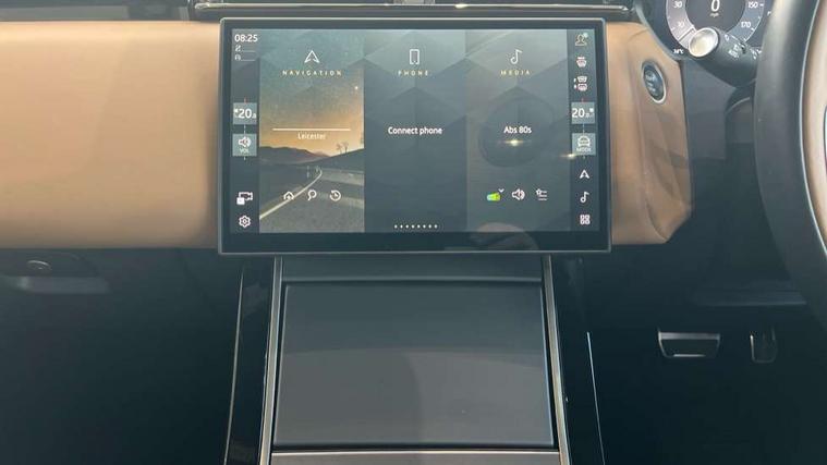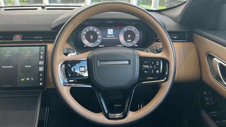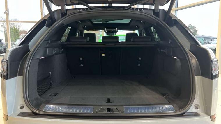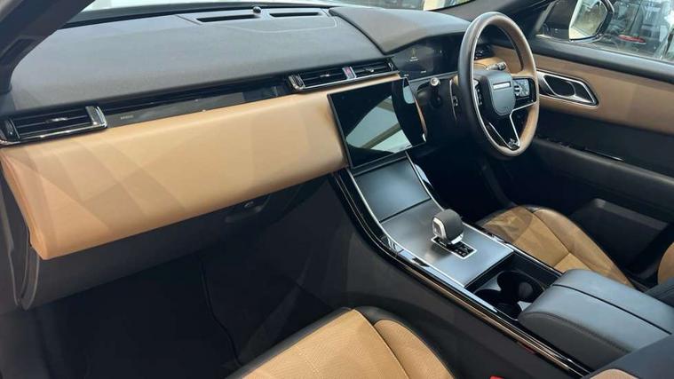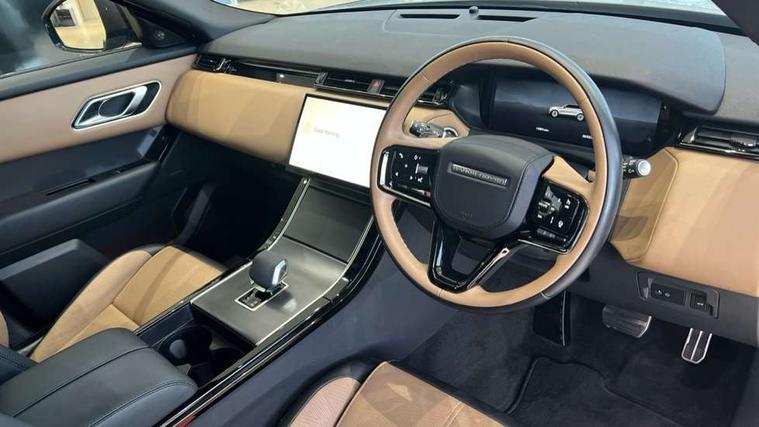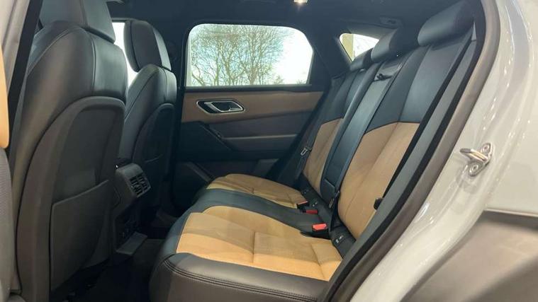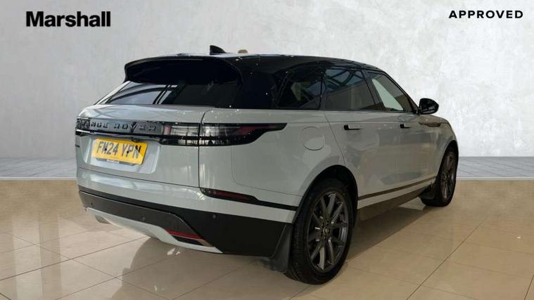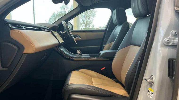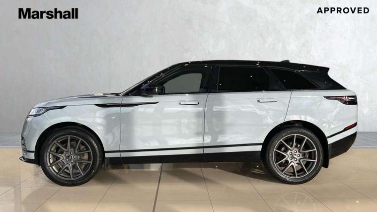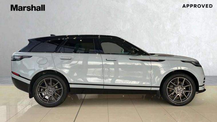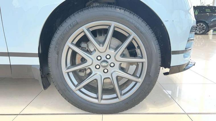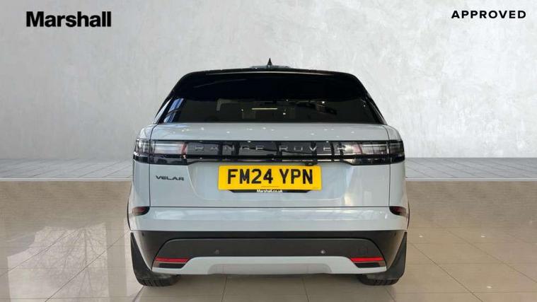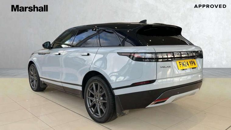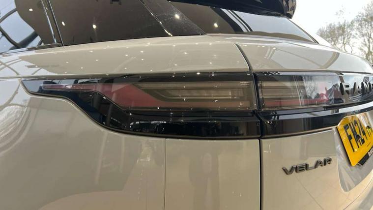 Adaptive cruise control with steering assist, Android Auto, Apple CarPlay, Blind spot assist, Bluetooth connectivity, Brake pad wear indicator warning light, Driver condition monitor, eCall emergency call system, Front and rear parking aid, InControl remote, Land Rover InControl apps, Lane keep assist, Pivi pro with connected navigation, Rear collision monitor, Rear traffic monitor, Service indicator, Speed proportional electronic power assisted steering (EPAS), Traffic sign recognition with adaptive speed limiter, Trip computer, Voice control system, Wireless device charging, 8 speed automatic transmission, Adaptive dynamics, All terrain progress control, Electronic air suspension, Open differential with torque vectoring by braking, Single speed transfer box, DAB radio, Steering wheel mounted controls, 3rd brake light, Acoustic laminated windscreen, Auto dimming interior rear view mirror, Automatic headlamp levelling, Automatic headlights, Body coloured bumpers, Boot protection plate, Electric windows with one touch open/close and anti trap, Flush deployable exterior door handles, Follow me home headlights, Heated rear window with timer, Heated washer jets, Metal front tread plates, Metal load space scuff plates, Pixel LED headlights with signature DRL, Power fold, auto-dimming, heated door mirrors with memory and approach lights, Rain sensor windscreen wipers, Rear animated directional indicators, Rear fog lights, Rear side wing doors, Rear wash/wipe, Tailgate/boot lid spoiler, Trailer stability assist, Velar badge, 3 seat bench in 2nd row, Ambient lighting, Bright metal pedals, Carpet mats, Driver/passenger sunvisors with illuminated vanity mirrors, Ebony morzine headlining, Electrically adjustable steering column, Extended leather upgrade, Heated steering wheel, Isofix system on outer rear seats, Loadspace cover, Overhead lighting console, Overhead stowage for sunglasses, Passive front headrests, Rear air vents, Rear centre headrest, Single front passenger seat, Twin front cupholders, Twin sliding front centre armrest, Online pack with data plan - Velar, Power socket pack 2 - Velar, 380mm front brakes and 325mm rear brakes, 3x3 point rear seatbelts, Anti-lock braking system (ABS), Cornering brake control, Curtain airbags, Customer configurable autolock, Door side intrusion beams, Driver airbag, DSC - Dynamic Stability Control, Electronic brake force distribution, Electronic parking brake, Electronic traction control, Emergency braking, Front and rear seatbelt reminder, Hill descent control, Hill launch assist, Low traction launch, Passenger airbag, Power operated child locks, Rear airbags, Roll stability control, Side airbags, Tyre pressure monitoring system (TPMS), Global lock and unlock switch on driver door, Immobiliser, Intrusion sensor, Keyless entry, Lock only switch on front passenger door, Locking wheel nuts, Perimetric alarm, Remote central locking, All season tyres,