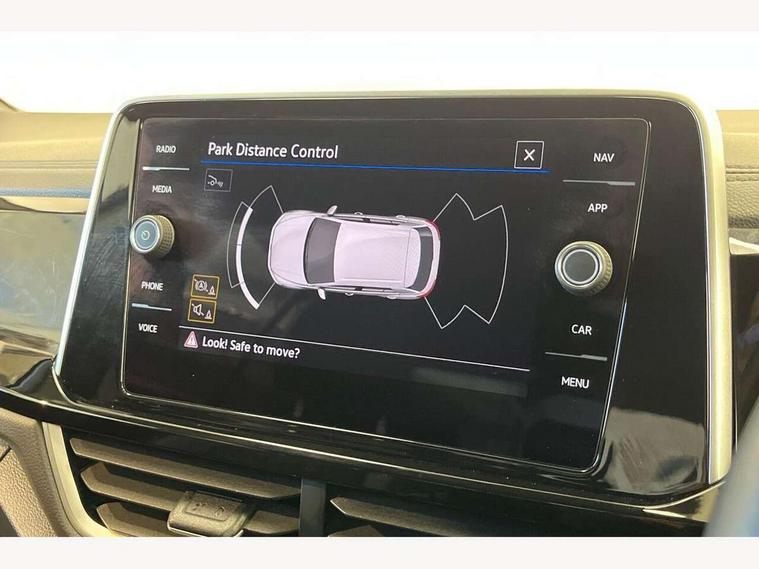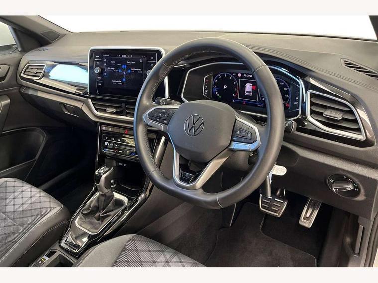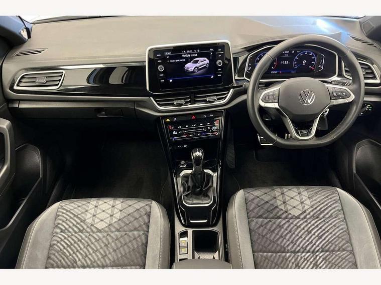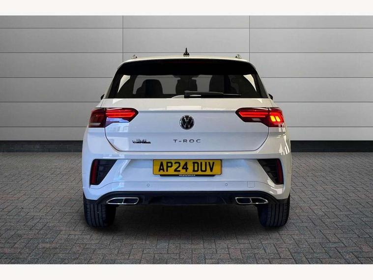 10.25" Digital cockpit pro, Advanced driver attention and drowsiness monitor, Bluetooth mobile phone interface, Emergency call service, Lane keeping system Lane Assist, Modified key software - reduce switch off time for key status change to Long no motion, Online services, Park assist including front and rear parking sensors, Service interval indicator, Tailgate/trunk lid release from outside, Think blue trainer driver tips and journey analysis, Warning sound and light for front seatbelts unfastened, Wireless app connect, Battery regeneration during braking, Start/stop function with battery regeneration, Diversity antenna for FM reception, Music playback - MP3, WMA and AAC files, Premium USB cable in choice of either Apple or Android smartphone compatibility, SD card slot, Simultaneous pairing of 2 compatible mobile devices, Title and cover art display, We Connect and We Connect Plus functionality, 3rd brake light, Auto dimming interior rear view mirror, Automatic hazard lights activation under emergency braking, Automatic headlight control with LED separate daytime running lights with coming/leaving home function, Electrically adjustable and heated door mirrors, Extended roof spoiler, Exterior mirrors aspherical on driver side, convex on front passenger side, External USB type C socket and charging sockets, Front windscreen wiper with intermittent wipe and 4 position delay, Heated rear window, LED rear combination lamps, LED rear number plate lights, Power windows with comfort operation and circuit breaker, R-Line design body coloured bumpers, Rain sensor, Rear exhaust tailpipe, Rear fog light on one side and reversing lights on both sides, Rear side wing doors, Rear wash/wipe with intermittent wipe setting, Remote electrically foldable door mirrors, puddle lights and reverse activated passenger's door mirror, 12V power socket in centre console, 3 rear head restraints, 3 seat bench in 2nd row, 4 load lashing points in luggage compartment, Air care climatronic air conditoning system with active combination filter and 2-zone temperature control, Black roof lining, Chrome plated radiator grille inserts, air vent surrounds and light switch surrounds, Door and side trim panel with leatherette insert, Front + rear carpet mats, Front centre armrest, Front cupholders x 2, Front footwell illumination, Front reading light, Front scuff plates with R Line logo, Front seat back storage pockets, Glove compartment door with light, Instrument lighting, white adjustable panel illumination, Interior ambient lighting and surround lighting, Interior light delay, Isofix child seat preparation, Leather gearshift handle, Load-through provision with cup holder when folded down ('Unsplit rear seat bench, split folding backrest, with centre armrest), Luggage compartment lighting, Single front passenger seat, Stainless steel pedals, Storage compartment in left and right luggage area, Storage compartment in rear doors, Storage compartments in driver and front passenger doors, Sunvisors with illuminated vanity mirrors, Variable boot floor, height adjustable and removable, Driver assistance pack without proactive passenger protection - T-Roc, 3 point height adj front seatbelts + pretensioners, 3 point seatbelts in outer rear with ECE label, ABS, Child locks on rear doors, City emergency braking and pedestrian monitoring, Driver and front passenger airbag with front passenger airbag deactivation, Driver and front passenger safety-optimised head restraints, Drivers seatbelt reminder, Electronic parking brake, Electronic Stability Control (ESC) inc EDL (Electronic Differential Lock) and ASR (Traction Control), Front and rear passengers curtain airbag system including front side airbags, Hill start assist, Predictive pedestrian protection, Rear disc brakes, Two tone horn, Tyre pressure loss indicator, Volkswagen roadside assistance, Anti-theft alarm system with interior monitoring, backup horn, and towing protection, Remote central locking with SAFELOCK, radio remote control with 2 remote control folding keys, Trims for alloy wheels,