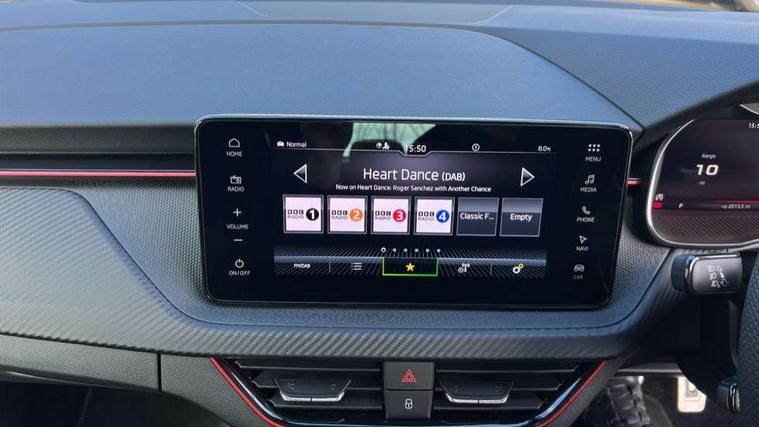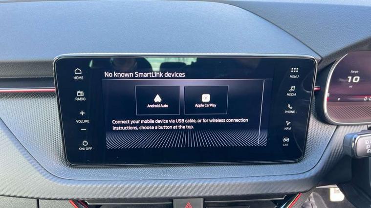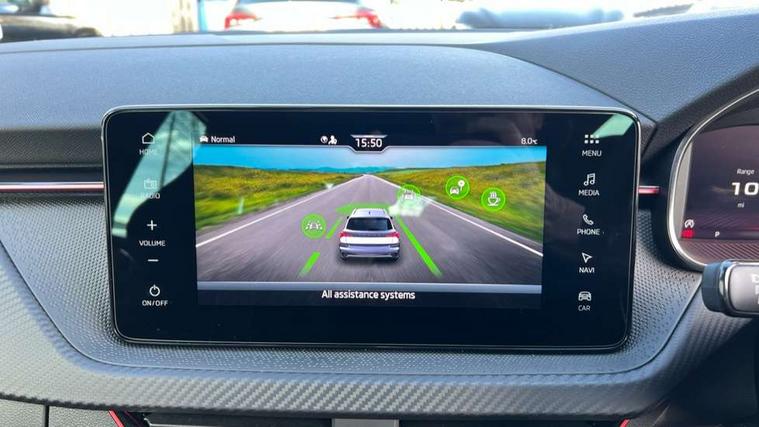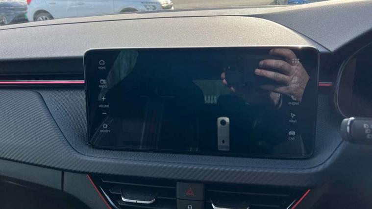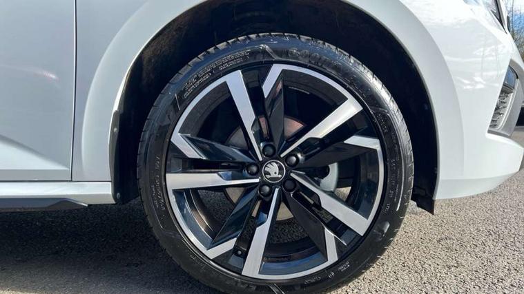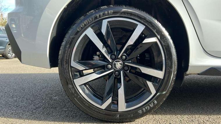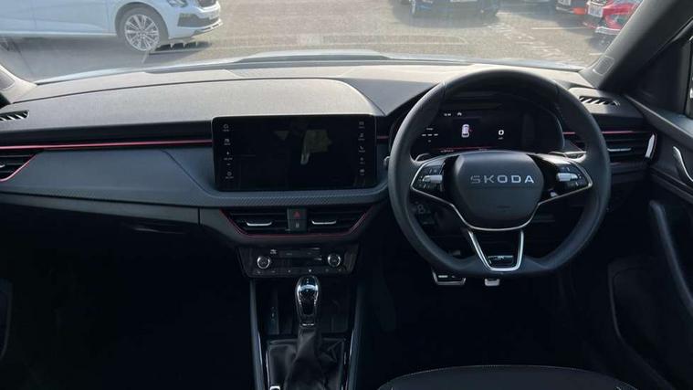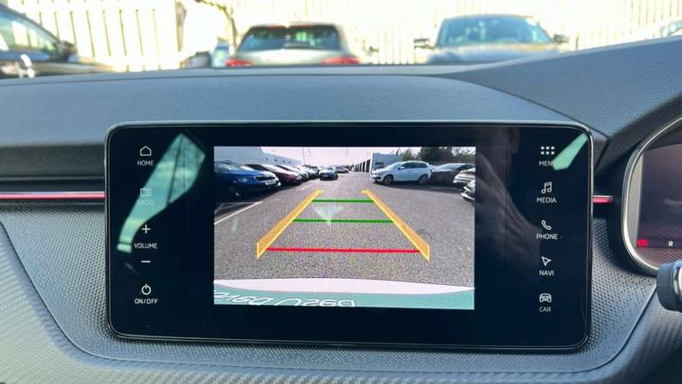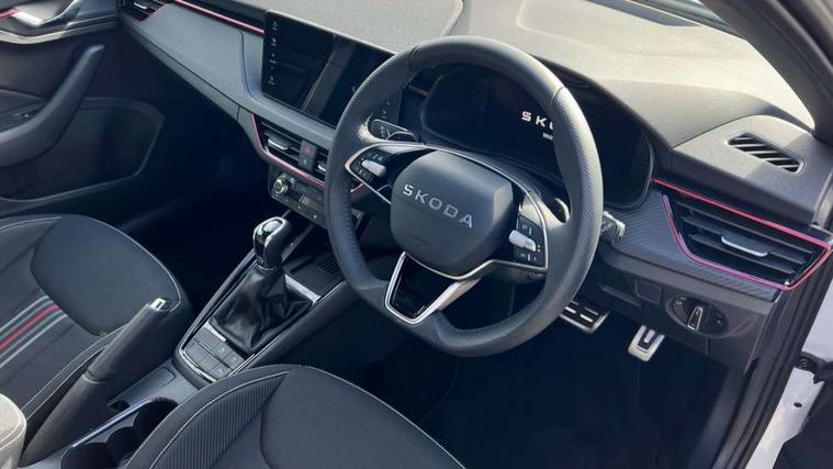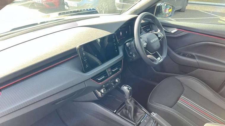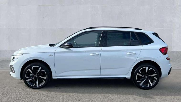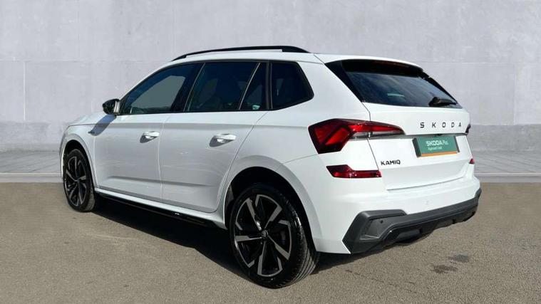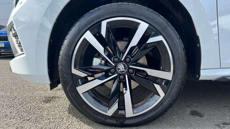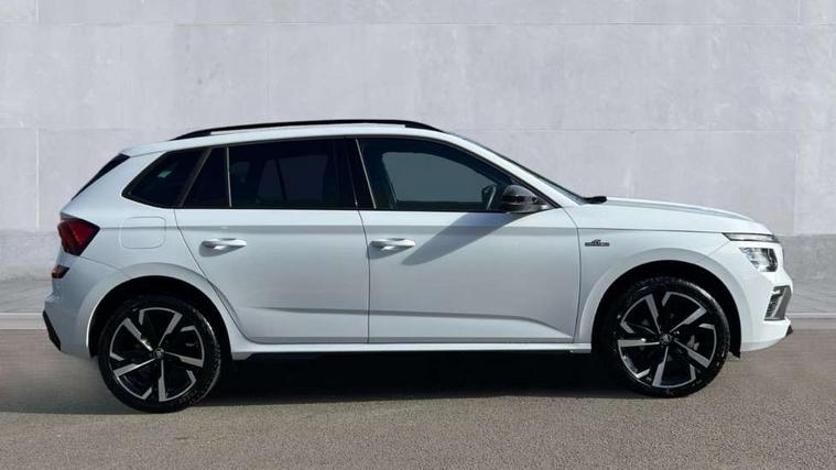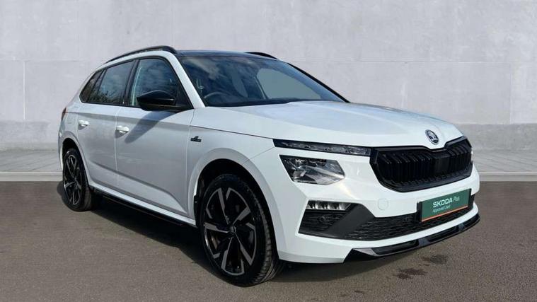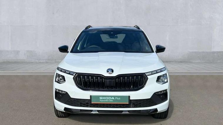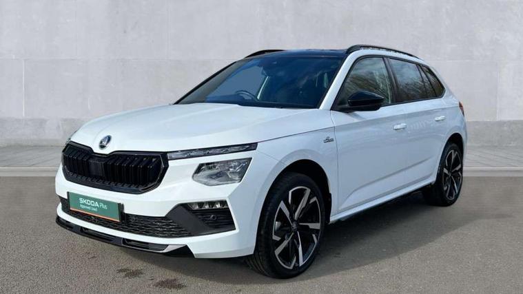 Advanced driver attention and drowsiness monitor, Bluetooth system, E-call, Front assist system, PAS, Rear parking sensors, Rear view camera, Service indicator, Speed limiter, Traffic sign recognition, Virtual cockpit with 10.25" display, Voice control system, Wireless smartlink, 4 USB C ports, 8 Speakers, 9.2" Skoda navigation display, DAB Digital radio, Auto dimming rear view mirror, Automatic headlight control with coming home and leaving home feature, Black door mirrors, Black radiator grille, Black rear diffuser, Black roof spoiler, Body colour bumpers, Body colour door handles, Boot lettering in black, Extended tailgate glass, Fixed panoramic sunroof with black roof rails, Front and rear electric windows, Heated rear window, LED daytime running lights, LED high beam, LED low beam, LED third brake light, Light sensors, Monte carlo plaque, Privacy glass, Rear side wing doors, Rear wiper, Ticket holder inside windscreen, 12V socket in luggage compartment, 3 seat bench in 2nd row, Aluminium pedals, Ambient lighting in white/red, Art leather carbon decor inserts, Art leather carbon door inserts, Black roof lining, Cargo elements, Chrome inner door handles, Driver and passenger sun visors with vanity mirror, Dual zone climate control, Front and rear roof lights, Front centre armrest, Front head restraints, Glove compartment with illumination, Height adjustable driver seat, Height adjustable front passenger seat, Ice scraper, Inner circulation control with pollen filter, ISOFIX on front passenger seat, Isofix preparation for back seats, Leather gearknob and handbrake lever, Manual lumbar support for front seats, Monte Carlo cloth upholstery, Net package and top tether hooks in boot space, Net under rear shelf, Pocket on the back of both front seats include mobile phone pockets, Rake/reach adjustable steering wheel, Reading lights, Rear centre armrests, Red hotstamping, Single front passenger seat, Sports seats, Textile floor mats, Third rear headrest, Top tether for front passenger seat, Umbrella in driver's door, Light and view plus package - Kamiq, 3x3 point rear seatbelts, Airbags - driver and front passenger, Disc brakes, ESP, Extended and predictive pedestrian/cyclist protection, Front passenger airbag deactivation switch, Front side airbags with curtain airbags, Hill hold control, Manual leather parking brake, Manual rear child locks, One tone horn, Seatbelt reminder for driver an co-driver, Traction control, Tyre pressure monitor, Anti-theft alarm system with interior monitoring, backup horn, towing protection and remote central locking with SAFE system, Anti-theft wheel bolts, Electronic engine immobilizer, 18" Ursa black diamond cut alloy wheels,