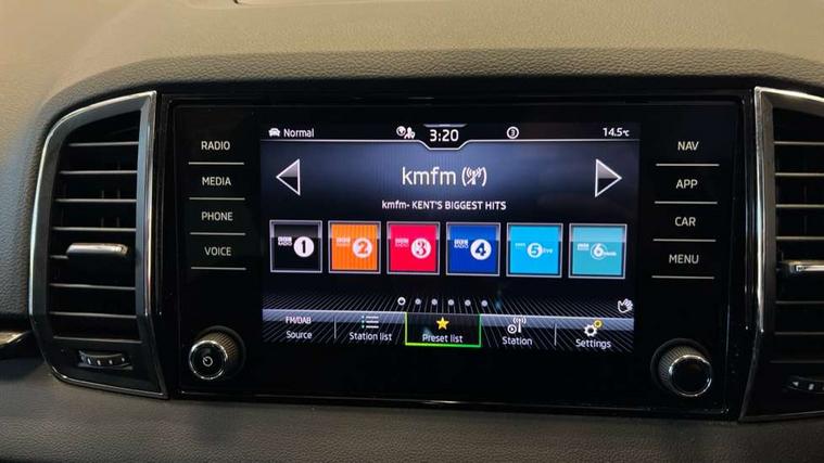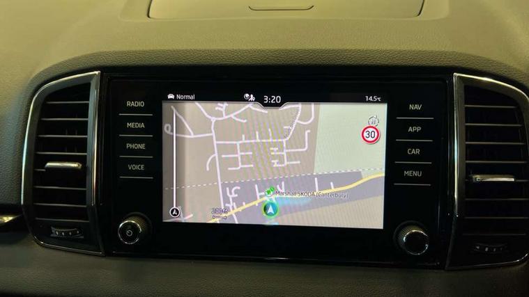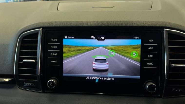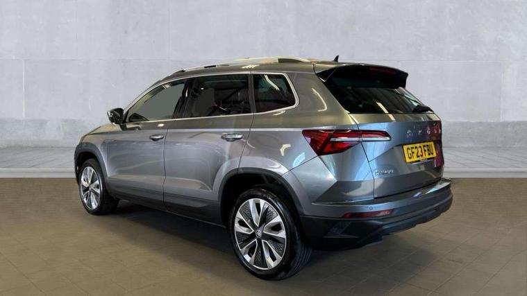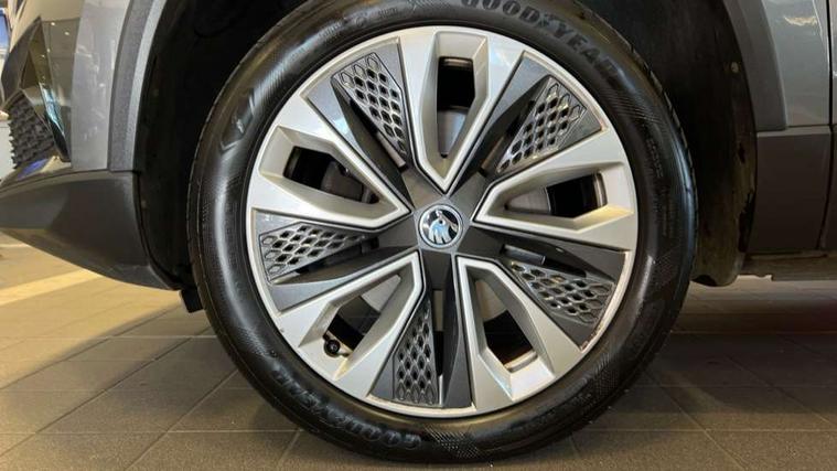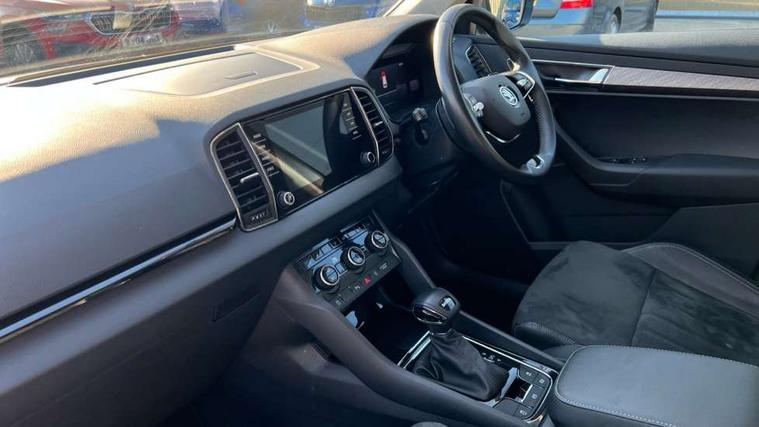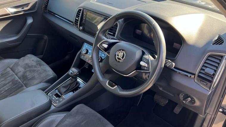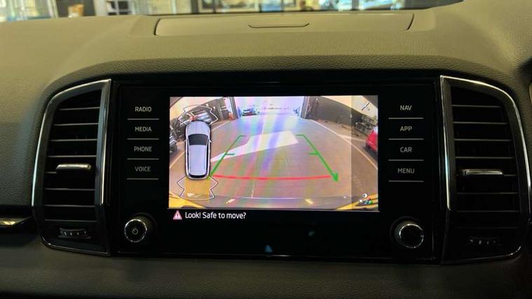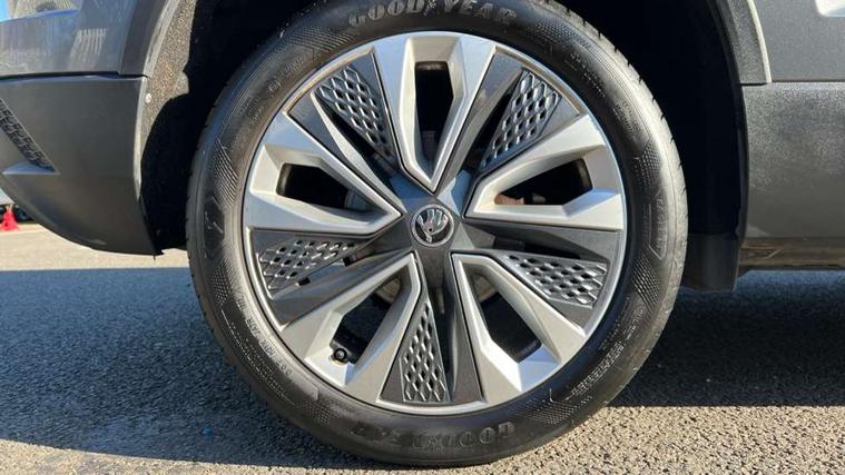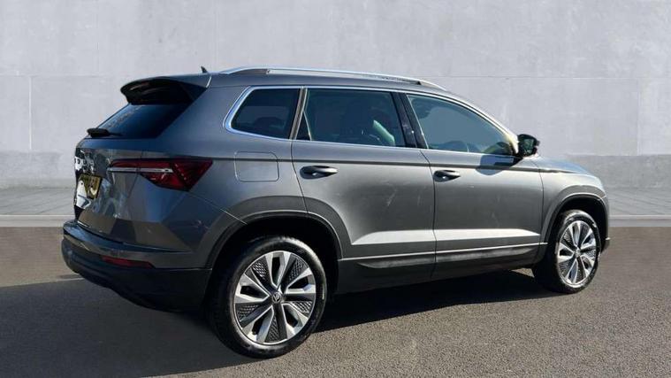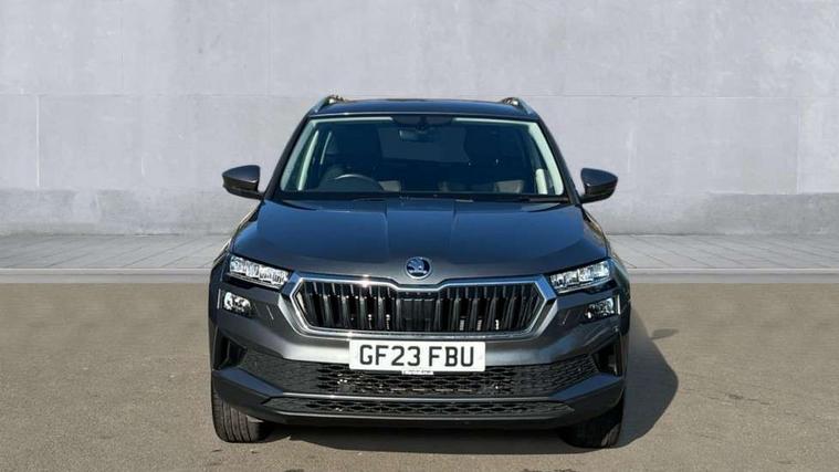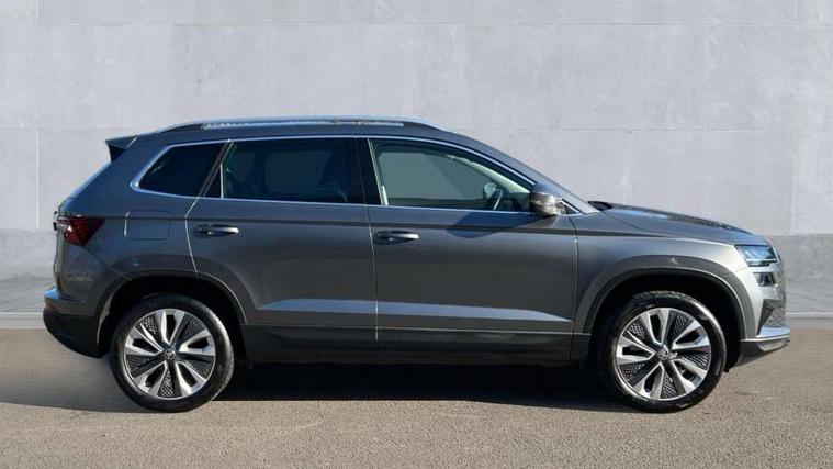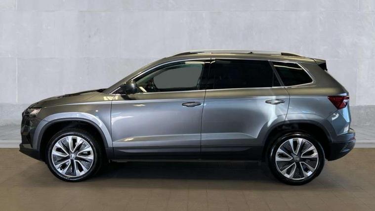 8" Digital display, Care connect, Driver fatigue sensor, Emergency services call system, Outside temperature gauge, Service interval indicator, SmartLink wireless for Apple and wired for Android, Start/stop system with regenerative braking, USB C Port x 2 in front centre console, 8 Speakers, DAB radio with Bluetooth, USB connection, Acoustic glass, Aero front windscreen wipers with intermittent function, Auto dimming rear view mirror with light and rain sensors, Black electric window control buttons, Body colour door mirrors and handles, Dynamic headlight range control with cornering light function, Electric front and rear windows with child proof lock, Heated rear windscreen, LED daytime running lights, LED rear lights with high functionality welcome effect and dynamic indicators, Light assistant (coming/leaving home/tunnel light), Plastic scuff plates, Privacy glass, Rear side wing doors, Rear spoiler, Rear window wiper with washer system and intermittent control, Safety reflectors on front doors, 1.5 litre bottle holders in driver and front passenger door panels, 12V socket in boot, 12v socket in front centre armrest with storage compartment and rear air vents, 2 Folding hooks and nets in boot, 2 spoke leather heated multifunction steering wheel with DSG paddles, 2 x Tablet holder, 3 rear height adjustable headrests, 3 seat bench in 2nd row, 4 foldable roof handles with rear coat hooks, Black floor carpet, Chrome inner door handles, Decorative door sills with KAROQ badging, Double sided boot floor, Foldable hooks in the boot, Front head restraints, Height adjustable front three point seats belts with tensioners, Height/reach adjust steering wheel, Ice scraper, Illuminated glovebox, Illuminated luggage compartment, Isofix child seat preparation for front passenger seat, Isofix child seat preparation outer rear, Manual lumbar support for front seats, Pen holder, Pollen filter, Rear boot cover, Rear reading lights, Rubbish bin door, Safety vest holder, Single front passenger seat, Storage box in upper central dashboard closed, Sunvisors with illuminated vanity mirrors, Textile floor mats, Ticket holder, VarioFlex seats with standard rear seat release, Chrome roof rails + chrome pack - Karoq, Parking pack - Karoq, Automatic door unlocking in case of crash, Automatic fuel cut off in case of crash, Child locks on rear doors, Driver airbag, Electronic parking brake with auto hold function, Emergency rear braking signal, ESC including ABS, MSR, ASR, EDS, HBA, DSR, RBS, MKB and traction control, Front side airbags, Hill hold control, Knee airbags, Passenger airbag with switch-off function, Pedestrian monitor, Seatbelt reminder signalisation and pretensioner for all seats, Three point seatbelts rear, Two tone horn, Tyre pressure display, Tyre pressure monitor, Alarm with interior monitoring, back up horn and tilt sensor with safe function, Electronic engine immobiliser, Keyless entry and start/stop, Remote central locking with 2 remote folding keys, Chrome framed air vents, 18" Procyon silver alloy wheels with anthracite aero inserts, Anti-theft wheel bolts protection, Storage on wheel cover, Tool kit,