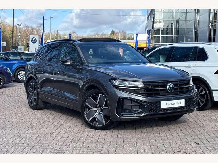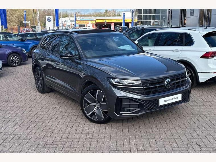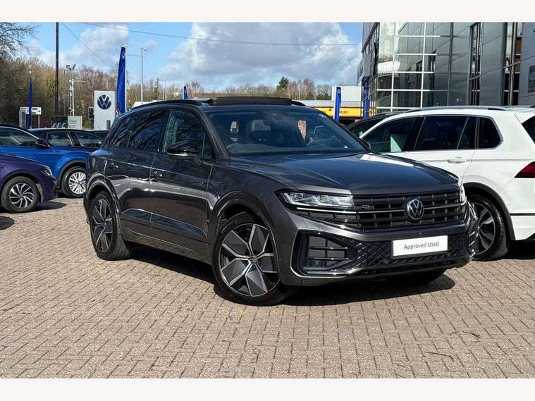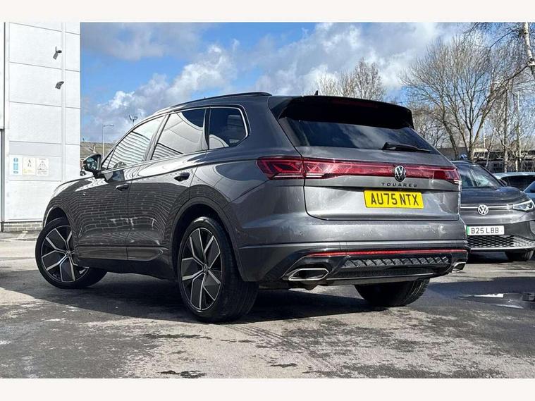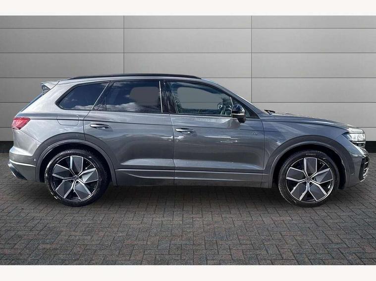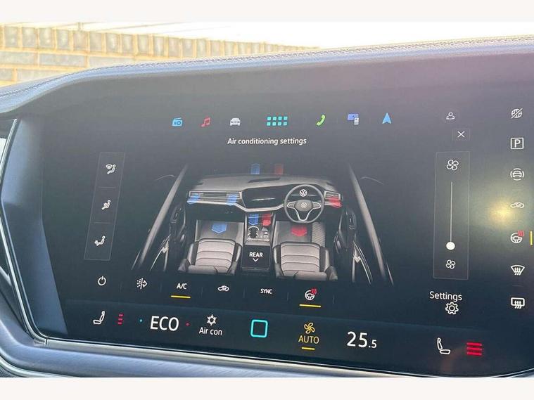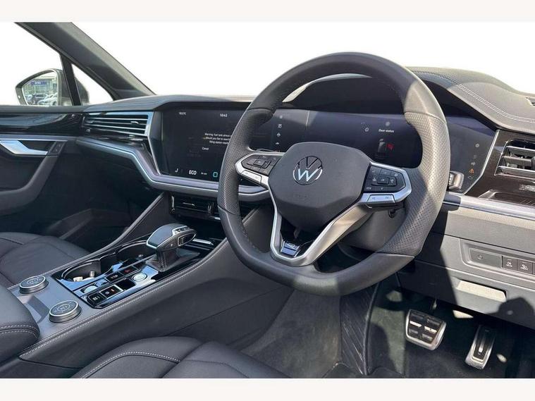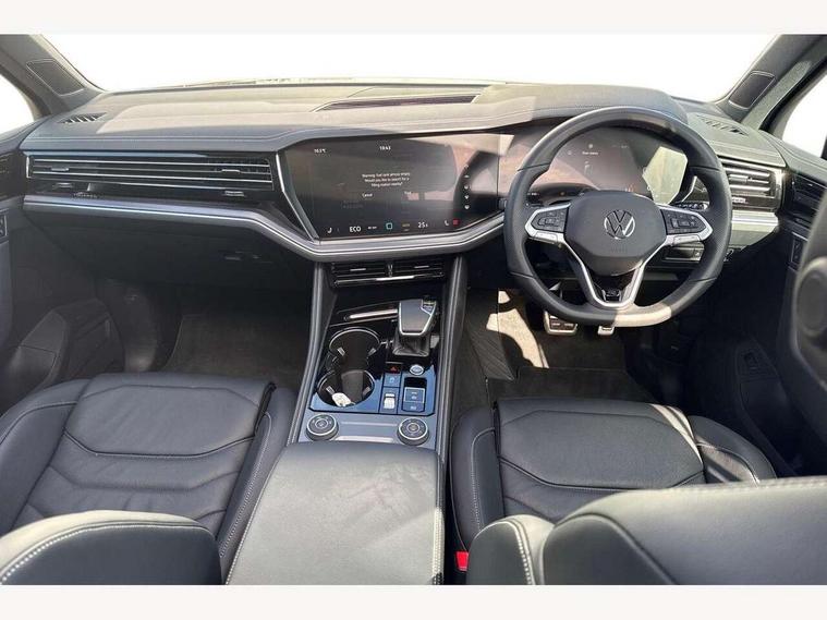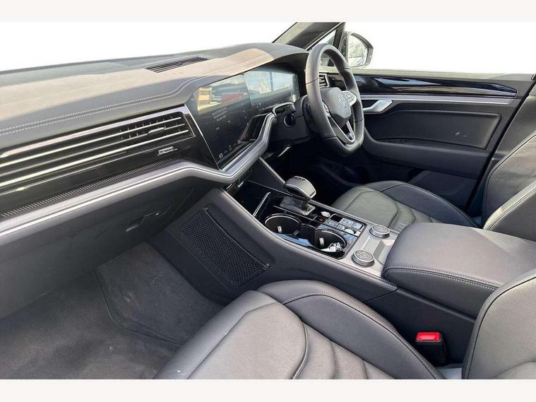 15" Screen Top infotainment system Premium (MIB3), Adaptive cruise control, Advanced driver attention and drowsiness monitor, Driver profile selection, Dynamic road sign display, E-Sim card for online connectivity, eCall emergency system, Innovision cockpit, Intelligent park assist, Mobile phone interface with inductive charging, Multi-colour Active Info display, Park Assist - Sensor controlled steering aid to assist parallel or bay parking, PAS, Warning signal and warning light for front and rear seatbelts not fastened, Wireless app connect, Adaptive chassis control, DAB Digital radio, Diversity antenna for AM/ FM reception, We Connect and We Connect Plus functionality, Automatic coming/leaving home lighting function, Automatic headlights, Black door mirrors, Black style comfort bumpers, Dynamic headlight range control with dynamic cornering light, Electric front tilt/slide panoramic sunroof and fixed rear sunroof, Electrically power adjustable, heated, folding, auto dimming, front passenger exterior door mirror lowering function, External USB type C socket and charging sockets, Gloss black roof rails, HD LED Matrix beam plus digital headlight projection with variable light distribution, Headlight washers, Highway light, LED 3rd brake light, LED daytime running lights, LED rear combination lamp with variable lighting functions and special styling, Poor weather light, Rain sensor, Rear exhaust tailpipe, Rear fog light with back up light on both sides, Rear light bar and illuminated logo, Rear side wing doors, Rear wiper, Stainless steel door sill protection, 12V socket in centre console, 3 rear headrests, 3 seat bench in 2nd row, 4 zone climate control, Airbag label on sun visor and B-pillar, Brushed stainless steel pedals, Double sun visors with illuminated vanity mirrors, Front + rear carpet mats, Front centre armrest, Leather wrapped multifunction sports steering wheel, heated, with touch control and shift paddles, Mechanical rear seat release, Power adjustable lumbar support in front, Power seats in front, right side with memory features and seat cushion depth adjustment, Rear seat backrest and split folding with center armrest, Single front passenger seat, Memory pack plus - Touareg, 3 point seatbelts, outer rear with ECE lable, ABS, Child locks on rear doors, Curtain airbags, Driver and front passenger safety-optimised head restraints, Driver/Front Passenger airbags, Extended pedestrian protection measures, Front assist, Front seat side impact airbags, Generative braking with start and stop system, Height adjustable 3 point front seatbelts with pre tensioners, Passenger airbag deactivate switch, Three 3 point rear seatbelts, Two tone horn, Warning triangle and first aid kit, Alarm system with interior protection, Easy open and close sensor controlled luggage compartment opening and closing with remote unlocking, Keyless Access Keyless locking and starting system with SAFELOCK, Aluminium decorative inserts, Black decorative trims, Gloss black decorative inserts in centre console, Tool kit,