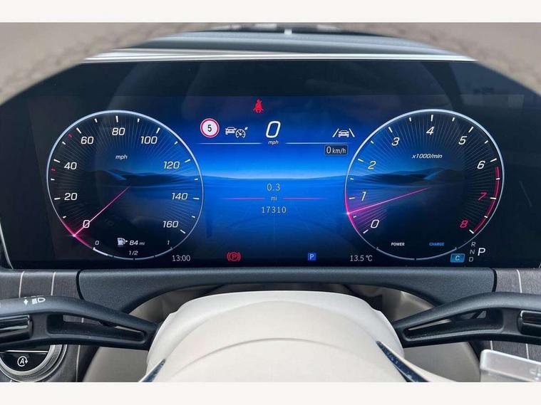 12.3" high resolution cockpit display, 14.4" high resolution central media display with latest MBUX generation, 5G Communications module, Attention assist, Blind spot assist, Bluetooth, Brake wear warning display, Direct steer speed sensitive steering, ECO start/stop function, Evasive manoeuvre support, Fingerprint scanner, Fluorescent jacket for driver, Hard disc navigation, MBUX navigation premium, MBUX voice control, Mercedes me connect including emergency call system, accident recovery, breakdown and maintenance management, Outside temperature display, Preinstallation for digital vehicle key, Preinstallation for live traffic, Remote bootlid closing, Remote Services Premium, Service indicator (ASSYST), Status display for rear seat belts in instrument cluster, Trip computer in multifunction display showing current fuel consumption, Wireless charging, Wireless smartphone integration with Apple CarPlay and Android auto, 48V Mild hybrid technology, 66 litre fuel tank with 10 litre reserve, 9G TRONIC automatic transmission, Integrated starter generator Gen 2, Burmester 4D surround sound system, DAB Digital radio, Preinstallation for MBUX Entertainment Plus, Sound visualisation, 3rd brake light, Acoustic glass, Adaptive brake lights, Aerial integrated in rear window, Auto dimming driver's door mirror, Auto dimming rear view mirror, Digital air vent control, Electric folding door mirrors, Electric windows with one touch opening/closing and obstruction sensors, Electrically adjustable and heated door mirrors, Exclusive exterior styling including classic bonnet mounted Mercedes-Benz star, Exclusive line exterior, Heat insulating privacy glass, Illuminated front door sills, interchangeable cover with 'Mercedes-Benz' lettering, LED daytime running lights, LED digital light with adaptive highbeam assist plus, Panoramic sliding sunroof, Pre-installation for roof rail systems, Rear boot, Rear side wing doors, Surround lighting with logo projection, 3 seat bench in 2nd row, 4 way lumbar support, Active ambient lighting, AMG brushed stainless steel sports pedals with rubber studs, Automatic child seat recognition sensor, Central stowage compartment with USB socket for use with Android Auto and Apple CarPlay, Climatised front seats, Comfort seats, Courtesy lights in rear grab handles with reading light functionality, Exclusive line interior, Folding rear seat backrest, Front centre armrest with stowage compartment, Gearshift paddles, Glove compartment - lockable, air conditioned and illuminated, Head restraints for driver and front passenger (four-way adjustability) and in rear (two-way), Heated front seats, Instrument panel and door beltlines in artico nappa look leather, Leather upholstery, Multifunction steering wheel in nappa leather, Roof liner in black fabric, Seat occupancy sensor for front passenger seat, Single front passenger seat, Steering wheel touch control buttons for audio and onboard settings, Sunvisors with illuminated vanity mirrors, THERMATIC 2 zone automatic climate control, Velour floor mats, Keyless Go comfort package - E Class, Memory package - E Class, Night pack - E class, Parking package with 360 degree camera - E Class, USB plus package - E Class, Winter pack - E Class, 3x3 point rear seatbelts, Active bonnet pedestrian safety measure which detects an impact and raises bonnet, Adaptive brake system with HOLD function and brake drying in the wet, Anti-lock braking system (ABS), Automatic front passenger airbag deactivation, Central airbag, Childproof locks manually operated for rear doors and electrically operated for rear power windows, Driver and adaptive front passenger airbags, Electronic parking brake, Electronic Stability Programme, Hill start assist, ISOFIX child seat attachment points two outer rear seats, Knee airbags, Pedestrian protection, Pre-Safe anticipatory safety system, Tyre pressure monitoring system, Warning triangle and first aid kit, Window airbags, Alarm system/interior protection/immobiliser, Central locking with interior switch, automatic locking and crash sensor with emergency opening function, Digital vehicle key, Guard 360 degree vehicle protection plus, Increased anti theft protection, Urban guard vehicle protection plus, 19" AMG multispoke design alloy wheels painted in termolite grey with high sheen finish, Summer tyres, Tirefit,