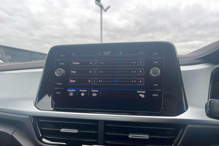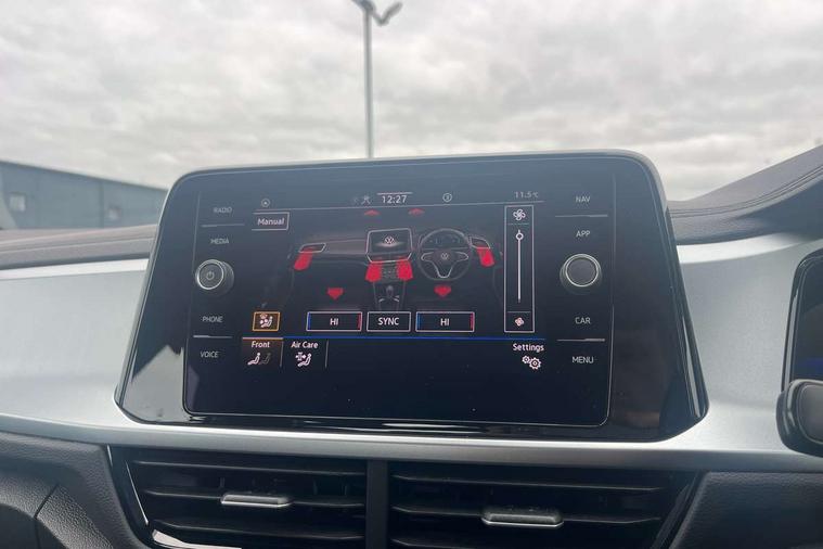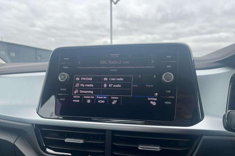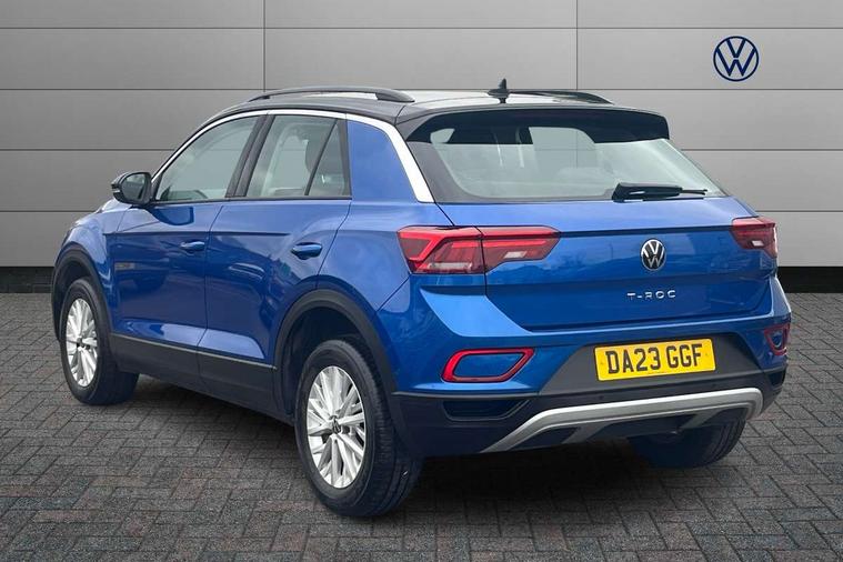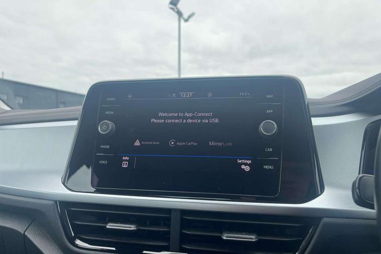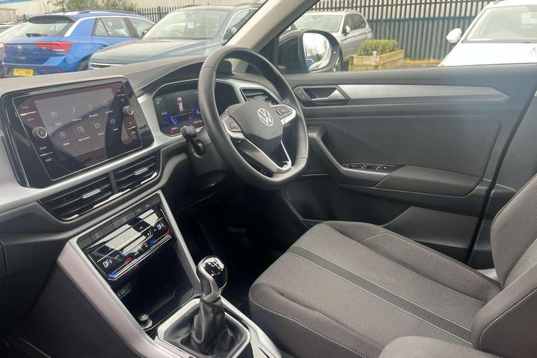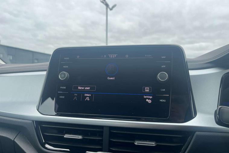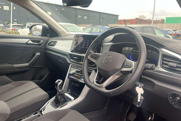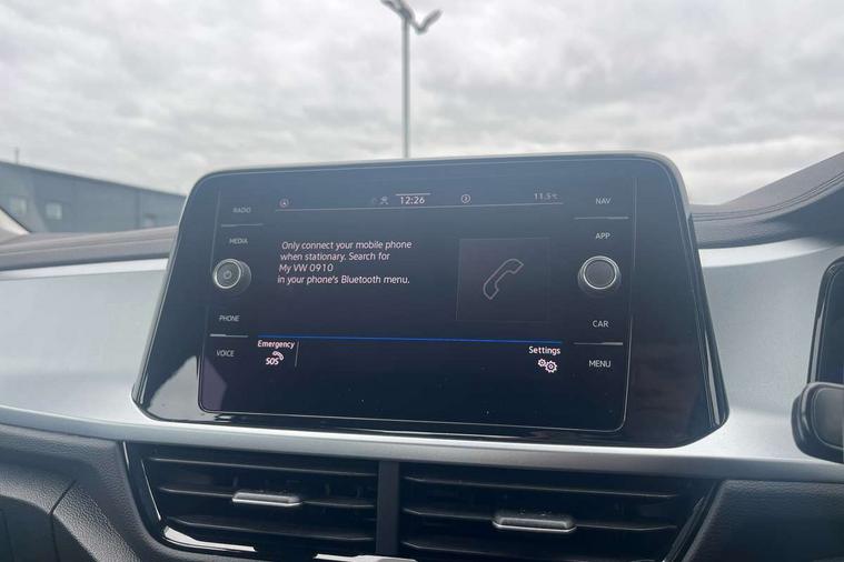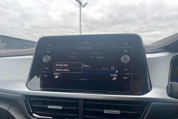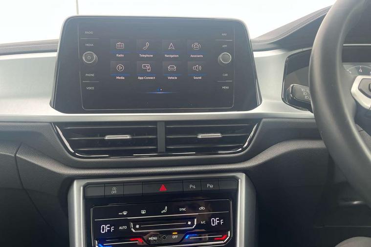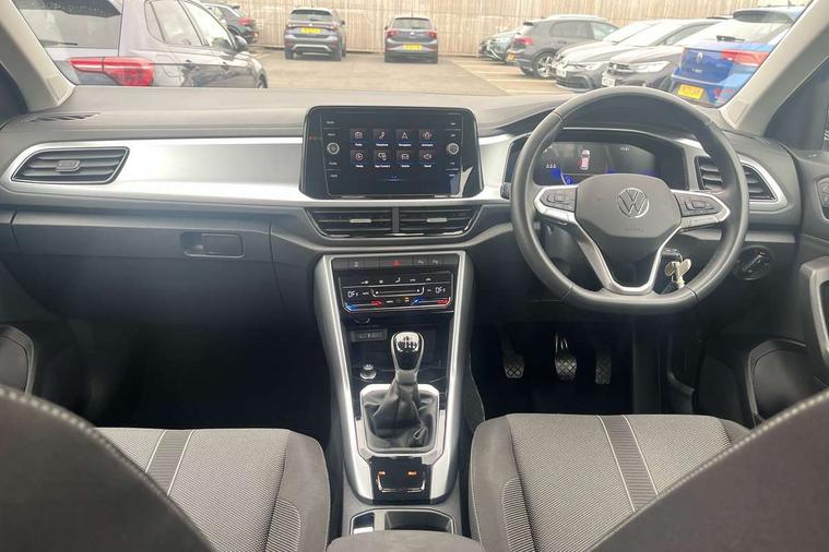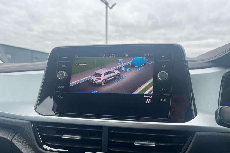 Bluetooth mobile phone interface, Driver alert system with fatigue detection, Driver tips and journey analysis, Emergency call service, Lane keeping system Lane Assist, Modified key software - reduce switch off time for key status change to Long no motion, Online services, Park assist including front and rear parking sensors, Power assisted speed sensitive steering, Service interval indicator, Tailgate/trunk lid release from outside, Think blue trainer driver tips and journey analysis, Warning sound and light for front seatbelts unfastened, Wireless app connect, Battery regeneration during braking, Front shock absorption, Rear shock absorption chassis with increased ride height, Start/stop function with battery regeneration, DAB Digital radio, Diversity antenna for FM reception, Front and rear 6 speakers, Music playback - MP3, WMA and AAC files, Premium USB cable in choice of either Apple or Android smartphone compatibility, SD card slot, Simultaneous pairing of 2 compatible mobile devices, Title and cover art display, We Connect and We Connect Plus functionality, 3rd brake light, Auto dimming interior rear view mirror, Automatic hazard lights activation under emergency braking, Automatic headlight control with LED separate daytime running lights with coming/leaving home function, Black roof rails, Body coloured bumpers and radiator grille with chrome trim and front fog lamps with chrome bezel, Body coloured exterior mirror housings and door handles, Extended roof spoiler, Exterior mirrors aspherical on driver side, convex on front passenger side, External USB type C socket and charging sockets, Front windscreen wiper with intermittent wipe and 4 position delay, Heated rear window, LED Headlights, LED rear combination lamps, LED rear number plate lights, LED tail lamp rear comination lamps, Power windows with comfort operation and circuit breaker, Rain sensor, Rear exhaust tailpipe, Rear fog light on one side and reversing lights on both sides, Rear side wing doors, Rear wash/wipe with intermittent wipe setting, Remote electrically foldable door mirrors, puddle lights and reverse activated passenger's door mirror, 12V power socket in centre console, 3 rear head restraints, 3 seat bench in 2nd row, 4 load lashing points in luggage compartment, Air care climatronic air conditoning system with active combination filter and 2-zone temperature control, Ambient lighting with mirror logo projection, Cloth upholstery, Door and side trim panel in cloth, Drawer under drivers seat, Driver/front passenger seat height adjustment, Front centre armrest, Front comfort sports seats, Front cupholders x 2, Front reading light, Instrument lighting, white adjustable panel illumination, Interior light delay, Isofix child seat preparation, Leather gearshift handle, Load-through provision with cup holder when folded down ('Unsplit rear seat bench, split folding backrest, with centre armrest), Luggage compartment lighting, Lumbar support for driver's and front passengers seat, Non-folding front passenger seat backrest, Single front passenger seat, Storage compartment in left and right luggage area, Storage compartment in rear doors, Storage compartments in driver and front passenger doors, Sunvisors with illuminated vanity mirrors, Variable boot floor, height adjustable and removable, Driver assistance pack without proactive passenger protection - T-Roc, 3 point height adj front seatbelts + pretensioners, 3 point seatbelts in outer rear with ECE label, ABS, Child locks on rear doors, Driver and front passenger airbag with front passenger airbag deactivation, Driver and front passenger safety-optimised head restraints, Drivers seatbelt reminder, Electronic parking brake, Electronic Stability Control (ESC) inc EDL (Electronic Differential Lock) and ASR (Traction Control), Front and rear passengers curtain airbag system including front side airbags, Front assist with city emergency braking and pedestrian monitoring, Front disc brakes, Front seat side impact airbags, Hill start assist, Predictive pedestrian protection, Rear disc brakes, Single tone horn, Tyre pressure loss indicator, Volkswagen roadside assistance, Alarm with interior protection, Anti-theft alarm system with interior monitoring, backup horn, and towing protection, Remote central locking with SAFELOCK, radio remote control with 2 remote control folding keys, Pewter matt decorative inserts for intrument panel, centre console and door panels at the front, Trims for alloy wheels,