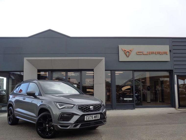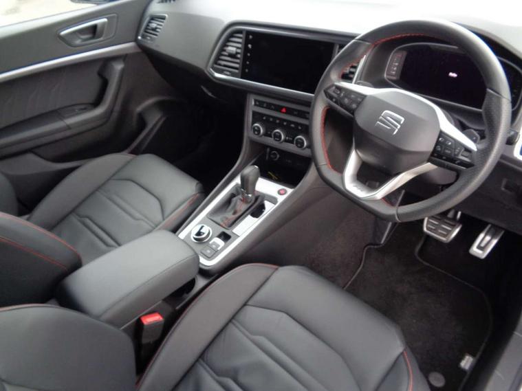 10" Digital cockpit, Bluetooth audio streaming with handsfree system, E-call, Electric tailgate with virtual pedal, Outside temperature gauge, Progressive power assisted steering, SEAT drive profile with driving experience button - Normal, Sport, Eco and Individual mode, gearshift, steering and throttle response, Self parking functionality (includes front and rear parking sensors), Speed limiter, Start/stop system, Top view camera with rear view camera, Trip computer, wired and wireless full link smartphone integration, Wireless phone charger, Steering wheel mounted audio/phone controls, Black roof rails, Black side window trim, Body colour bumpers, Body coloured wheel arch surrounds, Chrome front grille frame, Dark tinted rear windows, Daytime running lights, Door mirrors with welcome light silhouette, Dynamic headlight range control with self adjusting whilst driving, Electric adjustable/heated/folding door mirrors, Front and rear electric windows, Illuminated aluminium front door sill, LED 3rd brake light, LED headlamps with lens and LED front fog lamps with cornering function, LED rear tail lights with dynamic indicators, Rear exhaust tailpipe, Rear fog lights, Rear side wing doors, Rear spoiler, Rear wash/wipe, Variable front intermittent wipers, 12V socket in front, 3 seat bench in 2nd row, 60/40 split folding rear seat, Aluminium pedals, Black greenhouse interior roof, Dual zone climate control, Electric adjustable driver seat with memory function, Front and rear head restraints, Front centre armrest, Front seat back storage pockets, Heated front seats, Height adjustable passenger seats with lumbar adjustment, ISOFIX points in outer rear seats with top tether anchorage points, Leather sports steering wheel and gear knob, Leather upholstery with front comfort seats, Rear armrest and easy back seat release mechanism from boot, Single front passenger seat, Steering wheel mounted gearshift paddles, Convenience pack - Ateca, Interior lighting pack - Ateca, Navigation system pack with DAB - Ateca, Safety and driving pack (L) - Ateca, Safety and driving pack with attention and drowsiness assist - Ateca, 3x3 point rear seatbelts, ABS, Traction control system (TCS), Electronic stability control (ESC) and Electronic differential lock system (XDS), Airbags - Driver and front passenger airbag with deactivation, front side, two curtain and driver's knee airbags, Electric parking brake with auto hold function, Front and rear seatbelt reminder, Hill hold control, Manual rear child locks, Single tone horn, Tyre pressure monitoring system, Alarm, Keyless entry, Locking wheel bolts, Remote central locking, Chrome interior detailing, 19" Exclusive alloy whelels 36/10 in glossy black, Tool kit,