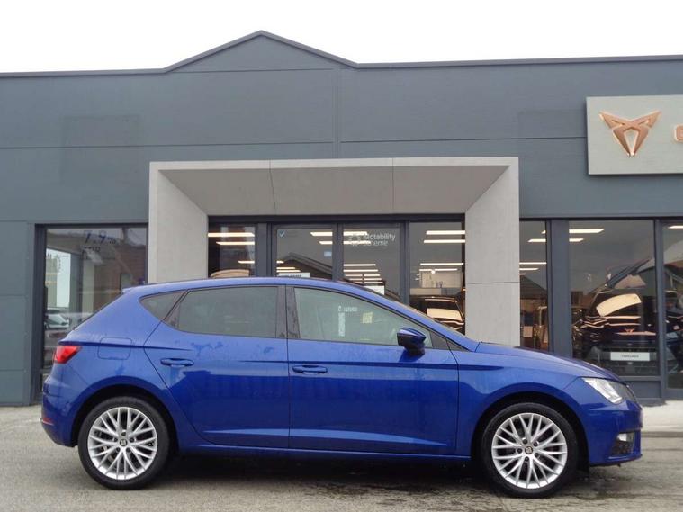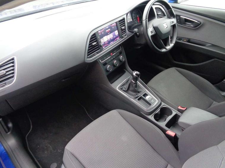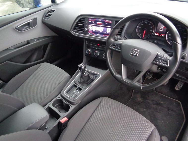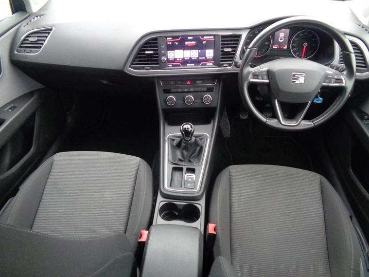 Electro-mechanical power steering, Front and rear parking sensors, Front assist with pedestrian protection, Full Link Smartphone Integration with Mirror Link, Apple Car Play, Google Android Auto with USB Type C cable for Apple and Android compatibility, Media system plus with 8" display, 4 USB, 8 speakers, CD, voice control, DAB, bluetooth and handsfree, steering wheel mounted audio and phone control, Navigation system 3D map display, high resolution colour driver display, two SD card slots, RPM, trip computer, outside temp gauge, instrument light brightness, low fuel warning light, lights on reminder, gearshift indicator, SEAT logo boot release, Service interval indicator, Comfort suspension, XDS electronic differential lock, Auxiliary input socket, SEAT USB media cable, Black front grille, Body colour door handles, Body coloured bumpers, Body coloured exterior mirrors with integrated LED indicators, Dark tinted rear windows, Electric front/rear windows, Electrically adjustable and heated door mirrors, Front fog lights with cornering function and rear fog light, Front grille frame in chrome, Halogen headlights with small LED daytime running lights, Hidden exhaust pipe, High gloss black finish B and C pillars, Rear wash/wipe, 12v power point in centre console, Additional heating and ventilation outlet in rear of centre console, Air conditioning, Boot storage net, Cargo rings in boot, Driver and passenger seat height adjust, Driver and passenger sun visor, covered and illuminated mirror, driver sun visor with card holder, Driver seat lumbar adjustment, Dust/pollen filter, Folding rear seats, Front and rear head restraints, Front centre armrest with storage compartment, Front comfort seats in Tresil cloth, Front cupholders x 2, Front seatback storage pockets, Front/rear floor mats, Height adjustable front and rear headrests and third rear headrest, Height/reach adjust steering wheel, High centre console with integrated box & cup holder, rear air outlet, with armrest in front seats, Illuminated glovebox, ISOFIX points in outer rear seats with top tether anchorage points, Leather steering wheel and gear knob, Luggage tie-down hooks, Storage box under drivers seat, 3 point seatbelts on all rear seats, ABS, traction control system, electronic stability control, Child proof door locks, Driver and front passenger airbags with front passenger airbag de-activation, front side, curtain, driver knee airbags, EBA, Electric handbrake, Electronic parking brake with auto hold, Front seatbelt pretensioners, Front seatbelt reminder, Hill hold control, Multi-Collision braking, Tyre pressure monitoring system, 2 folding remote keys with window open/close and boot opening function, Central locking fuel filler cap, Engine immobiliser, Locking wheel bolts, Remote central locking + deadlocks, Volumetric alarm with back up horn, Chrome interior detailing, 17" Dynamic alloy wheels 30/3,