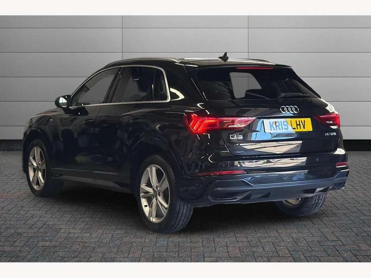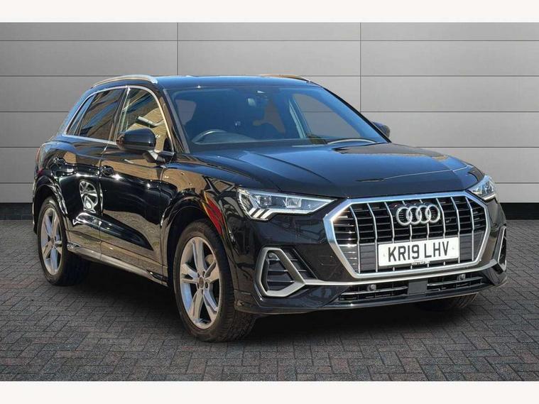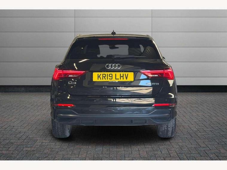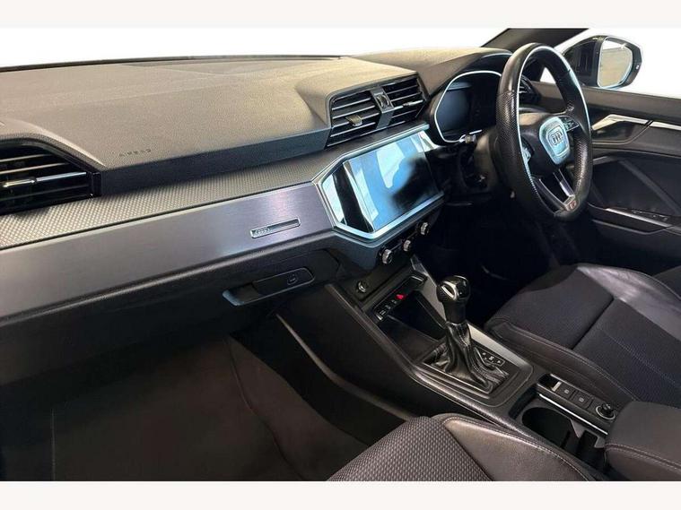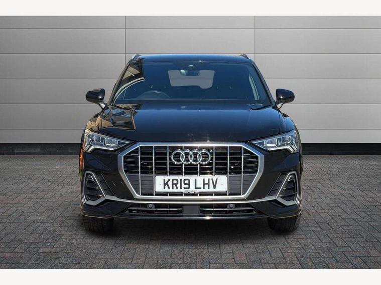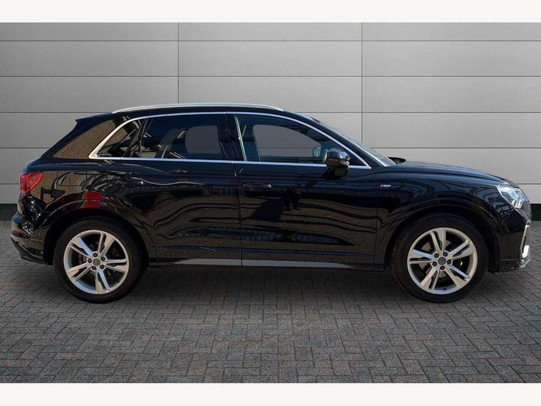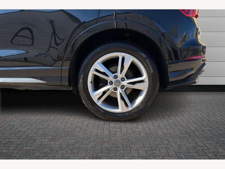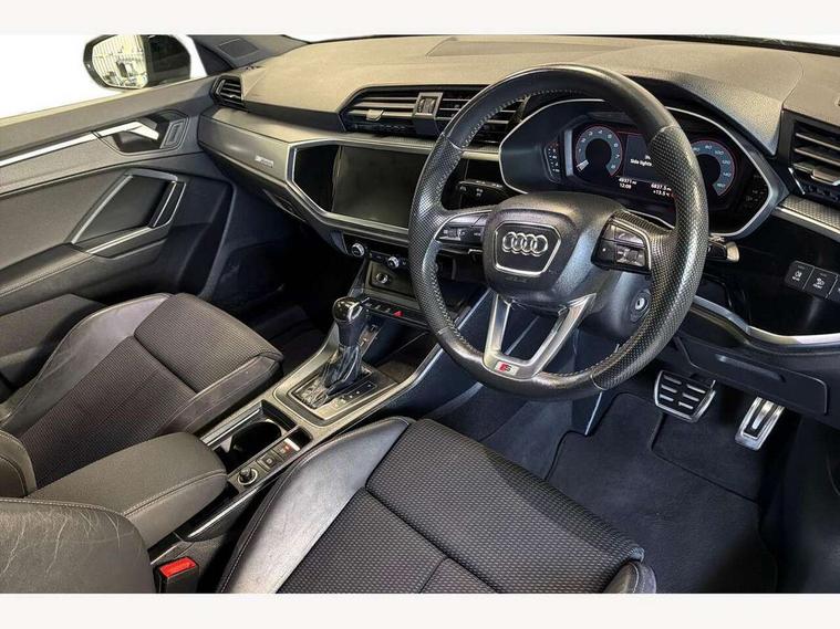 Audi connect safety and service (e-call), Audi drive select, Audi lane departure warning, Audi side assist, Audi smartphone interface, Bluetooth interface, MMI navigation plus with MMI touch, Power opening/closing tailgate, Progressive steering, Service interval indicator, Stop/start system, Voice control system, DAB digital radio module, Acoustic windscreen, Aluminium roof rails, Aluminium window trim, Auto dimming rear view mirror, Body colour door mirrors, Body coloured bumpers, Diffuser in matt Platinum grey, Electrically adjustable and heated door mirrors with integrated LED side indicators, Front and rear electric windows, Front fog lights, Front side air inlets in matt platinum grey, Front spoiler blade in matt platinum grey, Grille vertical bars in aluminium silver/Matt, High gloss black finish B and C pillars, Privacy glass, Rain and light sensors, Rear diffuser strip in selenite silver, S Line badge on wings, S Line front and rear bumpers, Side skirt insert in matt Platinium grey, Titanium black radiator grille, 12V socket in rear centre console, 40:20:40 split folding rear bench seat, Adjustable rear seat bench/backrest with centre armrest and cupholder, Aluminium door sill trims, Black cloth headlining, Dual zone climate control, Front and rear black floor mats with contrast stitching in rock grey, Front and rear headrests, Front centre armrest with storage compartment and angle adjustment, Illuminated door sill trims with S logo, ISOFIX child seat mounting and Top Tether with front passenger airbag deactivation, Perforated leather gearknob, Stainless steel luggage compartment sill finisher, Stainless steel pedals, Non smoking pack - Q3, 3x3 point rear seatbelts, 6 airbags - Driver, front passenger, curtain and side windows, Electronic stabilisation control including ABS, ASR and EDL, Hill hold assist, Pre sense basic, Seatbelt monitoring, Tyre pressure warning, Warning triangle and first aid kit, Anti theft alarm, Anti theft wheel bolts, Audi pre-sense front with pedestrain and cyclist recognition, Remote central locking, Dark matt brushed aluminium inlay, MMI touch colour display in gloss black with aluminium surround,