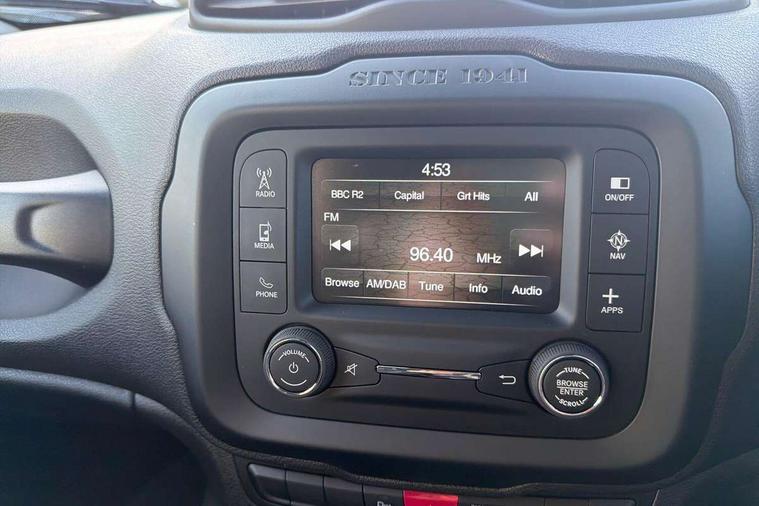 Bluetooth wireless phone connectivity, Cruise control, Electric power steering, Instrument cluster- 3.5" Monochrome TFT Display, Rear parking sensor, Speed limiter, Uconnect live service, VP2 Radio/Navigation system with 5" touchscreen, 6 speakers, Auxiliary input socket, DAB Digital radio, Steering wheel mounted controls, USB socket, Black front grille with chrome rings, Black lower side door cladding, Black roof rails, Body colour door handles, Body colour door mirrors, Electric adjustable heated door mirrors, Electric front windows, Electric rear windows, Front fog lamps, Rear wiper, 12v power point in centre console, 12V power point in luggage area, 4 way manually adjustable passenger seat with height, reach, tilt, backrest and headrest, 6 way manually adjustable drivers seat, Advanced multicolour ambient light and LED interior light, Chrome gear knob, Cloth upholstery, Driver's electric adjustable lumbar support, Folding passenger seat, Front headrests, Front sliding armrest, Height adjustable rear headrests, Isofix child seat restraint mechanism, Leather wrapped steering wheel, PTC (Positive Temp Co-efficent) heater, Seat back pockets, Tilt/telescopic steering column, 3 rear 3 point seatbelts, ABS, Driver and passenger airbags, Electronic parking brake, ESC - Electronic Stability Control + traction control, Front passenger airbag deactivation, Front side airbags, Hill start assist, Side curtain airbags, Tyre pressure monitoring display, Deadlock, Immobiliser, Remote central locking, Security alarm, 17" Aluminium wheels,