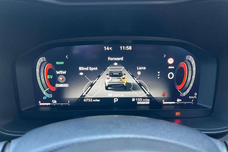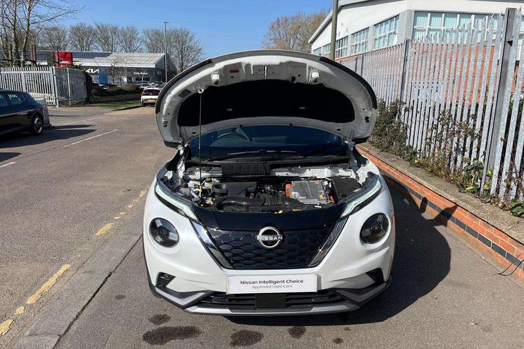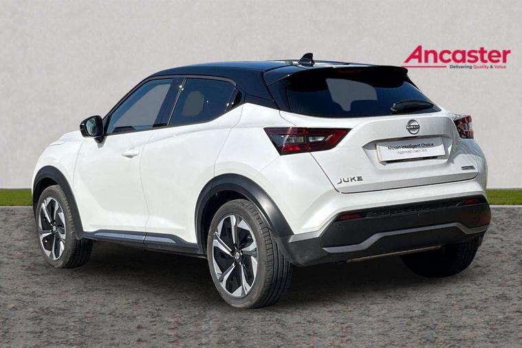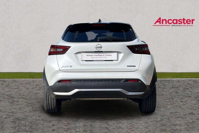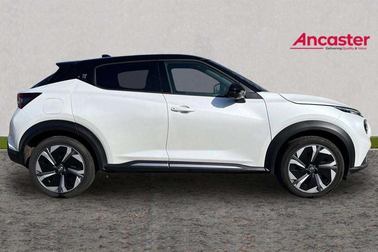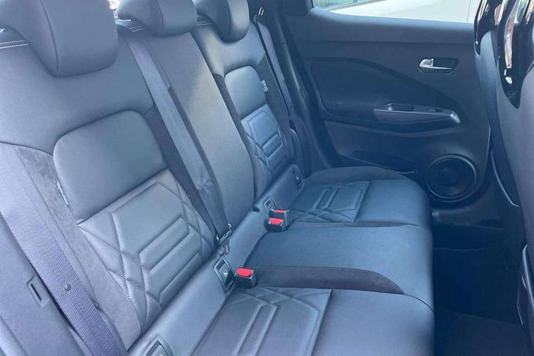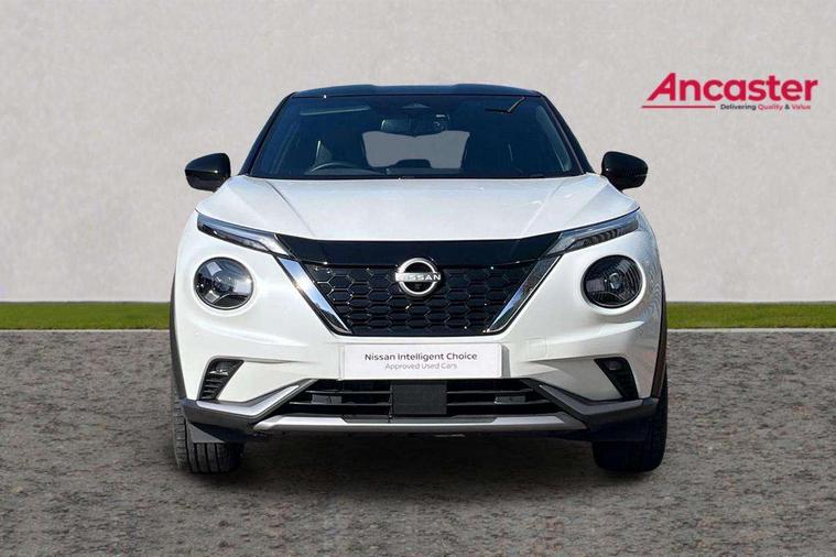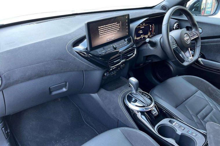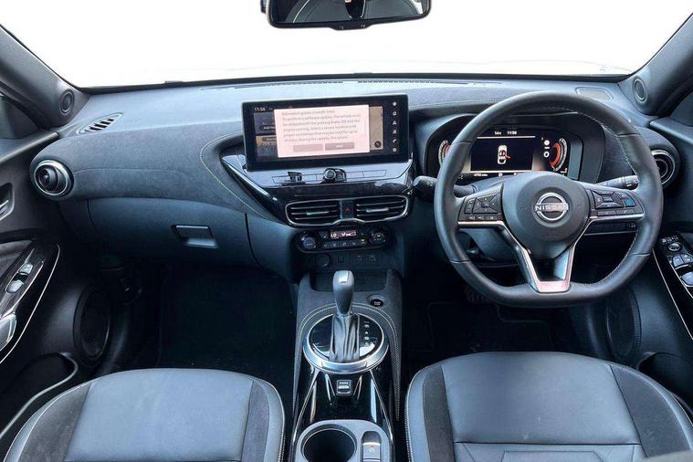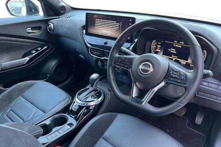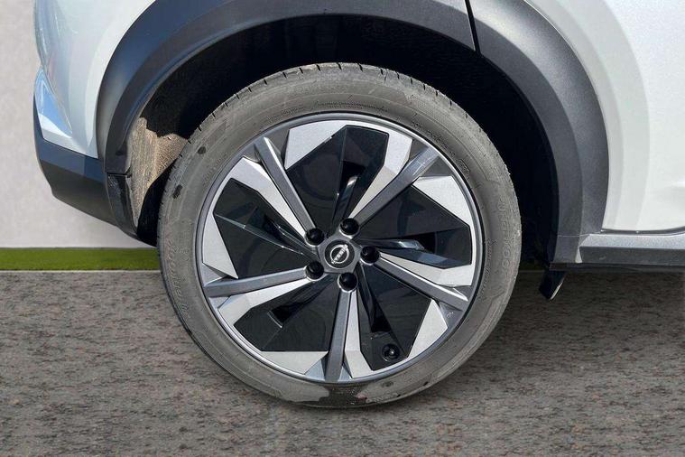 12.3" full colour TFT screen combimeter, Drive modes select (Eco, normal and sport), e-Pedal step, Emergency and breakdown call, EV mode switch, Front parking sensor, Intelligent driver alert system, Intelligent lane intervention, Lane departure warning system, Nissan connect 12.3" touch screen entertainment system, Nissan connect nav with TomTom traffic, Nissan connect services, Outside temperature sensor, Power Steering, Rear parking sensor, Stop/start button, Traffic sign recognition, Trip computer, Voice recognition, WiFi connectivity, Wireless Apple CarPlay and Google Android auto, Wireless Smartphone charger, 10 Bose speakers 8 speakers and 2 headrest speakers for driver/passenger seats, 2 X Rear console USB port, Bluetooth system, USB, Aux-in and 12V socket, Bose personal plus audio system, DAB Digital radio, Auto dimming frameless rear view mirror, Automatic hazard signal with emergency stop signal, Body colour door handles, Electrically adjustable door mirrors with integrated indicators, Follow me home headlights, Front and rear electric window with one touch driver window, High beam assist, LED 3rd brake light, LED daytime running lights, LED front fog lights, LED headlamps, LED rear fog lamp, LED rear lamps, One touch passenger window, Rear privacy glass, Rear side wing doors, Rear wiper, Roof spoiler, Shark fin roof antenna in solid Black, Solid black door mirrors, Solid black front bumper/rear bumper and side skirts inserts, Three blink turn signal, 3 height adjustable rear headrests, 3 seat bench in 2nd row, 60/40 split folding rear seat, Card holder on driver sunvisor, Door ambient lighting, Driver seat back pocket, Driver side rear coat hanger, Driver/passenger sunvisors and vanity mirrors, Front and rear cabin lights, Front armrest, Front door pockets with bottle holders, Front head restraints, Front/rear passenger grab handles, Gear console ambient circle lighting, Height adjustable driver's seat, Internal chrome door handles, Luggage board, Luggage space lighting, Monoform sporty seats, Multifunction steering wheel, Passenger seat back pocket, Rear door bottle holders, Single front passenger seat, Smooth synthetic leather steering wheel, Synthetic leather kneepad, Synthetic leather shift knob, Telescopic steering wheel adjustment, Two cupholders in front centre console, Two rear isofix child seat anchorage points with top tether, Welcome light and console tray ambient lighting, Comfort pack - Juke, Heat pack with height adjustable passenger seats - Juke, Interior personalisation pack - Juke, ProPilot pack - Juke Auto, Satin grey exterior personalisation pack - Juke, ABS with EBD and brake assist, Active ride control, Active Trace Control, Driver and passenger airbags, Driver and passenger side airbags, Electric handbrake with auto hold function, Electronic Stability Programme (ESP), Front and rear curtain airbags, Height adjustable seatbelts, Hill start assist, Intelligent emergency braking with pedestrian and cyclist recognition, Rear door child safety locks, Seatbelt reminder for driver/front passenger and rear seats, Three 3 point rear seatbelts, Traction control, Tyre pressure monitoring system, VDC Dynamic Vehicle Control, Alarm, Immobiliser, Intelligent key and start push button with walk away lock and approach unlock functions, Remote central locking, 19" Aero alloy wheels, Tyre puncture repair kit,