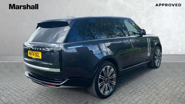 13.1" Touchscreen, 3D surround camera inc frwd traffic detection, vehicle clearance guidance, 3D view, clearsight ground view, manoevure light, 360 parking aid, wade sensing, All Terrain Info Centre, All wheel steering, Android Auto, Apple car play, Blind spot assist, Bluetooth connectivity streaming, Configurable programs, Driver condition response, Eco mode, Electric power assisted steering (EPAS), Emergency call service, Front and rear parking aid, Head up Display, Interactive driver display, Lane keep assist, Park assist, Powered gesture tailgate/boot lid, Rear collision monitor, Rear traffic monitor, Remote, Traffic sign recognition with adaptive speed limiter, Wi-Fi Enabled with data plan, Wireless device charging with phone signal booster, 8 speed automatic transmission, Active damper technology system, Adaptive dynamics, Adaptive off-road cruise control, All Wheel Drive (AWD), Automatic access height, Electronic air suspension, Open differential with torque vectoring by braking, Terrain Response 2 Auto, Twin speed transfer box, Digital Audio Broadcast radio-DAB, Meridian 1600W signature sound system, Pivi pro including smart settings, Connected navigation pro, nuance speech, USB socket, Acoustic laminated windscreen, Animated directional indicators, Automatic headlights, Automatic levelling headlights, Centre high mounted stop light, ClearSight interior rear view mirror, Digital LED headlights with signature DRL and image projection, Electric windows with one touch open/close and anti trap, Engine cover, Flush deployable exterior door handles, Front and rear recovery eyes, Front fog lights, Headlamp power wash, Heated rear window, Heated washer jets, Illuminated metal treadplates with Autobiography script, Laminated front and rear side glass, LED tail lights, Power fold, auto-dimming, heated door mirrors with approach lights, Rain sensing windscreen wipers, Rear boot, Rear fog lights, Rear side wing doors, Side repeater indicators in mirror, Solar attenuating windscreen, Trailer stability assist, Winter wiper park position, 12V power sockets, 3 seat bench in 2nd row, Air quality sensor, Auto folding loadspace cover, Bright metal pedals, Cabin air purification pro, Cabin lighting, Customer configurable single point entry, Driver and passenger front seat armrests, Easy boot loading, Ebony Carpet, Electric rear side window sunblinds, Four zone climate control, Front and rear cupholders, Front and rear grab handles, Front centre console refrigerator compartment, Front head restraints, Gearshift paddles, Heated steering wheel, Hook in load space, Loadspace light, Luggage tie down in loadspace, Multifunction steering wheel, Rear centre armrest, Rear head restraints, Rear ISOFIX, Single front passenger seat, Soft close doors, SV bespoke carpet mats, Twin blade sunvisors with Illuminated vanity mirrors, Upper and lower glovebox, Online pack with data plan - Range Rover, 3x3 point rear seat belts, Anti-lock braking system (ABS), Black brake calipers, Brake hold function, Cornering brake control (CBC), Customer configurable autolock, DSC - Dynamic Stability Control, Electronic brake force distribution, Electronic parking brake, Electronic traction control, Emergency braking, Front airbags with passenger seat occupant detector, Front side airbags, Hill descent control, Hill launch assist, Illuminated seat belt buckles, Low traction launch, Occupant protection assist, Power operated child locks, Roll stability control, Tyre pressure monitoring system (TPMS), Immobiliser, Intrusion sensor and alarm, Keyless entry, Locking wheel nuts, Remote central locking, Noble chrome controls,