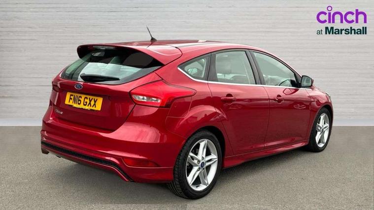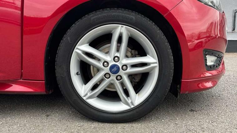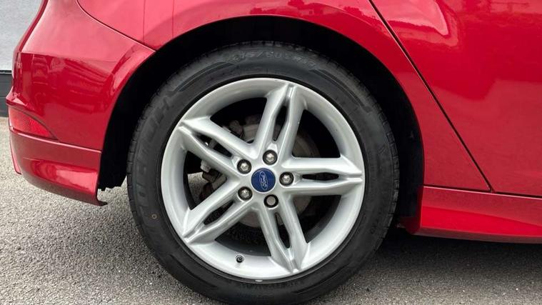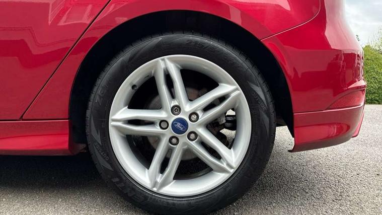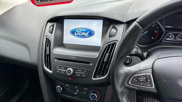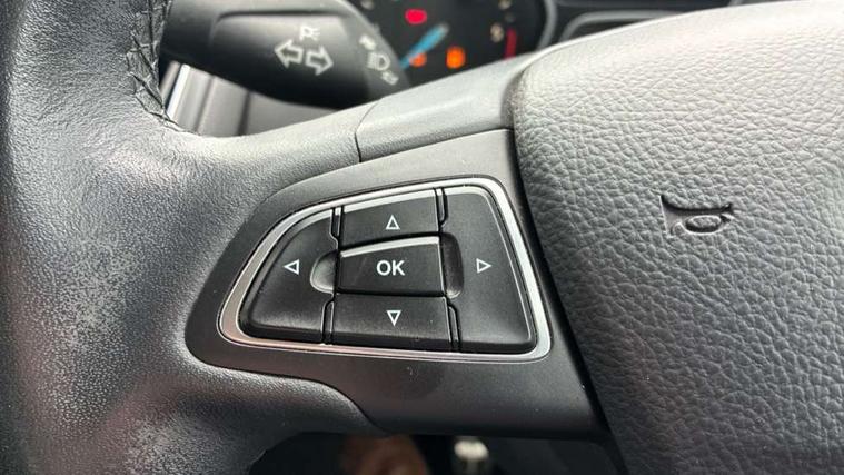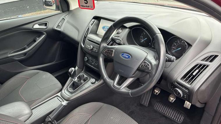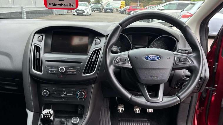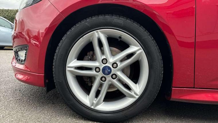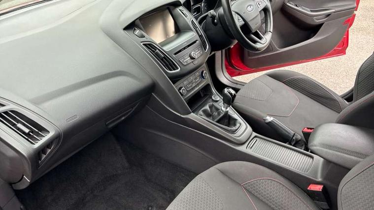 Digital clock, Easy fuel capless refuelling system, Eco mode, Electric boot release, PAS, TFT cluster screen, Trip computer, Diesel particulate filter, Sports suspension, Aux input, Steering column with mounted audio controls, SYNC 2 DAB radio/CD, 8" colour touch screen, emergency assistance, Bluetooth connection, advanced voice control, USB connection, 'Quickclear' heated windscreen/heated washer jets, Body colour bumpers, Body colour door handles, Body colour door mirrors, Body colour rear spoiler, Body colour side skirt, Body styling kit, Chrome finish on upper door line, Chrome radiator grille and surround, Electric adjustable heated door mirrors, Front fog lights, Front variable intermittent wipers with electric wash, Heated rear window, LED daytime running lights, Tailgate wash/wipe, 3 spoke leather steering wheel, 60/40 split back and cushion rear seats with 2 height adjustable headrests, Air conditioning - CFC-free, Centre console with sliding front armrest, Cloth upholstery, Driver's seat manual height adjust, Driver's seat with adjustable lumbar support, Front floor mats, Height adjustable front headrests, Isofix child seat preparation, Reach + rake adjustable steering column, Sports pedals, Sports style front seats, ABS+Electronic Brake force Distribution, Driver airbag, ESP with traction control + emergency brake assist, Front inertia reel height adjustable seatbelts with pre-tensioners, Front passenger airbag, Front side airbags, Hill start assist, Side curtain airbags, Three rear inertia reel lap/diagonal seatbelts, Tyre pressure monitoring system, Immobiliser-Passive Anti-Theft System (PATS), Keyless start, MyKey system, Remote central double locking, Thatcham Cat.1 alarm, Contrast stitching - Red, Mini steel spare wheel,