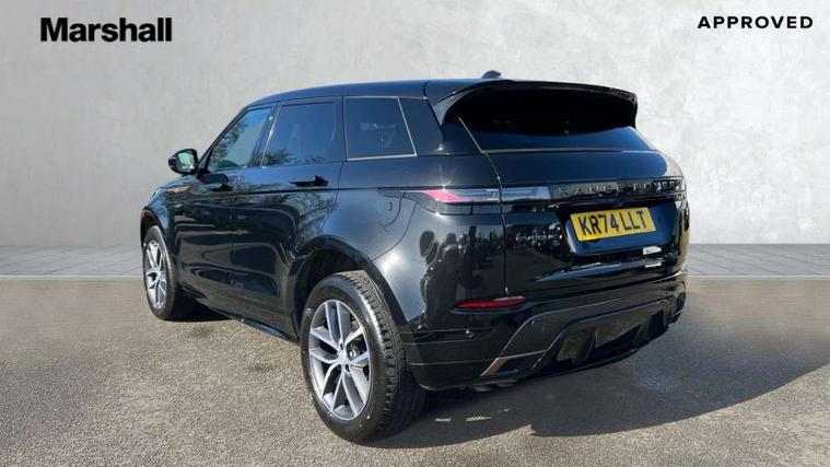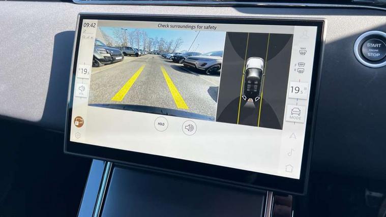 11.4" touch screen, 3D 360 degree surround camera with wade sensing, Adaptive cruise control, Android Auto, Apple car play, Blind spot assist, Bluetooth connectivity, Brake pad wear indicator warning light, Driver condition monitor, eCall emergency system, Eco mode, Electronic power assisted steering (EPAS), Front and rear parking aid, InControl remote, Interactive driver display, Land Rover InControl apps, Lane keep assist, Pivi pro connected includes diamond pivi variant, smart settings, connected navigation pro, nuance speech licence, Powered tailgate/boot lid, Rear collision monitor, Rear traffic monitor, Tailgate, Traffic sign recognition with adaptive speed limiter, Voice control system, Wireless device charging, All terrain progress control, Diesel exhaust fluid (DEF) large tank, Efficient Driveline, Large fuel tank, Terrain Response 2, Digital Audio Broadcast radio-DAB, Steering wheel mounted controls, Acoustic laminated windscreen, Auto headlights, Auto high beam assist, Automatic headlight levelling, Electric windows with one touch open/close and anti trap, Flush deployable exterior door handles, Front and rear recovery eyes, Heated rear window with timer, Heated washer jets, Heated windscreen, LED headlights with signature DRL and LED tail Lights, Power fold, auto-dimming, heated door mirrors with approach lights and auto dimming driver side, Rain sensing windscreen wipers, Rear animated directional indicators, Rear fog lights, Rear side wing doors, Rear wiper, Side repeater indicators in mirror, Tailgate spoiler, Third brake light, Winter wiper park position, 12 way driver memory and 10 way passenger electric front seats with 2 way manual headrest + 4 way lumbar support, 40:20:40 split folding rear seats with centre headrest and armrest, Ambient interior lighting, Bright metal pedals, Carpet mats, Chrome tread plates with range rover branding Includes stainless steel loadspace scuff plate with etched graphic, Customer configurable single point entry, Front and rear cupholders, Heated front seats, Heated steering wheel, Isofix system on outer rear seats, Manually adjustable steering column, Overhead lighting console, Overhead stowage for sunglasses, Passive front head restraints, Rear air vents, Rear head restraints, Satin chrome gearshift paddles, SE Grained leather upholstery, Single passenger seat, Standard steering wheel with Moonlight Bezel, Sunvisors with illuminated vanity mirrors, Twin sliding front centre armrest, Power socket pack 2 - Evoque, 3 rear 3 point seatbelts, Anti-lock braking system (ABS), Brake hold function, Customer configurable autolock, DSC - Dynamic Stability Control, Electronic brake force distribution, Electronic parking brake, Electronic traction control, Emergency braking, Front and rear seatbelt reminder, Hill descent control, Hill launch assist, Low traction launch, Occupant protection assist, Passenger seat occupant detector, Power operated child locks, Roll stability control, Six airbags - Driver and passenger airbags/driver knee airbag/front side airbag and curtain airbags, Torque vectoring brake, Tyre pressure monitoring system, Alarm, Immobiliser, Intrusion sensor, Keyless entry, Locking wheel nuts, All season tyres,