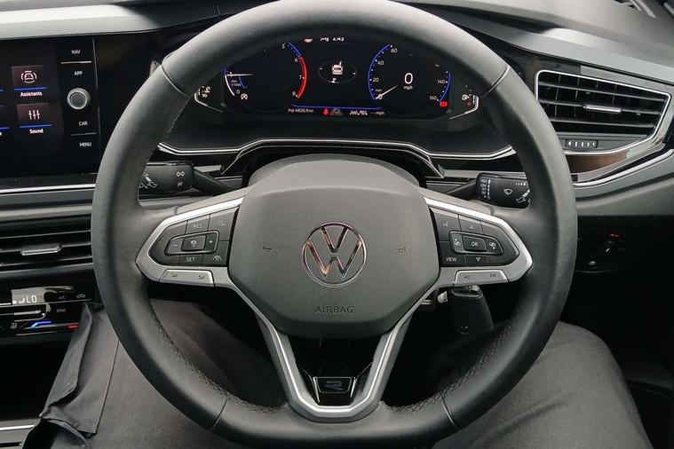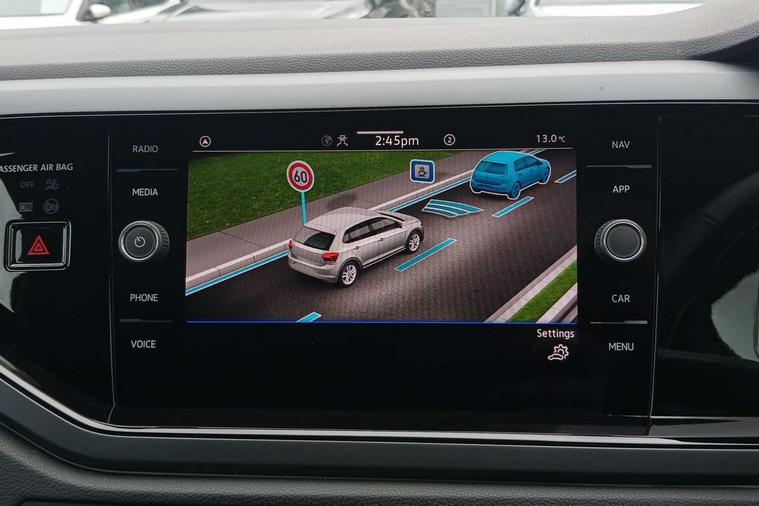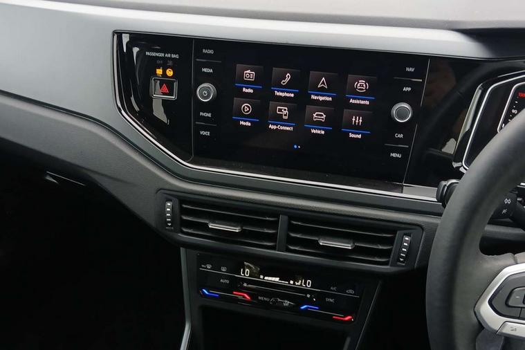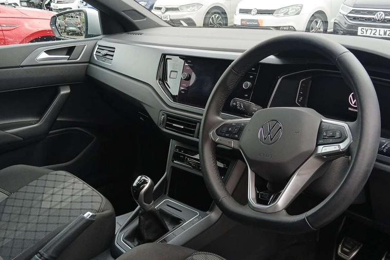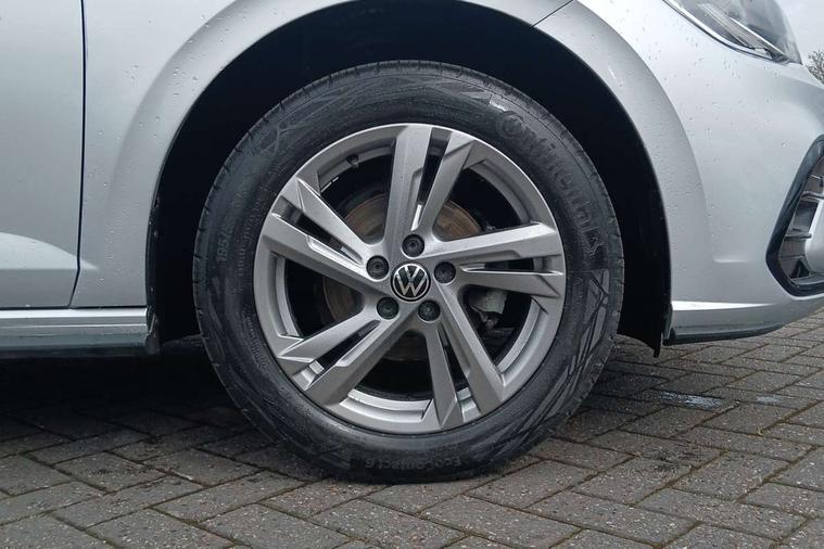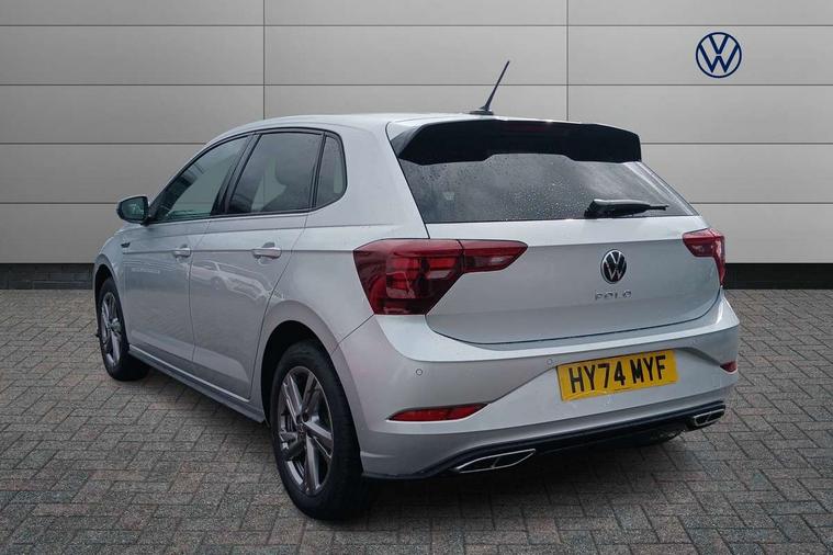 Advanced driver attention and drowsiness monitor, Bluetooth mobile phone interface, Digital Cockpit Pro with 10.25" Display, Dynamic road sign display, Emergency call service, Multifunction camera, Power assisted speed sensitive steering, Predictive adaptive cruise control without follow-to-stop and speed limiter, Preparation for We connect and We connect plus, Speedo and rev counter, electronic odometer, trip, service interval display and fuel gauge, Standard rear axle, Travel Assist - Lane keeping system and traffic jam assist, Travel assist including emergency assist, Trip computer, Warning signal and warning light for front and rear seatbelts not fastened, Washer fluid level indicator, Wireless app connect, Front wheel drive, Rear shock absorpion, Start-stop system with battery regeneration (recuperation - energy recovery during braking), DAB Digital radio, Diversity antenna for FM reception, Front and rear 6 speakers, Body colour bumpers, Body colour door handles, Electric front windows, Front scuff plates with R-Line logo, Heat insulating darkened glass in side and rear windows, Heat insulating glass windscreen, Power folding adjustable/heated exterior mirrors and front passenger exterior mirror lowering function, Rear electric windows, Rear fog light, Rear side wing doors, Rear windscreen washer and wiper with interval delay, Third brake light, 12V power socket in centre console, 2 USB-C ports in the front, 2 USB-C charging sockets on the center console in the rear, 3 rear head restraints, 60/40 split folding rear seat and rear seat bench not split, Air care climatronic air conditoning system with active combination filter and 2-zone temperature control, Black roof lining, Carpet mats, front and rear, Chrome plated radiator grille inserts, air vent surrounds and light switch surrounds, Door and side trim panel, Driver and front passenger seat height adjustment, Driver/passenger sunvisors with illuminated vanity mirrors, Front centre armrest, Front footwell illumination, Front seat backrest storage pockets, Front sports comfort seats, Handbrake lever handle in leather, Headliner in recycled material, Isofix child seat preparation easy-fit (for two outer rear seats, and front passenger seat) compatible with I-size, Karoso artvelours cloth upholstery, Leather trimmed gear knob, LED interior light with switch off delay and dimmer, 2 reading lights front and rear, Luggage compartment cover, Luggage compartment floor, Luggage compartment lighting, Lumbar adjustment for front seats, Multifunction steering wheel, Single front passenger seat, Stainless steel pedals, Standard pedal cluster, Light and sight pack - Polo R-Line/Black Edition, 3 point height adj front seatbelts + pretensioners, 3x3 point rear seatbelts, ABS, Driver and front passenger airbag with front passenger airbag deactivation, Drivers and front passengers safety optimised head restraints, ESC (Electronic stability control) + EDL (Electronic Differntial lock) and ASR (Traction control), Extended and predictive pedestrian/ cyclist protection, Front curtain and side airbags with center airbag, Hill hold control, Manual child lock in rear doors, Single tone horn, Tyre pressure loss indicator, Alarm with interior protection, Anti-theft alarm system with interior monitoring, backup horn, and towing protection, Anti-theft wheel bolts, Electronic engine immobiliser, Chrome applications on rotary light, mirror adjustment, window regulator switches, outlet with frame in black, Dark grey anodised matt decorative inserts in dash and front door panels, 16" Valencia alloy wheels, Low rolling resistance tyres,