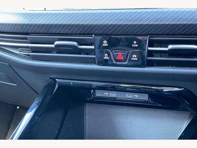 Adaptive cruise control (ACC) with speed limiter and front assist (reacting to vehicles pedestrians and cyclists), Car2X communication, Digital cockpit pro - 10.25" high resolution TFT dash display screen with customizable menus and information, Driver alert system, Driver profile selection, Dynamic road sign display, eCall - Emergency call service for SOS calls to emergency response, Lane assist, Mobile phone interface with wireless inductive charging function, Progressive steering, Speedo, rev counter, electronic odometer, trip, service interval display, exterior temperature and fuel gauge, Start/Stop function, USB-C ports in the front and rear centre console with increased charging performance, Warning buzzer and light for front seatbelts unfastened, Wireless app connect, Petrol Particulate Filter, XDS electronic differential lock for improved traction and handling, Premium USB cable in choice of either Apple or Android smartphone compatibility, Ambient lighting, exterior illuminated styling elements at the sides, Auto dimming rear view mirror, Automatic headlamp activation with Coming home and Leaving home feature, Automatic headlights, Body colour door handles, Body colour door mirrors with integrated indicators, Body colour rear roof spoiler, Dynamic headlight range control, Electrically heated and adjustable door mirrors with memory feature, Front and rear electric windows, Heat insulating glass windscreen, Heated rear windscreen, High level 3rd brake light, Highway light, LED daytime running lights, LED headlights incorporating turn signals, LED License plate illumination, R Line body coloured bumpers, Rain sensor, Rear fog light on one side and reversing lights on both sides, Rear lights incorporating LED technology, Rear side wing doors, Rear tinted glass 65% light absorbing from B pillar backwards, Rear windscreen washer and wiper with interval delay, Welcome light, 12V socket in front centre console, 12V socket in luggage compartment, 3 rear head restraints, 3 seat bench in 2nd row, Ambient lighting - Customisable 30 colour ambient lighting, Black roof lining, Brushed stainless steel pedals, Chrome plated surround to electric mirror button, window switch and air vent surrounds, Drivers and front passengers sun visors with vanity mirrors, Front + rear carpet mats in recycled material, Front centre armrest with storage compartment, Front cupholders x 2, Front passenger seat, Front reading lights x 2 incorporating LED technology, Front seat lumbar support adjuster, Front sports seats, Glovebox, Height adjustable front seats, Height and reach adjustable steering wheel, Isofix child seat preparation for 2 rear child seats and front passenger seat, Luggage compartment lighting, R Line door and side trim panel, R Line front seats integrated head restraints, R-Line leather wrapped multi function sports heated steering wheel, Removable luggage compartment cover, Sardegna cloth upholstery with front and outer rear seats Art Velour inner sides of bolsters, Split folding backrest with centre armrest and unsplit rear seat bench, Woven fabric storage compartments in front and rear doors, 3 point height adj front seatbelts + pretensioners, 3 rear three point seatbelts, ABS, Child locks on rear doors, Driver and front passenger airbag with front passenger airbag deactivation, Drivers and front passengers safety optimised head restraints, Electronic parking brake with auto hold, ESC (Electronic Stability Control), Extended pedestrian protection measures, Front and rear passengers curtain airbag system including front side airbags, Front centre airbag, Front disc brakes, Front side airbags with curtain airbags, Rear disc brakes, Two tone horn, Tyre pressure monitoring system, Alarm with interior protection and deactivation via infotainment system, Electronic engine immobiliser, Carbon grey decorative inserts in dash and front door trim panels, High gloss black centre console, Soul dashboard,