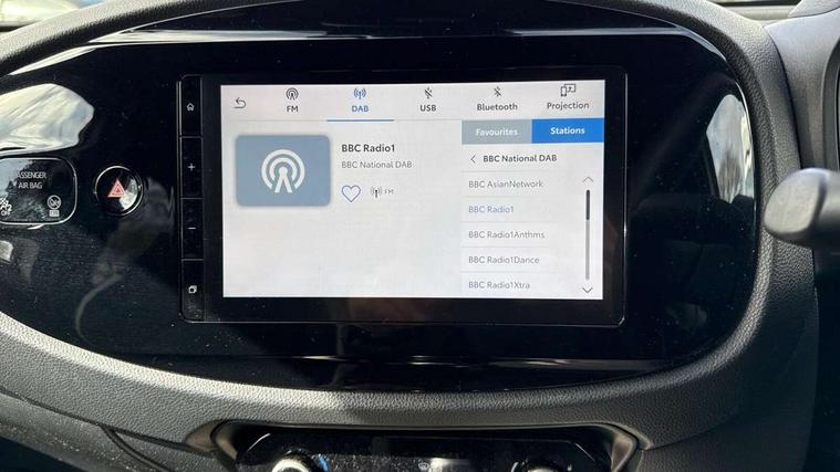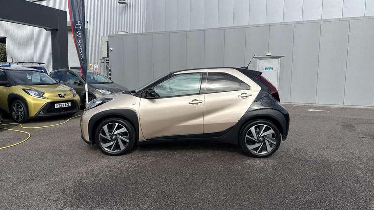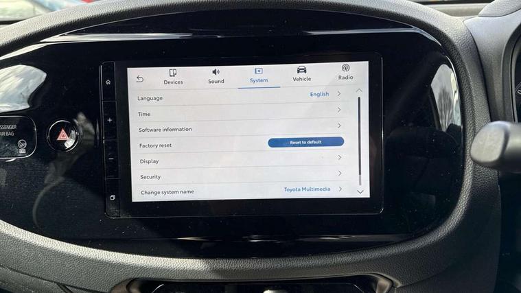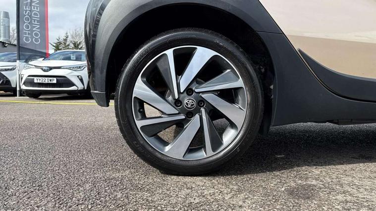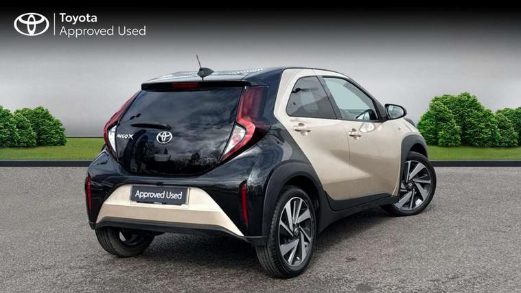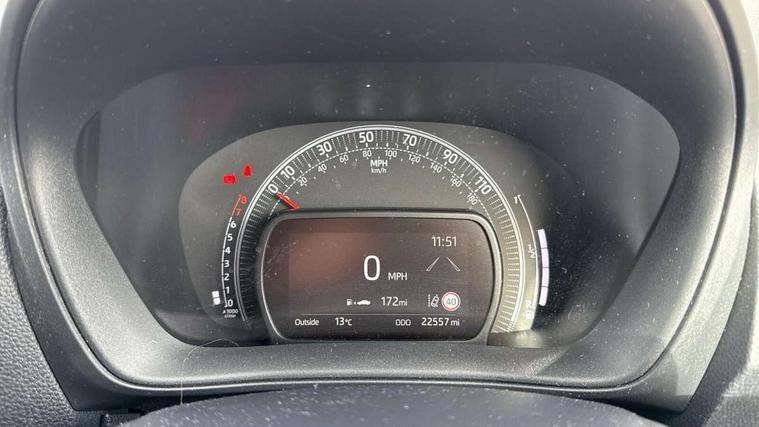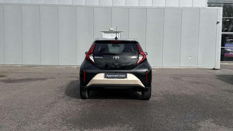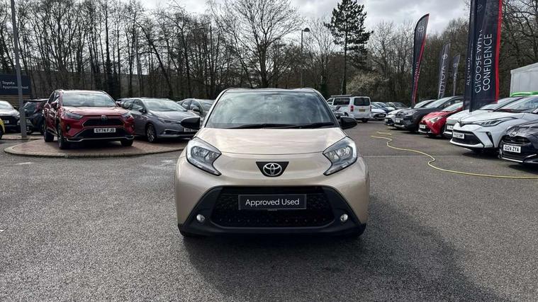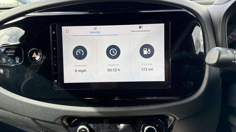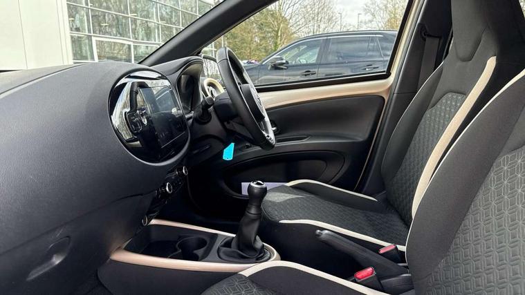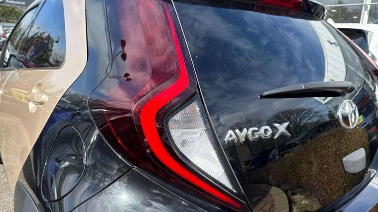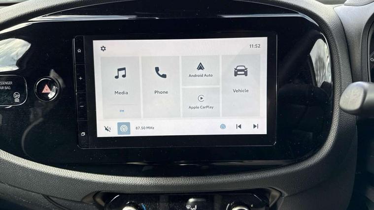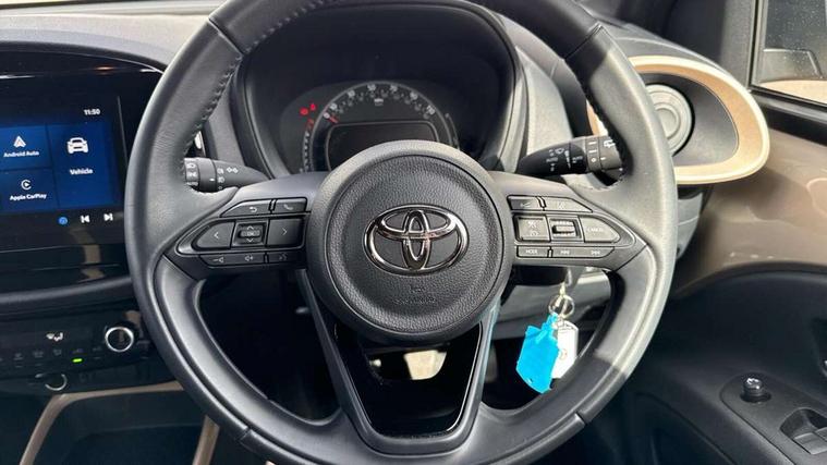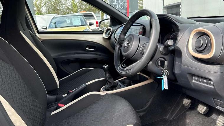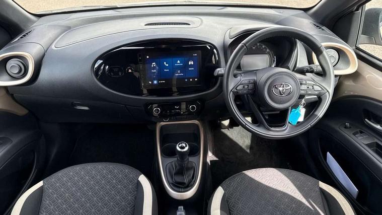4.2" TFT colour screen, Adjustable speed limiter, Analogue speedometer, Bluetooth connectivity, Digital tachograph, Driver attention alert system, eCall emergency call system, Electric power steering, Intersection turn assist, Key reminder warning, Noise reduction kit, Pre collision system with emergency steering assist, Reversing camera with static guide lines, Smart phone integration with Apple car play/Android Auto, Speed limit display, Start and stop, Vehicle Stability Control (VSC), 4 speakers, 9" HD multimedia display touch screen with Toyota smart connect, DAB digital audio broadcast, USB connector, Auto headlights, Auto wipers, Automatic headlights cut-off, Bicycle towing hook, Black contrast roof, Black side protection mouldings, Black wheel arch mouldings, Body colour door handles, Body coloured front bumper, Boot door scuff plate, Eclipse black rear bumper, Electric heated door mirrors, Follow me home headlights, Front fog lights, Front power windows, Gloss black door mirrors, Gloss black upper front grille, Headlight cut-off reminder, LED daytime running lights, LED front light guide, LED High mounted stop lamp, Manual day/night rear view mirror, Manual headlight levelling, Pagoda roof, Power adjustable door mirrors, Power back door, Privacy glass, Projector halogen headlights, Rain sensor, Rear combination lights LED bulb type, Rear side wing doors, Rear windscreen defogger, Rear windscreen wiper, Short antenna, Variable intermittent windscreen wipers, 12v power outlet - front, 2 seat bench in 2nd row, 3 spoke leather steering wheel, 50/50 split folding rear seat, Adhesive roof headlining, Adjustable speed limiter switch on steering wheel, Audio and telephone switches on steering wheel, Auto air conditioning, Black insert on steering wheel, Black roof lining, Boot light, Centre room light, Chrome interior door handles, Chrome surround on air conditioning buttons, Clean air filter, Console box storage in body color, Fabric upholstery, Floor mats, Front and rear cup holders, Front head rest deco art, Front head restraints, Height adjustable driver seat, Intelligent adaptive cruise control switch on steering wheel, ISOFIX child restraint system on rear seats, Lane departure alert switch on steering wheel, Leather gearshift knob, Manual tilt steering wheel, Manually reclining and sliding driver seat, Manually reclining and sliding front passenger seat, Multimedia switches on steering wheel, Pollen filter, Rear door pockets, Rear head restraints, Satin silver insert on gear shift knob, Single compartment glovebox with lights, Single front passenger seat, Soft tonneau cover, Sun visors with mirror on driver and passenger side, Voice recognition switch on steering wheel, Toyota safety sense pack - Aygo X, Anti lock braking system + Electronic brake force distribution, Child safety door lock, Emergency brake light signal (EBS), Hill start assist control (HAC), Passenger airbag on/off switch, Seat belt reminder for front and rear seats, Supplement restraints system (SRS) - 6 airbags, Traction control, Tyre pressure warning system, Immobiliser, Remote power door locks, Black wheel centre caps, Tyre repair kit,