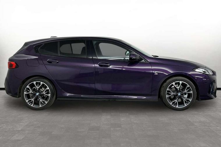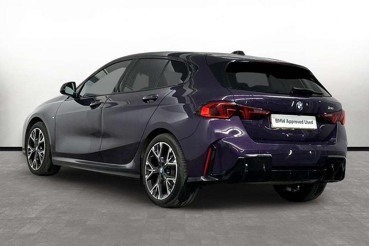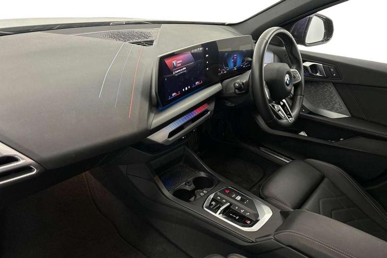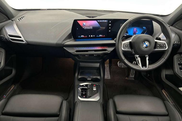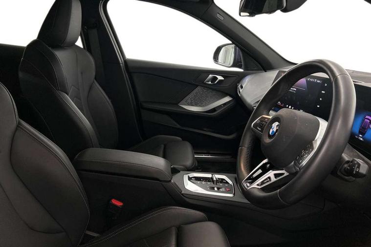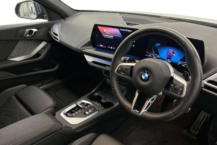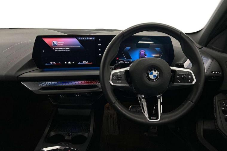 Active guard plus, Attentiveness assist, Bluetooth / WiFi interface for wireless connection of mobile terminal devices and audio streaming, BMW ConnectedDrive online services, BMW Live cockpit plus, BMW Teleservices, Check Control warning system for monitoring of lights and door/luggage compartment open warning, Cruise control with speed limiter, Eco pro mode, Electric power steering with Servotronic steering optimised at all speed ranges, Front and rear parking sensors, Front axle single joint with specific axle kinematics to minimise drive influences on steering + provide increased rigidity agile driving behaviour, Integrated owners handbook, Lane departure warning system, Oil sensor for level and grade, On board computer, Optimum shift indicator, Park assist including reversing assistant, lateral parking aid and reversing assist camera, Personal Profile, Pull away assistant, Rigidly mounted rear subframe - Multi link construction with separate spring / damper configuration and excellent driving characteristics, Speed limit Info including no-overtaking indicator, Speedometer, 49 litre fuel tank, Aluminium lightweight construction, Anti roll bar front and rear, Balancer shaft, Double VANOS twin scroll turbocharging system, Drive Performance Control, Electronic differential lock, High precision injection, M Adaptive suspension, Petrol Particulate Filter, Twin tube gas filled shock absorbers with degressive characteristic curve, VALVETRONIC engine management, DAB Digital radio, Auto dimming rear view mirror, Automatic headlight beam throw control, Automatic windscreen wipers and automatic headlight, Body colour door handles, Body colour mirror caps, Body colour roof trims, Chrome 'M' logo side designation, Chrome exhaust twin tailpipes round 90mm in left, Chrome kidney grille frame with Satin Aluminium struts, Direction indicator side lights in exterior mirrors, Electrically adjustable exterior mirror with mirror adjustment switch on drivers armrest and aspheric on driver side, convex on passenger side, Fading support, Folding side mirrors with auto dimming/folding wing mirrors with auto dimming, Follow me home headlights, Front and rear bumper system with replaceable deformation elements, Front and rear electric windows with open and close fingertip control, anti trap facility and comfort closing, Front door sill finishers in black plastic with M designation in metallic look, Green tinted heat protection glazing, High gloss shadowline window frame, Recess cover mirror frames and B/C pillar embelisher trim, High level third brake light, Integrated front windscreen with washer jets, LED daytime running lights, LED eyebrow turn indicators, LED front fog lights, LED Headlights, Lightweight engineering, Matt black air guide grilles, Matt black wheel arch trim, Nearside reverse light in rear light cluster, Preparation for high beam assistant, Rear fog lights, Rear side wing doors, Rear window wiper, Shark fin antenna, Trailer stabilisation logic, Visible VIN plate, Welcome lighting, 12V power socket in front centre console with blanking plug, 3 rear seat head restraints, 3 seat bench in 2nd row, 3 spoke sports leather steering wheel with black leather and stitching, pearl chrome decorative finish, specific M Badge, Anthracite headlining, Black boot net with lashing eyes, Cargo function on 2nd seat row, Child seat ISOFIX attachment for two outer rear seats and front passenger seat with anchorage points, Conditioned based service, Driver and front passenger backrest net on rear, Driver and front passenger seat heating, Driver side folding compartment in instrument panel, Folding rear clothes hook, Four grab handles integrated in roof lining, Front and rear door pockets with bottle holders, Front and rear side armrest integrated into door trim, Front armrest, Glove compartment, Height adjustable front head restraints, Luggage compartment for bag hooks on left and right, foldable luggage compartment liner and four lashing eyelets, Manual adjust steering wheel, Multi-function controls for steering wheel, Rear seat backrest with manual 60:40 split folding with 3 top tether clips integrated on rear of seat panels, Single front passenger seat, Storage compartment in centre console, Storage compartment in luggage compartment, Stowage of the parcel shelf in luggage compartment trim, Sun visors with vanity mirrors and insert tab, Two front centre console cupholders, Type C two USB ports in rear centre console, Velour floor mats, Connected pack professional - 1 Series, Interior lights pack - 1 Series, M Sport exterior styling aerodynamics pack - 1 Series, 2 tone horn, 3 point seatbelts on all seats, front pyrotechnic belt tensioners, stopper and belt force limiters, rear coded belt buckles, Airbags - Front driver/passenger, front and rear curtain head protection, front side, manual deactivation of front passenger airbag, Anti lock braking system (ABS) with brake assist, BMW emergency call, Brake drying, Braking readiness, Child proof locking system in rear door, Comfort modes, Cornering brake control, Crash sensor activating of airbags, Unlocking doors, hazard warning lights, interior light, safety battery terminal, Driver and front passenger seat belt security check, Dynamic stability control + (DSC+), Dynamic Traction Control - DTC, Electrically operated hand brake including automatic hold function, Front and rear disc brakes, Seatbelt warning, Side impact protection, Tyre pressure monitoring system, Warning triangle and first aid kit, Central locking switch for all doors, fuel filler cap and luggage compartment, Deadlocking function system to all doors, Drive away locking system on all doors and luggage compartment with de-activated in iDrive settings, Locking wheel bolts, Remote control with integrated key with High-gloss Black inlay and M designation and 1 button for open/ close lock, window, open luggage compartment, Start/stop button illuminated in centre console with keyless engine start and auto 