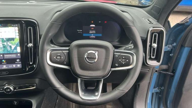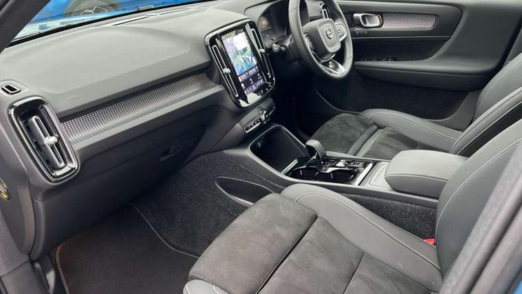12.3" Progressive Driver Display, 360 degree surround view parking camera with side proximity sensors, 9" centre console portrait touch screen, Adjustable steering wheel force, Bluetooth hands free telephone kit, E-call, eCall emergency call system, Front park assist, Google automatic services - Nav with google maps, apple carplay/android auto, voice recognition with google assistant, Hands free power tailgate, Lane keep assist with driver alert control, Oncoming Lane Mitigation, Rear park assist, Speed limiter, Speed sensitive steering, Wireless/Inductive Mobile Phone Charging, Dynamic chassis, DAB Digital radio, High performance sound, 8 speakers/250W, front USB and 2 rear type C USB, Premium Sound by Harman Kardon, Dolby Pro Logic II Surround Sound, Dirac Unison, 12 speakers/600W and subwoofer, Steering wheel mounted remote controls, Adaptive brake lights with high level LED brake lights, Auto dimming interior mirror, Automatic headlamp levelling, Automatic LED Headlights + Active high beam incorporating daytime running lights, Dark tinted windows for rear door side windows and cargo compartment, Front aluminium tread plates, Front and rear electric windows, Headlight cleaning system, High gloss black front and rear skid plate, High gloss black mesh front grille with high gloss black surround, High gloss black window trim, Home safe and approach lighting, Integrated roof rails in high gloss black, LED front fog lights, Power glass tilt and slide panoramic sunroof with sun curtain, Puddle lights, Rain sensor with automatic windscreen wiper activation, Rear side wing doors, Rear wiper, Roof antenna, Roof spoiler, Visible VIN plate, 12V socket in front tunnel console and luggage compartment, 2-Zone electronic climate control with CleanZone air quality system and pollen filter, 3 seat bench in 2nd row, 3 Spoke tailored steering wheel with chrome trim, 60/40 versatile split folding rear seat, A-pillar parking ticket holder, Ambient front door and instrumental panel lighting, Centre console cupholders and storage, Flexible load floor and grocery bag holder, Floor mats, Front door pocket and front cupholder illumination, Front footwell illumination, Front headrests, Front reading light and theatre lighting, Front seat cushion extensions, Front tunnel pocket, Glovebox bag hook, Height adjustable passenger seat, Height/reach adjustable steering column, High gloss centre tunnel deco, Illuminated glovebox, Illuminated luggage compartment, Illuminated tailgate, Illuminated vanity mirrors, Integrated waste bin, Isofix attachments on outer rear seats, Load protection net, Multi directional lumbar support, Power driver seat with memory + exterior mirrors memory, Power folding rear headrests, Power passenger seat, Rear armrest / integral cup holders / storage tray, Rear reading and courtesy lights, Single front passenger seat, Underfloor cargo storage, Climate pack - XC40, Driver assist pack - XC40, 3x3 point rear seatbelts, City safety with steering support with Pedestrian + cyclist + front collision warning with full auto brake and rear auto brake, Drivers knee airbag, Dual stage driver/passenger airbags, Electronic parking brake with auto hold, First aid kit, Front and outer rear seatbelt reminder and pretensioners, Front seats SIPS airbags, Hill descent control, Hill start assist, Inflatable curtain, Passenger airbag cut-off device, Power child locks on rear doors, Road sign information display, Run off Road Mitigation, Run off Road Protection, SIPS (Side Impact Protection System), Slippery road and hazard light alert, Stability and Traction Control with Spin control, Engine Drag Control and Corner Traction Control, Tyre pressure monitoring system, Vehicle deceleration control with Anti-lock Brake System, Electronic Brake Distribution and Emergency Brake Assist, Warning triangle, WHIPS whiplash protection system - front, Anti-theft alarm including immobiliser/volume sensor + level sensor, Care key with user defined top speed, Key integrated remote control central locking + fuel flap with deadlocking system and auto open/close power windows, Keyless drive includes keyless entry and keyless start, Locking wheel nuts, Private locking for tailgate,