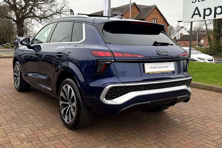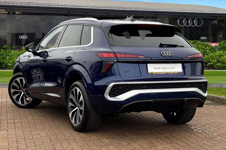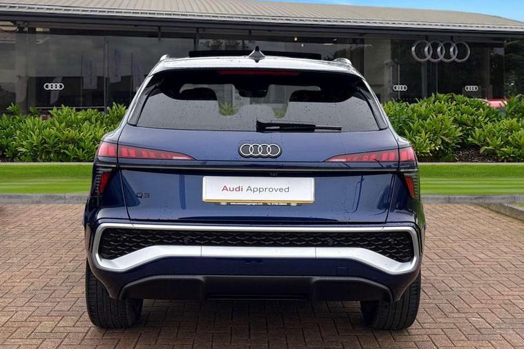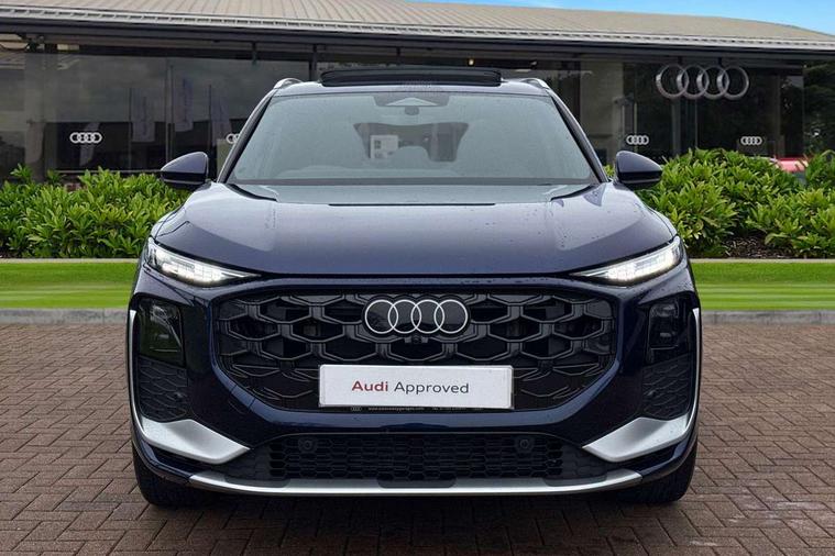 Adaptive cruise control, Audi connect emergency call and service, Audi connect remote and controls, Audi drive select (Balanced/Individual, effeciency, comfort and dynamic), Audi virtual cockpit plus - 11.9" display, Bluetooth interface, Camera based traffic sign recognition, Driver attention and fatigue monitor with driver monitoring, Front cross traffic assist, Lane departure warning with emergency assist, Panoramic curved display with 12.8" MMI navigation plus and MMI touch, Park assist plus with parking system and 360 display, Phonebox light with wireless charging, Reversing camera, Smartphone interface includes wireless Apple carplay/Android Auto, Start/stop system, Swerve assist and turn assist, Traffic sign based speed limiter, Voice control system with natural language interaction, Comfort suspension, Petrol Particulate Filter, 2 USB-C ports with charge and data functions, Audi sound system with 10 loudspeakers, subwoofer, 8 channel amplifier with 260 watts, DAB digital radio module, Acoustic glass for front door windows, Acoustic windscreen, Aluminium roof rails, Aluminium window trim, Audi Q3 lettering on the B-pillars, Auto dimming door mirrors, Auto dimming rear view mirror, Body colour door mirrors, Contrasting finish in volcano grey, Electrically folding, adjustable and heated door mirrors with integrated LED side indicators and kerb view function for passenger side, Full paint finish, Illuminated door sills with aluminium inserts at the front with S logo, LED daytime running lights, LED headlights plus with LED rear lights pro with continous light strip, illuminated Audi rings, rear, LED third brake light, Loading sill protector in stainless steel, Main beam assist, Privacy glass - dark tinted rear window, rear door and side windows, Projection light in the exterior mirrors - Projects a graphic element onto the ground, Q3 badging on the rear, Rain and light sensors, Rear side wing doors, Rear window, rear door windows and rear side windows in clear glass, Rear wiper, Sports bumpers, 3 seat bench in 2nd row, 3 spoke flat top and bottomed leather multi function sport steering wheel with gear shift paddles and "S" badging, 3-zone deluxe automatic air conditioning, 4 way lumbar support for the front seats - electric with horizontal and vertical adjustment in four directions, Black cloth headlining, Front and rear floor mats, Front and rear headrests, Front centre armrest, Heated front seats, Height and reach adjustable steering wheel, Interior storage compartment, Leather/artificial leather upholstery combination with S emblem + front sports seats, Luggage compartment lid, electrically opening and closing, Manual front seats with height adjustment, Rear seat bench plus with split folded 40:20:40, Single front passenger seat, Stainless steel pedals, Steering wheel operating unit, gloss black, Storage compartment in front centre console, Ambient lighting package pro - Q3, S line exterior styling pack - Q3, 3x3 point rear seatbelts, Convenience key with safelock, Driver and front passenger airbag with passenger airbag deactivation, Electromechanical parking brake, Electronic stabilisation control including ABS, ASR and EDL, First aid kit with warning triangle and high visibility vests, Front emergency brake assist, Hill hold assist, i - Size child seat mounting on the front passenger side and i - Size and top tether on the outer rear seats, Power operated child locks, Seatbelt monitoring, Three point automatic belts with belt tensioner and height adjustment, Tyre pressure loss indicator, Anti theft wheel bolts, Remote central locking, Thatcham approved category 1 anti theft alarm, Dark aluminium divergence inlay, Interior elements in dinamica microfibre, Interior trims in aluminium look, Tool kit and Jack,