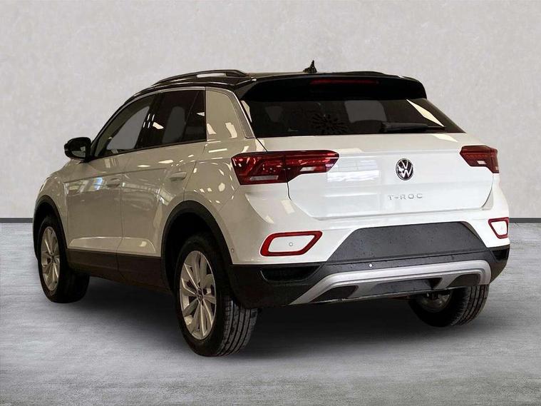 Advanced driver attention and drowsiness monitor, Dynamic road sign display, Emergency call service, Lane keeping system Lane Assist, Mobile phone interface, Modified key software - reduce switch off time for key status change to Long no motion, Online services, Park assist including front and rear parking sensors, Power assisted speed sensitive steering, Rear view camera, Service interval indicator, Tailgate/trunk lid release from outside, Think blue trainer driver tips and journey analysis, Warning sound and light for front seatbelts unfastened, Wireless app connect, Battery regeneration during braking, Front shock absorption, Rear shock absorption chassis with increased ride height, Start/stop function with battery regeneration, DAB Digital radio, Diversity antenna for FM reception, Music playback - MP3, WMA and AAC files, SD card slot, Simultaneous pairing of 2 compatible mobile devices, Title and cover art display, We Connect and We Connect Plus functionality, Auto dimming interior rear view mirror, Automatic hazard lights activation under emergency braking, Automatic headlight control with LED separate daytime running lights with coming/leaving home function, Black roof rails, Body coloured bumpers and radiator grille with chrome trim and front fog lamps with chrome bezel, Body coloured exterior mirror housings and door handles, Electrically adjustable and heated door mirrors, Extended roof spoiler, Exterior mirrors aspherical on driver side, convex on front passenger side, External USB type C socket and charging sockets, Front windscreen wiper with intermittent wipe and 4 position delay, Heated rear window, LED 3rd brake light, LED rear combination lamps, LED rear number plate lights, Power windows with comfort operation and circuit breaker, Privacy glass for rear side windows and rear window, Rain sensor, Rear exhaust tailpipe, Rear fog light on one side and reversing lights on both sides, Rear side wing doors, Rear wash/wipe with intermittent wipe setting, Remote electrically foldable door mirrors, puddle lights and reverse activated passenger's door mirror, 12V power socket in centre console, 3 rear head restraints, 3 seat bench in 2nd row, 4 load lashing points in luggage compartment, Air care climatronic air conditoning system with active combination filter and 2-zone temperature control, Black stitching for floor mats, Ceramique roof liner, Cloth upholstery, Door and side trim panel in cloth, Drawer under drivers seat, Driver/front passenger seat height adjustment, Front centre armrest, Front comfort sports seats, Front cupholders x 2, Front reading light, Front seat back storage pockets, Glove compartment door with light, Instrument lighting, white adjustable panel illumination, Interior ambient lighting and surround lighting, Interior light delay, Isofix child seat preparation, Leather gearshift handle, Load-through provision with cup holder when folded down ('Unsplit rear seat bench, split folding backrest, with centre armrest), Luggage compartment lighting, Lumbar support for driver's and front passengers seat, Non-folding front passenger seat backrest, Single front passenger seat, Storage compartment in left and right luggage area, Storage compartment in rear doors, Storage compartments in driver and front passenger doors, Sunvisors with illuminated vanity mirrors, Variable boot floor, height adjustable and removable, Driver assistance pack without proactive passenger protection - T-Roc Life/Match, 3 point height adj front seatbelts + pretensioners, 3 point seatbelts in outer rear with ECE label, ABS, Child locks on rear doors, City emergency braking and pedestrian monitoring, Driver and front passenger airbag with front passenger airbag deactivation, Driver and front passenger safety-optimised head restraints, Drivers seatbelt reminder, Electronic parking brake, Electronic Stability Control (ESC) inc EDL (Electronic Differential Lock) and ASR (Traction Control), Front and rear passengers curtain airbag system including front side airbags, Front disc brakes, Hill start assist, Predictive pedestrian protection, Rear disc brakes, Two tone horn, Tyre pressure loss indicator, Volkswagen roadside assistance, Alarm with interior protection, Keyless locking and starting system keyless access with safelock, Pewter matt decorative inserts for intrument panel, centre console and door panels at the front, Trims for alloy wheels,