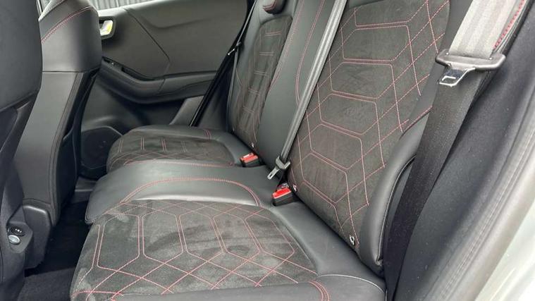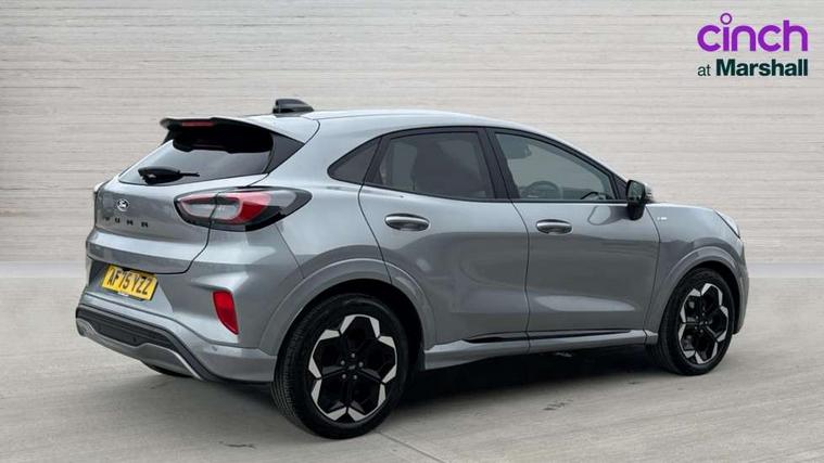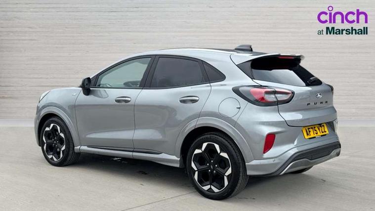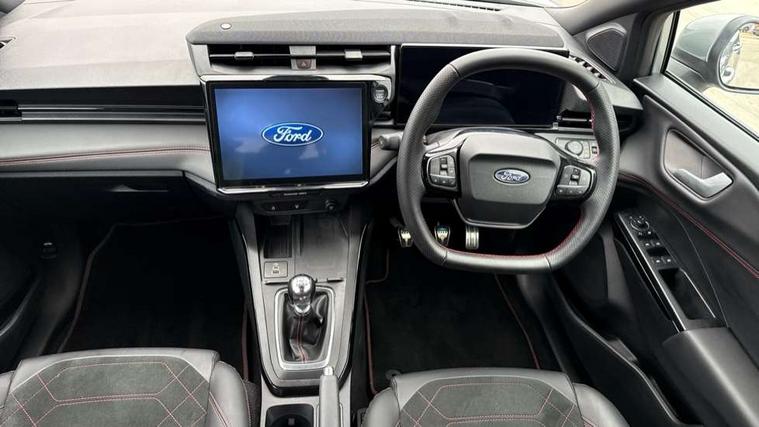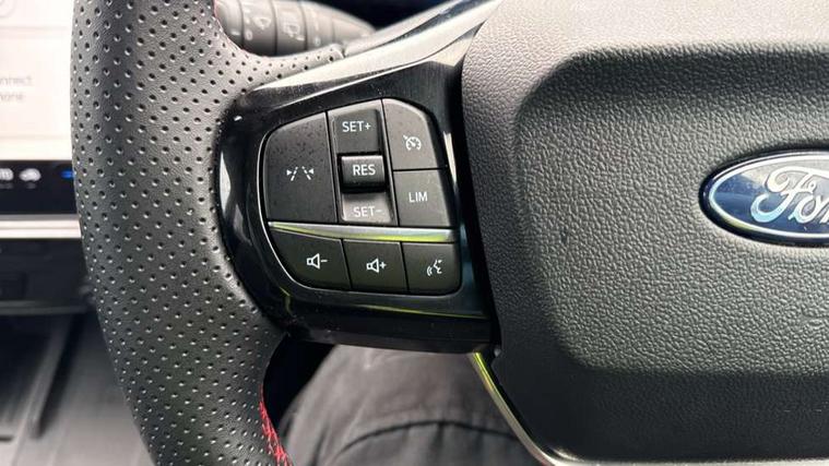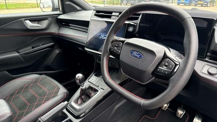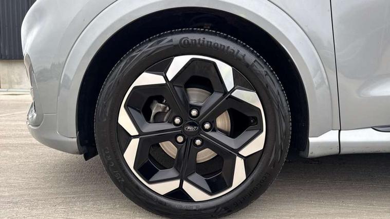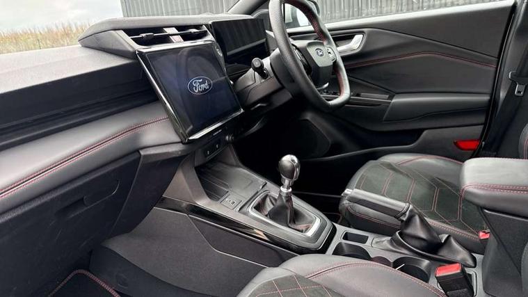 Driver impairment monitor, Emergency call service, Ford easy fuel, Full digital 12.8" instrument cluster, Lane keeping aid with lane departure warning, Power assist steering, Selectable drive modes(Normal, Eco, Sport, Slippery and Trail), Speed sign recognition, Sport suspension, 12" landscape touchscreen display with wireless apple car play and android auto premium B&O audio system with 10 speakers, Ford pass connect and emergency assistance, Ford SYNC4 with connected navigation, Automatic headlights with rain sensing wipers and auto high beam, Front fog lamps, LED daytime running lights, LED rear lamps, LED third brake light, Power foldable heated door mirrors with puddle lamps and puma logo protection, Quickclear heated windscreen, Rear privacy glass, Rear side wing doors, Rear wiper, ST-Line X body styling kit, 3 seat bench in 2nd row, 4 way lumbar support for passenger seat, Centre console with armrest and stowage, Electronic automatic temperature control (EATC), Ford megabox extended bootspace, Front and rear head restraints, Front floor mats, Manual 4 way driver seat adjust with lumbar adjustment, Single front passenger seat, ST-Line X Premium synthetic leather upholstery, Comfort pack with power lift tailgate - Puma, 3 rear seatbelts, Child safety lock, Electronic stability control (ESC) and hill start assist, Pre-collision assist with autonomous emergency braking, pedestrian/cyclist detection & post-collision braking, Tyre pressure monitoring system (TPMS), Thatcham alarm,