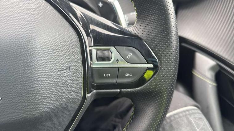 Blind spot monitoring, Bluetooth telephone facility, Connected 3D navigation, Driver attention warning, Exterior temperature indicator with ice warning, Front and rear parking sensors, Lane keep assist, Mirror screen with mirror link, apple carplay and android auto, Multi function trip computer, Peugeot connect SOS and assistance, PEUGEOT i-Cockpit with 10" capacitive colour touchscreen, PEUGEOT i-Cockpit with compact steering wheel, PEUGEOT i-Cockpit with configurable 3D headup instrument panel, Smart phone docking station, Smartphone charging plate, Speed limit recognition and recommendation, Visio Park 1 with 180 degree Colour reversing camera, 2 front USB socket with USB-C, 2 USB sockets in rear, DAB Radio (Digital Audio Broadcasting), Voice recognition for radio, navigation and telephony features, 2 X Rear number plate lights, Automatic front windscreen wipers, Black diamond roof, Black front wing trim with gloss black detail and GT badging, Body coloured exterior door handles, Dark tinted rear side and tailgate windows, Diamond black mirror shells, Diamond black rear spoiler, Electric, heated, and power folding door mirrors, Frameless electrochrome interior rear view mirror, Front bumper - Silver lower trim, Full LED headlights with smartbeam assist, Gloss black finish on B pillar, Gloss black longitudinal roof rails, Gloss black rear cluster connecting strip, Gloss black roof bars, Gloss black window surround, GT model designation badging on tailgate, Headlights left on audible warning, LED daytime running lights with 3 claw headlight with distinctive tooth design, LED front fog lamps with remote cornering function, LED side indicator lights integrated into door mirrors, Model designation badges front and rear, One touch electric front/rear windows with pinch protection, Radiator grille - Dark chrome chequered and gloss black edge trim, Radiator grille - gloss black top edge trim, Rear full LED 3D peugeot signature claw effect lights with daylight function, Rear reversing lights, Rear windscreen wiper triggered automatically in reverse gear, Stainless steel door sill scuff plates, Tailgate with heated rear windscreen and wiper blade, Twin chromed exhaust pipes, Wheel arch extensions, 1/3 to 2/3 split folding rear seats, 12V socket, 8 Colour personalisable ambient lighting, Aluminium pedals, Automatic air conditioning with pollen and active carbon filter, Central front armrest with storage compartment, Driver and front passenger sport seats, Electric power steering with reach and rake adjustable steering column, Front and rear carpet mats in black with lime green stitch detail, Front LED interior light with 2 reading spotlights and rear interior light with timer, Front passenger seat manual adjustment - height, longitudinal and back rest angle, Heated front seats, High centre console, ISOFIX child seat mounting points on passenger seat, Lime green contrast stitching to front centre console, door panels and dashboard facia, Mistral full-grain perforated leather steering wheel with Lime Green stitch detail and satin chrome 'GT' emblem, Modular boot floor, Piano keys: Gloss black and chrome toggle switches to access main functions of the vehicle and touchscreen functions, Roof lining - Mistral black, Seatbelt unfastened on the move audible and visual alert for front and rear seats, Drive assist Plus pack - 2008, Visibility pack - 2008, 2x 2nd row ISOFIX child seat mountings, ABS (Anti-lock Braking System) with EBD (Electronic Braking Distribution) and EBA (Emergency Braking Assistance), Acoustic vehicle alerting system, Active safety brake with night function/cyclists/pedestrians, Adaptive driver and front passenger airbags with passenger airbag deactivation function, Child locking functionality on rear doors, Driver/front passenger side airbags, Electric parking brake, ESP (Electronic Stability Program) + Hill Start Assist, Front and rear curtain airbags, Front and rear disc brakes, Front and rear three-point retractable seatbelts, with force limiters, Front optimised safety headrests and rear retractable headrests (x3), height adjustable, Tyre pressure sensor, Automatic door locking when moving off, Automatic hazard light activation upon heavy brake application, Deadlocks, Electronic code immobiliser, Peugeot Open and Go (keyless entry and push button start), Thatcham Cat.1 alarm, Carbon effect Dashboard, front and rear door panel finish,