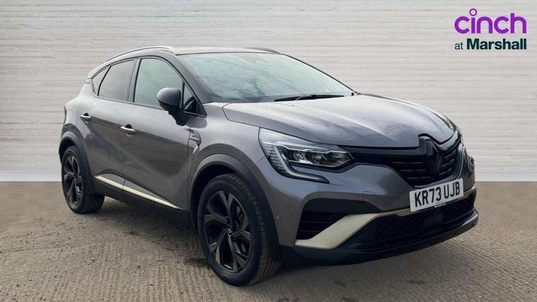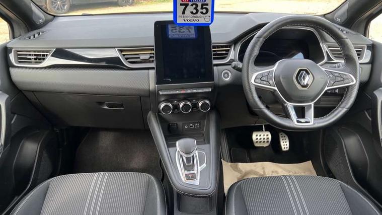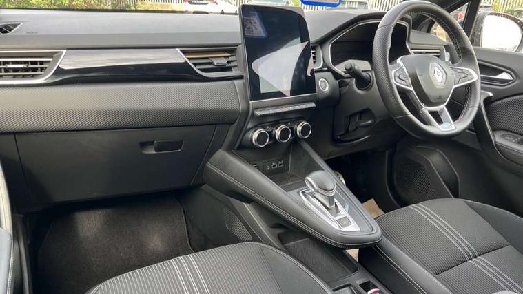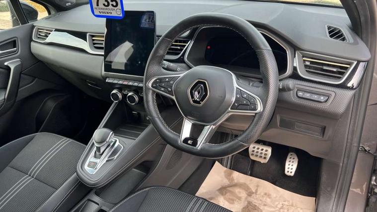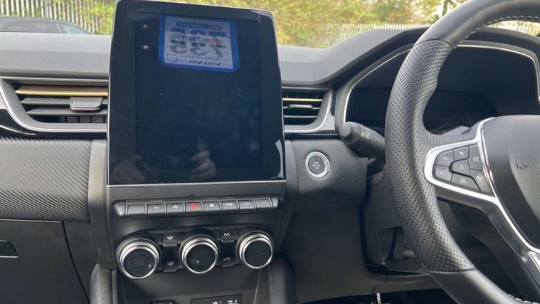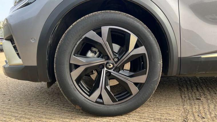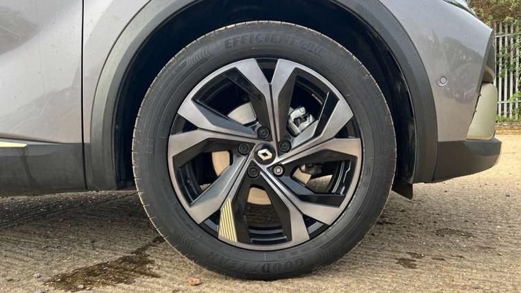 360 surround camera, Blind spot warning, EasyLink 9.3" portrait touchscreen with navigation, google search and traffic information, Eco mode, EV button to activate pure mode, Full digital virtual cockpit - 10" TFT colour display, Gear change indicator, Hands-free parking, Lane departure warning system, Lane keep assist, Multisense with 3 driving modes + 8 ambient lighting colours, Renault automatic emergency assist, Renault Easy Drive - Adaptive cruise control with Stop and Go and Lane centering, Smartphone integration compatible with Apple CarPlay and Android Auto, Traffic sign recognition with over speed prevention, Trip computer, Variable assistance power steering, BOSE sound system with 9 speakers, DAB Radio with Bluetooth and USB, 2 reverse gear LED lamps and 1 rear LED fog lamp in the bumper, Aluminium Renault sport door sills, Auto dimming rear view mirror, Automatic front wipers with rain sensors, Automatic headlights, Automatic high/low beam, Black 'Renault' logo at the front and rear, Black side door protection with warm titanium effect, Body coloured door mirrors, C Shaped LED front and rear lighting signatures with 3D effect on the rear lights, Day time running light, Double chromed exhaust tailpipes element, Drivers one touch window with anti-pinch feature, E-TECH Badging, E-Tech engineered front bumper with gold F1 blade, Extra tinted glass in rear windows and tailgate, Frameless rear view mirror, Front and rear electric windows, Front fenders decopart with shinny black insert, Front grille with shiny black upper trim, Full LED headlights with LED rear lights, Gold E-Tech badge on hatch door, LED high level brake lights, LED rear fog lights, LED turn indicators on door mirrors, Longitudinal roof bars, Rear side wing doors, Rear wiper, Shark fin antenna, Shiny black front and rear skid plate, 60/40 split and fixed base rear seat bench, Aluminium pedals, Automatic climate control with one touch demist function and air quality regulator, Central rear LED rooflight with 3 reading lights, Centre console storage tray, Dark grey interior roof lining, E-TECH Engineered leather steering wheel with gold E-Tech badge, E-Tech engineered leather/suede upholstery, Flying console with e-shifter, Front head restraints, Gold detailing on the dash and steering wheel, Gold stitching on the door panel, Heated steering wheel, Heating system with pollen filter, Height adjustable driver's seat, Height adjustable passenger seat, Height/reach adjust steering wheel, ISOFIX child seat fixing points on rear outermost seats, LED front roof lights, Modular boot floor, Rear head restraints, Single front passenger seat, Sliding rear bench, 3 rear seatbelts, ABS+EBA, AEBS - active emergency braking system, B Brake Mode - One pedal driving with increased regenerative braking, Distance warning alert, Driver and front passenger and 3 rear passengers seatbelt reminder, Driver and front passenger, side, head and curtain airbags, Driver height adjustable seat belt, Electric parking brake with auto hold function, Electronic stability control, Front dash warning indicator in case of heavy braking, Front driver and passenger side airbag deactivation, Hill start assist, Manual passenger airbag deactivation function, Rear door and window child locking function for rear door, Tyre pressure warning light, Anti drill door locks and locking fuel cap, Central door locking, Deadlocking system, Hands free keycard with push button and start/stop function, RAID (Renault Anti-Intruder Device) automatic door locking, Black soft touch dashboard, 18" E-Tech engineered le castellet diamond cut alloy wheels with gold inserts, Tyre inflation kit,