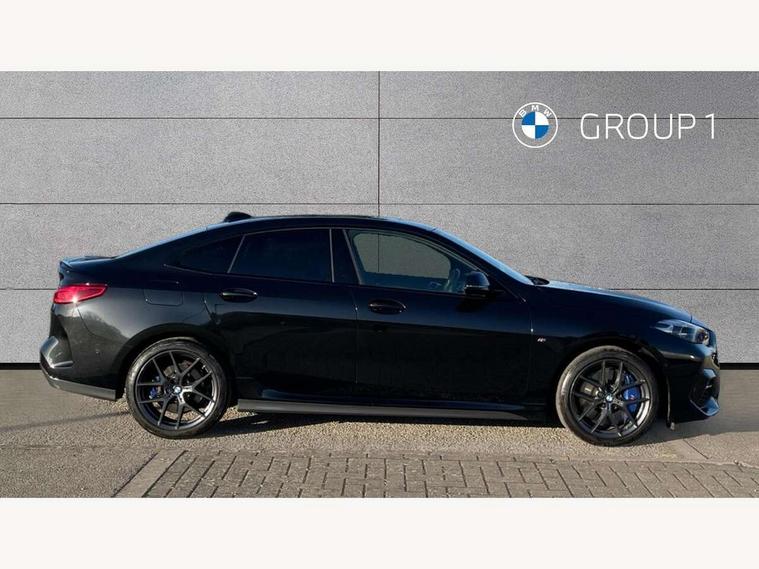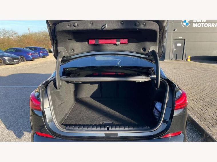 Active guard plus, Attentiveness assist, Auto start-stop, BMW ConnectedDrive online services, BMW Intelligent Personal Assistant, BMW Live Cockpit Professional with 10.25" high resolution instrument and control display, BMW Online services, BMW operating system with 7.0 mid interface, BMW Teleservices, Check Control warning system for monitoring of lights and door/luggage compartment open warning, Cruise control with braking function, iDrive controller with 7 short cut favourite buttons on centre console, Integrated navigation data with map data via USB +features such as 3D landmarks and micro city models, Integrated owners handbook, Intelligent voice assistant, Lane departure warning system, M Sports steering, On board computer - average speed+fuel consumption, service interval, clock/date, odometer/trip meter, outside temperature display and ice warning, Optimum shift indicator, Personal Profile, Pull away assistant, Speed limiting function, Aluminium lightweight construction, Balancer shaft, Double VANOS, Drive performance control with ECO PRO comfort + sport mode, Dual clutch automatic transmission, Electronic differential lock, High precision injection, M Sport suspension with stiffer spring/damper set-up and vehicle lowered by 10mm + twin tube gasfilled shock absorbers and Anti roll bars, Performance Control, Petrol Particulate Filter, VALVETRONIC engine management, 2x USB Type C ports (for charging and data transfer), 4G LTE Connectivity with hard wied 4G network sim card, DAB digital radio, MP3 players and RDS double tuner, Auto wipers, Automatically dimming rear view mirror, Body colour door handles, Body colour mirror caps, Chrome 'M' logo side designation, Chrome exhaust single tailpipe, round, Direction indicator side lights integrated exterior mirrors, Electric windows - front and rear, with open/close fingertip control and trap release, Exterior mirrors - electrically folding with anti-dazzle, Fading support, Follow me home headlights, Front and rear bumper system with replaceable deformation elements, Front door sill finishers in black plastic with M designation in metallic look, Heated, electrically adjustable exterior mirror aspheric on driver side, convex on passenger side, High gloss black B pillar finish, High gloss shadow line exterior trim, High level third brake light, LED daytime running lights, LED front fog lights, Lightweight engineering, Model designation on right side of tailgate, Preparation for high beam assistant, Rain sensor with automatic headlight activation, Rear boot, Rear fog lights, Rear side wing doors, Reversing light in rear light cluster, Welcome lighting, 12V power socket in centre console, 2 cupholders in front centre console, 3 rear seat head restraints, 3 rear seats, 3 spoke M sports design leather steering wheel finished in nappa leather with specific M badge, Anthracite finished floor mats with contrasting surround, Anthracite headlining, Automatic two zone climate control air conditioning, Child seat ISOFIX attachment for two outer rear seats and front passenger seat with anchorage points, Conditioned based service, Driver and front passenger seat heating, Front and rear door pockets including bottle trays, Front and rear side armrests integrated into door trim, Front armrest foldable with integrated storage compartment, Front centre interior light over interior mirror and rear centre automatic interior light when door is opened/ignition switched off or via remote key, Front head restraints, Front passenger seat, Front sports seats with electric side bolster adjustment, Glove compartment, Luggage compartment lighting, Manually adjustment steering wheel column, Multi-function controls for steering wheel, Sun visors with vanity mirrors and insert tab, Through loading system with 40/20/40 split folding rear seat, Two lashing eyes, Additional interior lighting pack - 2 Series Gran Coupe, Connected pack professional - 2 Series Gran Coupe, Extended storage pack - 2 Series Gran Coupe, M Sport exterior styling aerodynamics pack - 2 Series Gran Coupe, 2 tone horn, Airbag - Front driver and passenger, front and rear head, front side, curtain head protection, manual deactivation of front passenger airbag possible, Anti lock braking system (ABS) with cornering brake control, BMW emergency call, Brake drying, Braking readiness, City braking function, Crash sensor activating of airbags, Unlocking doors, hazard warning lights, interior light, safety battery terminal, Dynamic stability control + (DSC+), Dynamic Traction Control - DTC, Electrically operated hand brake, Rear brake discs, Rear child proof door locks, Seat belt security check for driver and front passenger, Seatbelt warning, Side impact protection, Three point seat belts on all seats including front belt stopper, pyrotechnic belt tensioners and belt force limiters, Trailer stability control, Tyre pressure monitoring system, Ventilated front disc brakes, Warning triangle and first aid kit, Central locking switch for all doors, fuel filler cap and luggage compartment, Deadlocking function system to all doors, Drive away locking system on all doors and luggage compartment, Locking wheel bolts, Start/Stop button (illuminated) in centre console with keyless engine start and Auto Start-Stop deactivation button, Thatcham Cat.1 alarm and immobiliser, Two remote control key with integrated key - open/close doors/fuel flap/tailgate +1 button for unlock compartment with M design high gloss black inlay, Contrast stitching on instrument panel, 18" Burnished M double spoke bi-colour alloy wheels finished in orbit grey - style 819M, Reduced rolling resistance tyres,