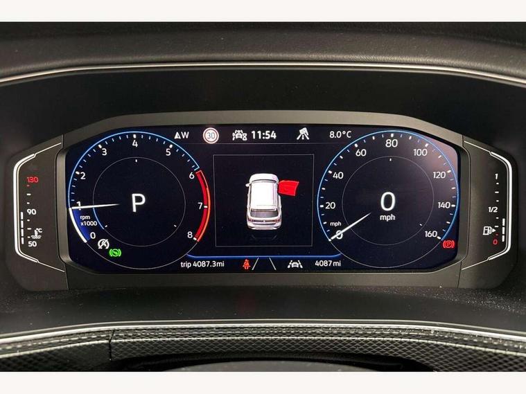 'Lights On' Reminder warning buzzer, 10.25" Digital cockpit pro, Advanced driver attention and drowsiness monitor, Car information display, Driver profile selection including ECO function, Dynamic road sign display, E-Sim card for online connectivity, eCall emergency call system, Front and rear parking sensors, Front assist, forward collision warning, autonomous emergency braking and speed limiter, Low washer fluid warning light, Mobile phone interface with inductive charging, Multifunction computer with visual gear change recommendation for fuel consumption, Multifunction front facing camera for distance control, Operating permit alteration, Power assisted steering, Predictive adaptive cruise control, Preparation for navigation system with media and internet package, Preparation for We connect and We connect plus, Semi-automated driving assistance, travel assist including lane keeping system Lane Assist and emergency assisst, Side assist, Speedo, rev counter, electronic odometer, trip, service interval display, exterior temperature and fuel gauge, Warning sound and light for doors and tailgate open, Warning sound and light for front seatbelts unfastened, Wireless Car net app connect with Apple CarPlay, combined functionality of Apple CarPlay/Android Auto and MirrorLink, Wireless charging, Misfuel prevention device, Start-stop system with battery regeneration (recuperation - energy recovery during braking), 2 USB C ports in front, 2 USB charging sockets on the centre console in the rear charging capacity upto 45W, Diversity antenna for FM reception, Music playback - MP3, WMA and AAC files, Radio, Advanced high beam control dynamic light assist, Automatic dimming interior rear view mirror, Automatic hazard lights activation under emergency braking, Automatic headlight control and coming home and leaving home feature, Black roof rails, Body colour door handles, Body coloured bumpers, Cornering light and poor weather light, Dynamic headlight range control, Electric folding door mirror, adjustable, heated with front passenger exterior mirror lowering function, Exterior mirror housings in black, Exterior mirrors convex on the left and aspherical on the right, Front and rear electric windows, Front door sill protectors with R-Line logo, Galvanised body, Heat insulating and laminated safety glass windshield, Heat insulating darkened glass in side and rear windows, Illuminated molding between headlamps, IQ.Light LED matrix headlamps with LED separate daytime running light, LED rear tail lights with dynamic turn signal, LED third brake light, Lower door sills and door pillars in black, Privacy glass for rear side windows and rear window, Rain sensor, Rear fog light on one side, reversing light on both sides, Rear side wing doors, Rear window aerial, Rear window wiper with intermittent control, Reflectors in all doors, Scuff plates, Tailgate with integrated roof spoiler, 12V Accessory socket in centre console, 2 Front and rear reading lights incorporating LED technology, 3 rear head restraints, 3 seat bench in 2nd row, 60/40 split folding rear seat backrest, Air care climatronic 2 zone air conditioning system, Ambient lighting and logo projection, Brushed stainless steel pedals, Chrome plated radiator grille inserts, air vent surrounds and light switch surrounds, Cloth upholstery, Comfort front sport seats, Door and side trim panel, Driver and front passenger sunvisor with vanity mirror, Dust and pollen filter, Front + rear carpet mats, Front centre armrest, Front centre armrest with storage compartment, Front footwell illumination, Front seat back storage pockets, Glove compartment door with light, Heated front seats, Heating and fresh air system with 4 stage blower, Height/reach adjust steering wheel, Instrument lighting white adjustable panel illumination, Interior light with switch off delay and dimmer, Isofix anchors for child seats on outer rear seats and front passenger seats, Leather gearshift handle, Leather wrapped multifunction steering wheel with paddle shift, Luggage compartment floor, Luggage compartment lighting, Manual front seats with height adjustment, Padded dashboard, Removable luggage compartment cover, Single front passenger seat, Storage compartment in drivers and front passengers door, Titanium black roof lining, Unsplit sliding rear seat bench, Without drawers under front seats, 3 point outer rear seat belts with ECE label, 3 Point seatbelt for centre rear seat, Anti-lock Braking System (ABS) with Hydraulic Brake Assist (HBA), Automatic post collision braking system, Disc brakes in front, Disc brakes in rear, Driver and front passenger safety-optimised head restraints, Drivers and Front Passengers airbags with front passengers airbag deactivation switch, ESC with EDL and ASR (traction control), Extended and predictive pedestrian/cyclist protection, Front and rear passenger curtain airbag system including front side airbags, Height adjustable front 3 point seatbelts + pretensioners, Hill start assist, Pre crash preventive occupant protection, Proactive passenger protection system in combination with front assist, Rear door child safety locks, Rigid safety cell with front and rear crumple zones, Single tone horn, Tyre pressure loss indicator, Volkswagen roadside assistance, Alarm with interior protection, Anti theft alarm system, Anti theft wheel bolts, Electronic engine immobiliser, Remote tailgate unlocking using key fob, Black decorative trims, Titanium Black Decorative inserts - R Line, 18" York alloy wheels in black, Low rolling resistance tyres,