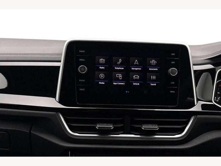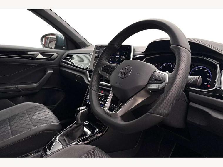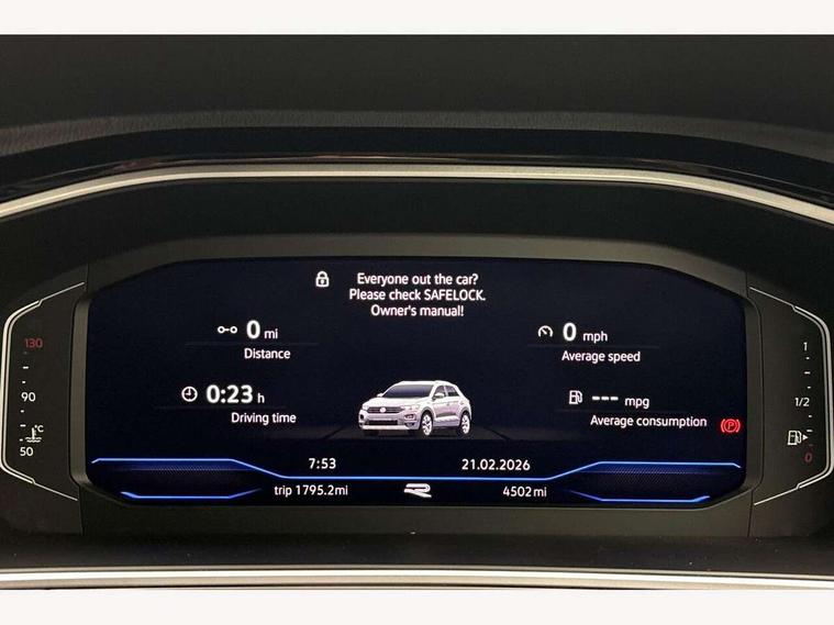 10.25" Digital cockpit pro, Advanced driver attention and drowsiness monitor, Emergency call service, Lane keeping system Lane Assist, Mobile phone interface, Modified key software - reduce switch off time for key status change to Long no motion, Online services, Park assist including front and rear parking sensors, Service interval indicator, Tailgate/trunk lid release from outside, Think blue trainer driver tips and journey analysis, Warning sound and light for front seatbelts unfastened, Wireless app connect, Battery regeneration during braking, Start/stop function with battery regeneration, DAB Digital radio, Diversity antenna for FM reception, Front and rear 6 speakers, Music playback - MP3, WMA and AAC files, Premium USB cable in choice of either Apple or Android smartphone compatibility, SD card slot, Simultaneous pairing of 2 compatible mobile devices, Title and cover art display, We Connect and We Connect Plus functionality, Auto dimming interior rear view mirror, Automatic hazard lights activation under emergency braking, Automatic headlight control with LED separate daytime running lights with coming/leaving home function, Body coloured exterior mirror housings and door handles, Electrically adjustable and heated door mirrors, Extended roof spoiler, Exterior mirrors aspherical on driver side, convex on front passenger side, External USB type C socket and charging sockets, Front windscreen wiper with intermittent wipe and 4 position delay, Heated rear window, LED 3rd brake light, LED rear combination lamps, LED rear number plate lights, Power windows with comfort operation and circuit breaker, Privacy glass for rear side windows and rear window, R-Line design body coloured bumpers, Rain sensor, Rear exhaust tailpipe, Rear fog light on one side and reversing lights on both sides, Rear side wing doors, Rear wash/wipe with intermittent wipe setting, Remote electrically foldable door mirrors, puddle lights and reverse activated passenger's door mirror, 12V power socket in centre console, 3 rear head restraints, 3 seat bench in 2nd row, 4 load lashing points in luggage compartment, Air care climatronic air conditoning system with active combination filter and 2-zone temperature control, Black roof lining, Chrome plated decorative trims, Chrome plated radiator grille inserts, air vent surrounds and light switch surrounds, Door and side trim panel with leatherette insert, Front + rear carpet mats, Front centre armrest, Front cupholders x 2, Front footwell illumination, Front reading light, Front scuff plates with R Line logo, Front seat back storage pockets, Glove compartment door with light, Instrument lighting, white adjustable panel illumination, Interior ambient lighting and surround lighting, Interior light delay, Isofix child seat preparation, Leather gearshift handle, Load-through provision with cup holder when folded down ('Unsplit rear seat bench, split folding backrest, with centre armrest), Luggage compartment lighting, Single front passenger seat, Stainless steel pedals, Storage compartment in left and right luggage area, Storage compartment in rear doors, Storage compartments in driver and front passenger doors, Sunvisors with illuminated vanity mirrors, Variable boot floor, height adjustable and removable, Driver assistance pack without proactive passenger protection - T-Roc, 3 point height adj front seatbelts + pretensioners, 3 point seatbelts in outer rear with ECE label, ABS, Child locks on rear doors, City emergency braking and pedestrian monitoring, Driver and front passenger airbag with front passenger airbag deactivation, Driver and front passenger safety-optimised head restraints, Drivers seatbelt reminder, Electronic parking brake, Electronic Stability Control (ESC) inc EDL (Electronic Differential Lock) and ASR (Traction Control), Front and rear passengers curtain airbag system including front side airbags, Hill start assist, Predictive pedestrian protection, Rear disc brakes, Two tone horn, Tyre pressure loss indicator, Volkswagen roadside assistance, Piano black decorative inserts in dashboard and front door trim panels, Trims for alloy wheels,