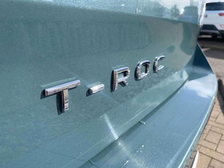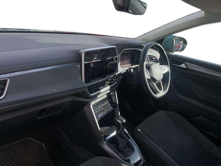 10.25" Digital cockpit pro, Bluetooth mobile phone interface, Driver alert system with fatigue detection, Driver tips and journey analysis, Emergency call service, Lane keeping system Lane Assist, Modified key software - reduce switch off time for key status change to Long no motion, Online services, Park assist including front and rear parking sensors, Service interval indicator, Tailgate/trunk lid release from outside, Think blue trainer driver tips and journey analysis, Warning sound and light for front seatbelts unfastened, Wireless app connect, Battery regeneration during braking, Start/stop function with battery regeneration, Diversity antenna for FM reception, Front and rear 6 speakers, Music playback - MP3, WMA and AAC files, Premium USB cable in choice of either Apple or Android smartphone compatibility, SD card slot, Simultaneous pairing of 2 compatible mobile devices, Title and cover art display, We Connect and We Connect Plus functionality, 3rd brake light, Auto dimming interior rear view mirror, Automatic hazard lights activation under emergency braking, Automatic headlight control with LED separate daytime running lights with coming/leaving home function, Body colour sports bumpers with silver metallic underbody fascia, Dynamic headlight range control with self adjusting whilst driving, Extended roof spoiler, Exterior mirrors aspherical on driver side, convex on front passenger side, External USB type C socket and charging sockets, Front windscreen wiper with intermittent wipe and 4 position delay, Heated rear window, LED Plus headlamps, LED rear combination lamps, LED rear number plate lights, LED tail lamp rear comination lamps, Light mode for poor weather, rain, fog or snow, Power windows with comfort operation and circuit breaker, Rain sensor, Rear exhaust tailpipe, Rear fog light on one side and reversing lights on both sides, Rear side wing doors, Rear wash/wipe with intermittent wipe setting, Remote electrically foldable door mirrors, puddle lights and reverse activated passenger's door mirror, 12V power socket in centre console, 3 rear head restraints, 3 seat bench in 2nd row, 4 load lashing points in luggage compartment, Air care climatronic air conditoning system with active combination filter and 2-zone temperature control, Chrome plated radiator grille inserts, air vent surrounds and light switch surrounds, Door and side trim panel with leatherette insert, Drawer under drivers seat, Front + rear carpet mats, Front centre armrest, Front comfort sports seats, Front cupholders x 2, Front footwell illumination, Instrument lighting, white adjustable panel illumination, Interior ambient lighting and surround lighting, Interior light delay, Isofix child seat preparation, Leather gearshift handle, LED interior light with switch off delay/dimmer and 2 front/rear LED reading lights, Load-through provision with cup holder when folded down ('Unsplit rear seat bench, split folding backrest, with centre armrest), Luggage compartment lighting, Non-folding front passenger seat backrest, Single front passenger seat, Storage compartment in left and right luggage area, Storage compartment in rear doors, Storage compartments in driver and front passenger doors, Sunvisors with illuminated vanity mirrors, Variable boot floor, height adjustable and removable, Driver assistance pack without proactive passenger protection - T-Roc, 3 point height adj front seatbelts + pretensioners, 3 point seatbelts in outer rear with ECE label, ABS, Child locks on rear doors, Driver and front passenger airbag with front passenger airbag deactivation, Driver and front passenger safety-optimised head restraints, Drivers seatbelt reminder, Electronic parking brake, Electronic Stability Control (ESC) inc EDL (Electronic Differential Lock) and ASR (Traction Control), Front and rear passengers curtain airbag system including front side airbags, Front assist with city emergency braking and pedestrian monitoring, Front seat side impact airbags, Predictive pedestrian protection, Rear disc brakes, Single tone horn, Tyre pressure loss indicator, Volkswagen roadside assistance, Alarm with interior protection, Anti-theft alarm system with interior monitoring, backup horn, and towing protection, Remote central locking with SAFELOCK, radio remote control with 2 remote control folding keys, Trims for alloy wheels,