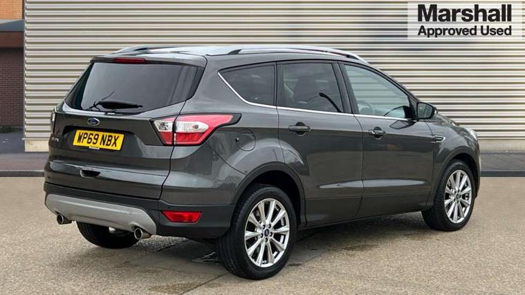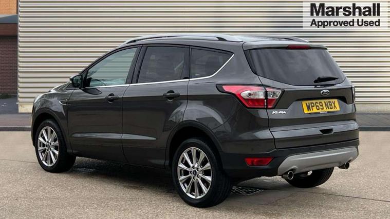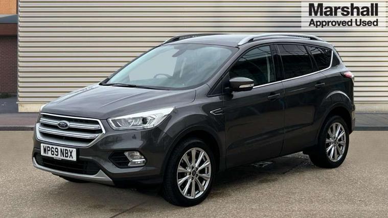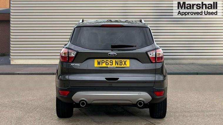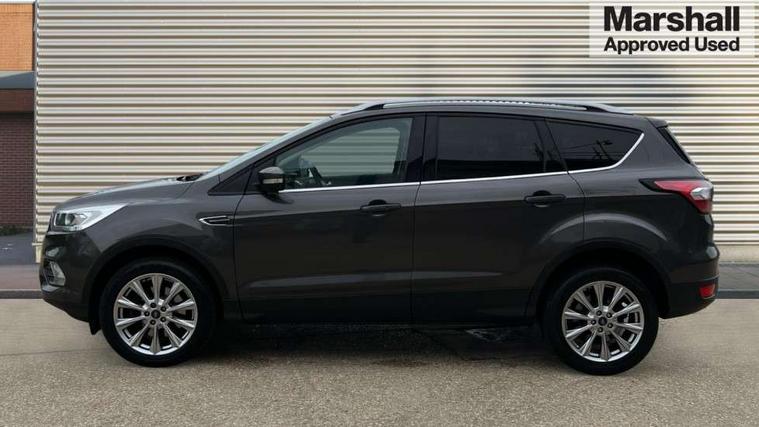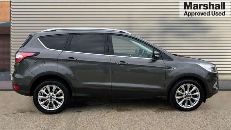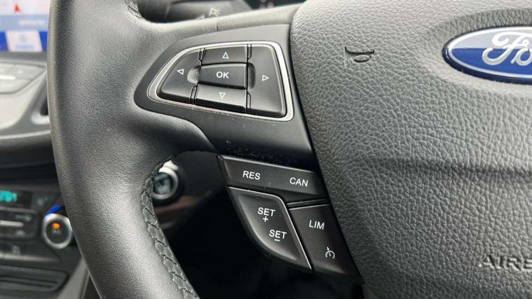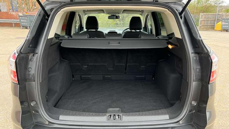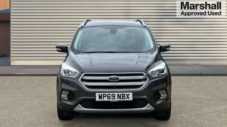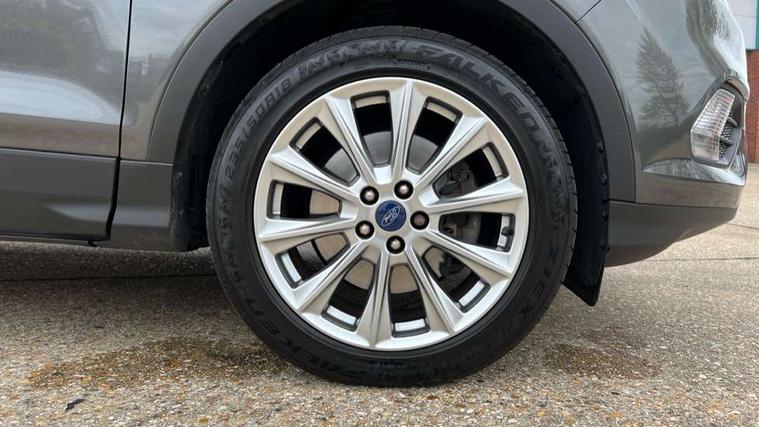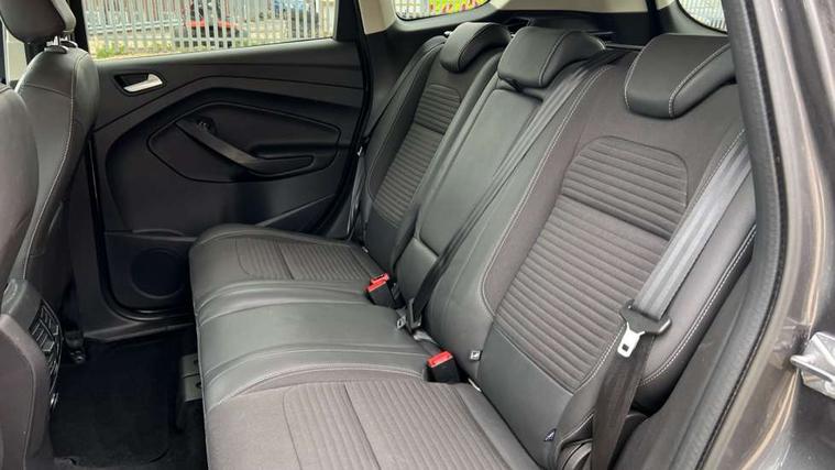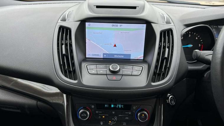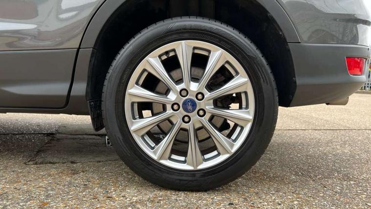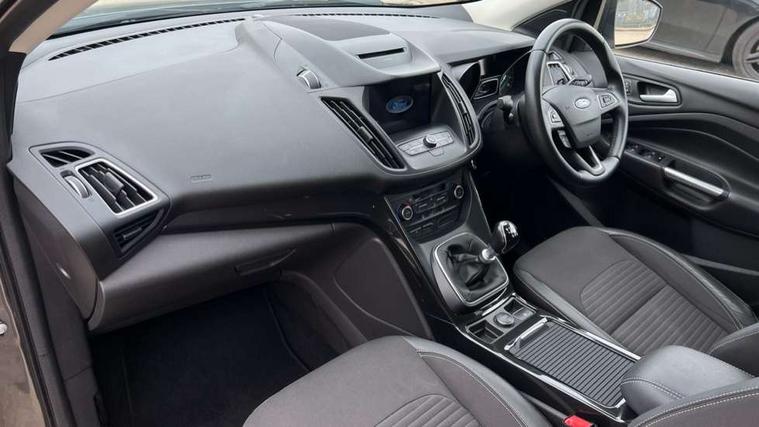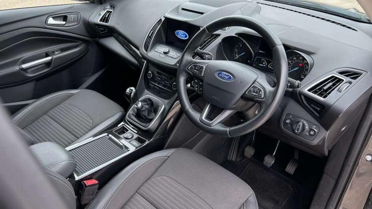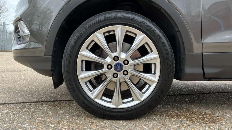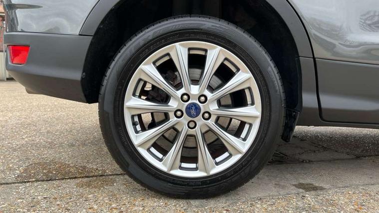 Apple car play/Android Auto, EPAS, Hands free telephone, Trip computer, 2 USB ports, Auxiliary socket for external device, Remote audio controls on steering wheel, Auto dimming rear view mirror, Body colour bumpers, Body colour rear spoiler, Electrically operated and heated door mirrors with side indicators, Electrically operated front and rear windows with global closing, Front fog lights, Front scuff plate, Power folding door mirrors, Quickclear heated windscreen, Rain sensing wipers, Tailgate wash/wipe, Twin exhausts and rear diffuser, 6 way manually adjustable passenger seat with lumbar support, 60/40 split/folding rear back and cushion, Auxiliary power socket in luggage area, Centre console with stowage tray/bottle holder/CD stowage/front and rear 12V power point, Driver/passenger front seatback pockets, Dual electronic automatic temperature control, Folding rear centre armrest, Footwell courtesy lights front and rear, Front floor mats, Front head restraints, Front overhead courtesy lights with theatre style dimming and delay, Front/rear reading lights, Isofix system on outer rear seats, Leather steering wheel and gear knob, Multi-colour ambient interior lighting, Part leather upholstery, Reach + rake adjustable steering column, Rear floor mats, Rear head restraints, Sports style front seats, Stowage unit in upper instrument panel, Tie down hooks, Tonneau cover, Variable intensity instrument illumination, Appearance pack - Kuga, 3 point seatbelts on all 3 rear seats, ABS/EBD, Airbags - front driver/passenger, front & rear side, curtain, drivers knee, EBA, Electric traction assist system, Electronic Stability Programme, Front passenger airbag deactivation switch, Hill start assist, Intelligent Protection System (IPS), Tyre pressure monitoring system, Engine immobiliser, Keyless entry, Keyless start with 'Ford Power' starter button, Locking wheel nuts, MyKey system, Remote powered central double locking doors, Thatcham category 1 alarm, Mini steel spare wheel,