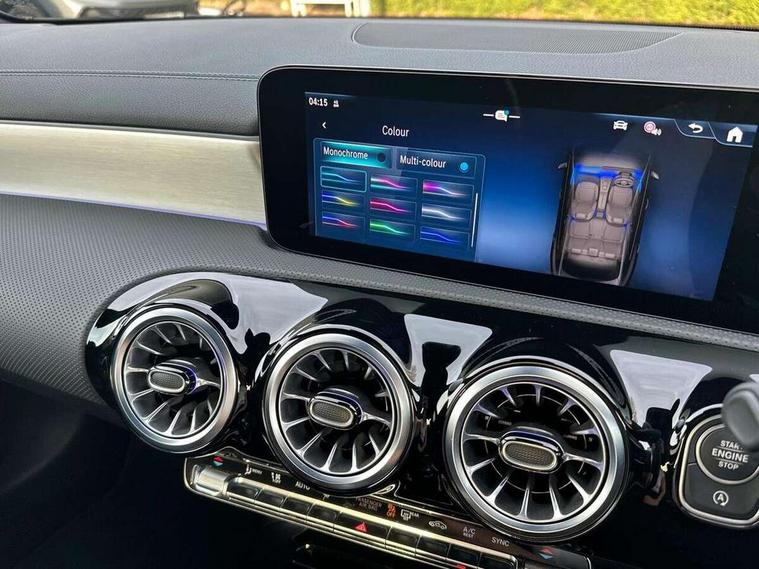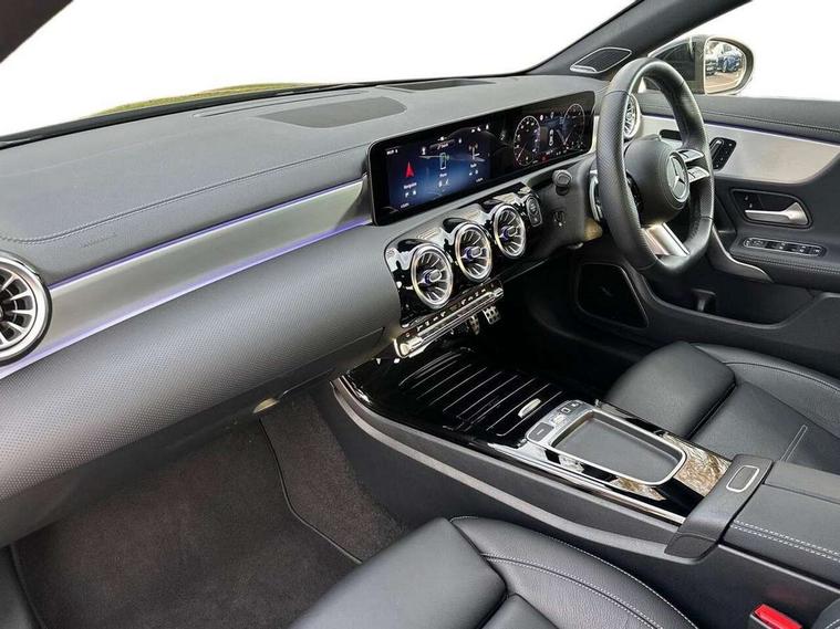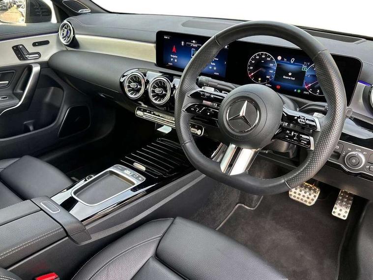 10.25 inch Instrument display with digital cockpit, 10.25 inch touchscreen central media display, Active lane keeping assist, Attention assist - Monitors steering behaviour and long journey fatigue, Bluetooth connection, Car wash mode, Cruise control with limiter, Direct steer system, DYNAMIC SELECT with a choice of driving modes (ECO, Comfort, Sport and Individual), ECO start/stop function, Fingerprint sensor, Fluid level warning indicator for fuel, oil, coolant and washer fluid, Hard-disk navigation, Head up Display, Hey Mercedes Voice activation, Lamp failure indicator, MBUX augmented reality for navigation, Mercedes me connect including emergency call system, accident recovery, breakdown and maintenance management, Mercedes me remote services, Outside temperature gauge, Owners manual in English, Pre-installation of private car share, Radio aerial integrated into front and rear windshields, Service indicator (ASSYST), Smartphone integration with Apple CarPlay and Android auto, Traffic sign assist, Trip computer in multifunction display with current consumption indicator, Wireless charging in the front centre console, Comfort suspension with ride height lowering, Rear axle multi-link, Burmester lettering on the speakers, Burmester surround sound system (710W) with dolby atmos, speakers - 1 central, 1 woofer, 1 tweeter, 1 subwoofer with 60W, 2 in C pillar, DAB digital radio tuner, MBUX multimedia system, Pre installation for Mercedes Benz Link, Adaptive brake lights, AMG body styling with AMG front apron and rear apron and visible exhaust tailpipe in chrome trim elements, Body colour door handles, Electric panoramic sunroof with automatic tilt and convenience closing fuinctions, rain sensor auto closing and electronic roller sunblind, Electric windows, Electrically adjustable and heated door mirrors with integrated LED indicators, Exhaust system with 2 Visible tailpipe trim elements and rear apron with trim in chrome, Hand free access, Headlamp assist automatic headlamp activation, Heated glass rear windscreen + timer control, High level LED third brake light, Integrated LED daytime running lights, Interior mirror with black reading lamps and frameless, LED tail lamp, Multibeam LED headlamps with adaptive highbeam assist plus, Privacy glass with dark tinting on rear side windows and rear window, Radiator grille with Mercedes-Benz pattern in chrome and central Mercedes star, single louvre in high-gloss black with chrome inserts, Rain sensing windscreen wipers with two sensitivity settings, Rear boot, Rear fog lamp, Rear side wing doors, Variable front intermittent wipers, 3 seat bench in 2nd row, 3 twin spoke flattened multifunction steering wheel in nappa leather - horizontal twin spoke in high gloss black, vertical twin spoke in silver chrome, 40:20:40 split folding rear seat backrests, Air conditioning - Two zone thermotronic luxury automatic climate control with display, Air vents with surround in silver chrome, Automatic child seat recognition sensor, Black roof lining, Brushed stainless steel sports pedals with rubber studs, Electrically adjustable front memory seats including 4 way lumbar support, Floor mats with stitched AMG lettering, Fluorescent jacket, Front centre armrest with stowage, Galvanished gear shift paddles in silver chrome, Illuminated front door sills with Mercedes Benz lettering and changeable cover, Interior lighting - 64 colour Ambient lighting, Luggage net on driver/front passenger seat backrest, Manually height and reach adjustable steering column, Rear armrest with two integral cup holders for drinks, Rear head restraints, Single front passenger seat, Sport seats with fixed head restraints, Stowage compartment in centre console with retractable cover, Sunvisors with illuminated vanity mirrors, Twin front cupholders, Two outer rear seat isofix and top tether child seat fixing points, Drive parking assist pack with 360 degree camera - CLA, Keyless go comfort pack - CLA, Light and sight pack - CLA, Mirror pack - CLA, Night package - CLA, Seat comfort pack - CLA, USB package plus - CLA, Winter pack - CLA, Active bonnet pedestrain safety measure which detects an impact and raises bonnet by 65mm, Adaptive brake assist with hold function and hill start assist, Anti lock braking system (ABS) with brake assist, Black seat belts, Bonnet with power domes, Brake calipers with Mercedes-Benz lettering, Brake pad wear warning indicator, Childproof locks manually operated for rear doors and electrically operated for rear power windows, Crash responsive emergency lighting, Driver and front passenger head and sidebags, Driver and front passenger windowbags, Drivers knee airbag, Dual stage driver and front passenger airbags, Electric parking brake, Electronic stability programme with acceleration skid control, ESP curve dynamic assist, Exit warning, Front and rear seatbelt reminder, Front passenger seat occupancy sensor, Perforated front brake discs, Sports braking system, Three point rear seat belts, Tyre pressure monitoring system, Warning triangle and first aid kit, Alarm system with immobiliser and interior protection -Thatcham category 1, Guard 360 deg vehicle protection - tow away protection with visual, acoustic warning, interior monitoring, preinstallation for parking damage, Remote central locking and crash sensor with emergency opening function, Light aluminium with longitudinal grain interior trim, 19" AMG multi-spoke black painted light alloy wheels with high sheen rim finish, Summer tyres, Tirefit tyre sealant kit,