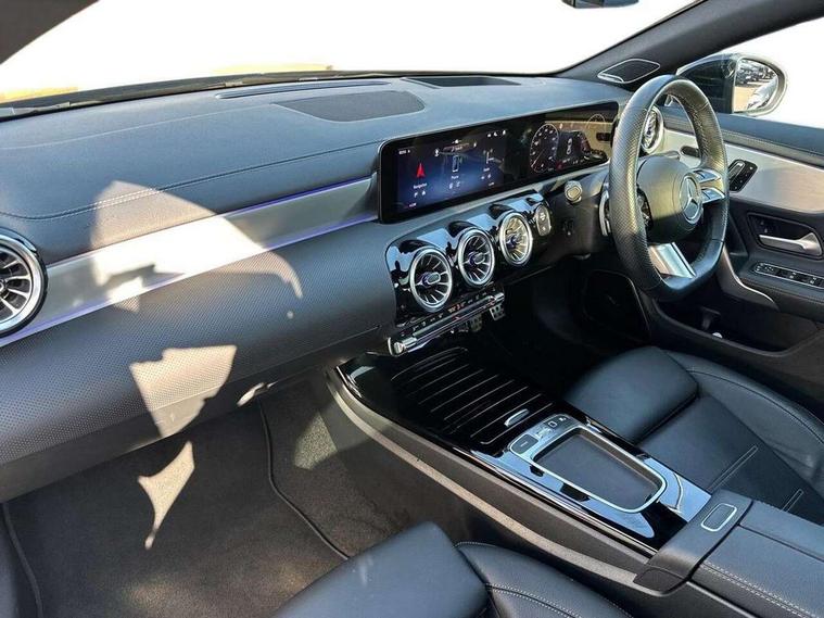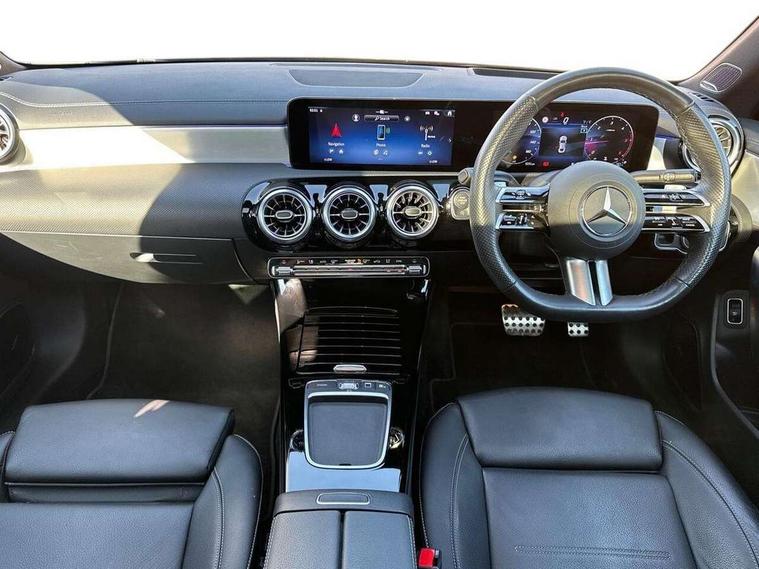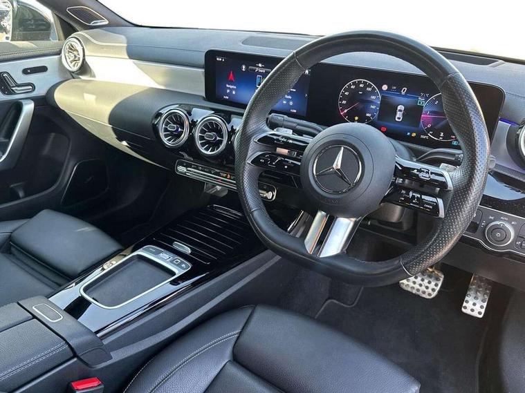 10.25 inch Instrument display with digital cockpit, 10.25 inch touchscreen central media display, Active lane keeping assist, Attention assist - Monitors steering behaviour and long journey fatigue, Bluetooth connection, Car wash mode, Cruise control with limiter, Direct steer system, DYNAMIC SELECT with a choice of driving modes (ECO, Comfort, Sport and Individual), ECO start/stop function, Fingerprint sensor, Fluid level warning indicator for fuel, oil, coolant and washer fluid, Hard-disk navigation, Head up Display, Hey Mercedes Voice activation, Lamp failure indicator, MBUX augmented reality for navigation, Mercedes me connect including emergency call system, accident recovery, breakdown and maintenance management, Mercedes me remote services, Outside temperature gauge, Owners manual in English, Pre-installation of private car share, Radio aerial integrated into front and rear windshields, Service indicator (ASSYST), Smartphone integration with Apple CarPlay and Android auto, Traffic sign assist, Trip computer in multifunction display with current consumption indicator, Wireless charging in the front centre console, Comfort suspension with ride height lowering, Rear axle multi-link, Burmester lettering on the speakers, Burmester surround sound system (710W) with dolby atmos, speakers - 1 central, 1 woofer, 1 tweeter, 1 subwoofer with 60W, 2 in C pillar, DAB digital radio tuner, MBUX multimedia system, Pre installation for Mercedes Benz Link, Adaptive brake lights, AMG body styling with AMG front apron and rear apron and visible exhaust tailpipe in chrome trim elements, Body colour door handles, Electric panoramic sunroof with automatic tilt and convenience closing fuinctions, rain sensor auto closing and electronic roller sunblind, Electric windows, Electrically adjustable and heated door mirrors with integrated LED indicators, Exhaust system with 2 Visible tailpipe trim elements and rear apron with trim in chrome, Hand free access, Headlamp assist automatic headlamp activation, Heated glass rear windscreen + timer control, High level LED third brake light, Integrated LED daytime running lights, Interior mirror with black reading lamps and frameless, LED tail lamp, Multibeam LED headlamps with adaptive highbeam assist plus, Privacy glass with dark tinting on rear side windows and rear window, Radiator grille with Mercedes-Benz pattern in chrome and central Mercedes star, single louvre in high-gloss black with chrome inserts, Rain sensing windscreen wipers with two sensitivity settings, Rear boot, Rear fog lamp, Rear side wing doors, Variable front intermittent wipers, 3 seat bench in 2nd row, 3 twin spoke flattened multifunction steering wheel in nappa leather - horizontal twin spoke in high gloss black, vertical twin spoke in silver chrome, 40:20:40 split folding rear seat backrests, Air conditioning - Two zone thermotronic luxury automatic climate control with display, Air vents with surround in silver chrome, Automatic child seat recognition sensor, Black roof lining, Brushed stainless steel sports pedals with rubber studs, Electrically adjustable front memory seats including 4 way lumbar support, Floor mats with stitched AMG lettering, Fluorescent jacket, Front centre armrest with stowage, Galvanished gear shift paddles in silver chrome, Illuminated front door sills with Mercedes Benz lettering and changeable cover, Interior lighting - 64 colour Ambient lighting, Luggage net on driver/front passenger seat backrest, Manually height and reach adjustable steering column, Rear armrest with two integral cup holders for drinks, Rear head restraints, Single front passenger seat, Sport seats with fixed head restraints, Stowage compartment in centre console with retractable cover, Sunvisors with illuminated vanity mirrors, Twin front cupholders, Two outer rear seat isofix and top tether child seat fixing points, Drive parking assist pack with 360 degree camera - CLA, Keyless go comfort pack - CLA, Light and sight pack - CLA, Mirror pack - CLA, Night package - CLA, Seat comfort pack - CLA, USB package plus - CLA, Winter pack - CLA, Active bonnet pedestrain safety measure which detects an impact and raises bonnet by 65mm, Adaptive brake assist with hold function and hill start assist, Anti lock braking system (ABS) with brake assist, Black seat belts, Bonnet with power domes, Brake calipers with Mercedes-Benz lettering, Brake pad wear warning indicator, Childproof locks manually operated for rear doors and electrically operated for rear power windows, Crash responsive emergency lighting, Driver and front passenger head and sidebags, Driver and front passenger windowbags, Drivers knee airbag, Dual stage driver and front passenger airbags, Electric parking brake, Electronic stability programme with acceleration skid control, ESP curve dynamic assist, Exit warning, Front and rear seatbelt reminder, Front passenger seat occupancy sensor, Perforated front brake discs, Sports braking system, Three point rear seat belts, Tyre pressure monitoring system, Warning triangle and first aid kit, Alarm system with immobiliser and interior protection -Thatcham category 1, Guard 360 deg vehicle protection - tow away protection with visual, acoustic warning, interior monitoring, preinstallation for parking damage, Remote central locking and crash sensor with emergency opening function, Light aluminium with longitudinal grain interior trim, 19" AMG multi-spoke black painted light alloy wheels with high sheen rim finish, Summer tyres, Tirefit tyre sealant kit,