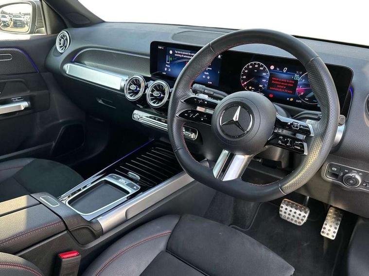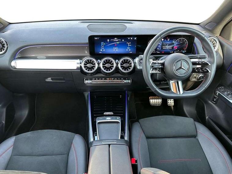 10.25 inch touchscreen central media display, 10.25" Digital instrument cluster display screen, Attention assist - Monitors steering behaviour and long journey fatigue, Blind spot assist, Bluetooth connection, Brake pad wear indicator warning light, Car wash mode, Direct steering, DYNAMIC SELECT with a choice of driving modes (ECO, Comfort, Sport and Individual), ECO start/stop function, Exit warning function, Fingerprint scanner, Fluid level warning indicator for fuel, oil, coolant and washer fluid, Hard disk navigation, Hey Mercedes Voice activation, Lamp failure indicator, Lane keep assist, MBUX navigation premium, Mercedes me connect including emergency call system, accident recovery, breakdown and maintenance management, Mercedes me remote services, Outside temperature gauge, Owners manual and service booklet in English, Pre-installation of private car share, Preinstallation for parking damage notification, Radio aerial integrated into front and rear windshields, Service indicator (ASSYST), Smartphone integration with Apple CarPlay and Android auto, Speed limit assist, Tailgate, Trip computer in multifunction display with current consumption indicator, Wireless charging, Comfort suspension with ride height lowering, Rear axle multi-link, DAB digital radio tuner, MBUX multimedia system, Mercedes Benz sound system (225 W) with 10 speakers, 1 central speaker, speakers on doors, a tweeter on door, one sub woofer + boost amplifier, Pre installation for Mercedes Benz Link, Adaptive brake lights, Adaptive high beam assist, AMG front apron with front splitter in the colour of the vehicle with chrome trim element, AMG rear apron with visible tailpipe trim and chrome trim element, AMG specific/dual flow exhaust pipes in chrome (non-functional), Beltline trim and window line trim strip in high gloss aluminium, Black grained side sill trim with chrome inlay, Body coloured door handles, Electric adjustable and heated door mirrors with integrated LED side indicators, Front and rear electric windows, Headlamp assist automatic headlamp activation, Heat insulating dark tinted glass for rear side windows and rear window, Heated glass rear windscreen + timer control, High level LED third brake light, Illuminated door sill panels with Mercedes-Benz lettering, Interior mirror with black reading lamps and frameless, LED high performance headlamps with integrated LED daytime running lights, LED tail lamp, Polished aluminium roof rails, Radiator grille as a diamond grille with chrome pins and central Mercedes star, Rain sensor windscreen wipers, Rear fog lamp, Rear side wing doors, Rear wiper, Single louvre in matt grey with chrome inserts and black highlights, Two visible tailpipe trim elements exhaust, Wheel arch liners in the colour of the vehicle, 3 seat bench in 2nd row, 3 twin spoke flattened multifunction steering wheel in nappa leather - horizontal twin spoke in high gloss black, vertical twin spoke in silver chrome, 4 way adjustable lumbar support, 40:20:40 split folding rear seats, Air vents with silver chrome surrounds, AMG floor mats, AMG sports pedals with brushed stainless steel surfaces and black rubber studs, Automatic child seat recognition sensor, Black roof lining, Electrically adjustable front memory seats, Fluorescent jacket, Front and rear headrests, Front centre armrest with stowage, Galvanised steering wheel gearshift paddles in silver chrome, Heated front seats, Height adjustable head restraints, Height/reach adjustable steering column, Interior lighting - 64 colour Ambient lighting, Luggage net on driver/front passenger seat backrest, Single front passenger seat, Sports seats, Stowage compartment in centre console with retractable cover and double cupholder and 12 V socket, Sun visors with illuminated vanity mirrors, THERMOTRONIC automatic climate control, Third row of seats for two people on rear seat, Twin front cup holders, Two outer rear seat isofix and top tether child seat fixing points, Easy pack tailgate, Interior lighting with light and sight pack - GLB, KEYLESS-GO Comfort package - GLB, Mirror package - GLB, Parking Package with reversing camera - GLB, Seat comfort package - GLB, USB package plus - GLB, 3 rear 3 point seatbelts, Active bonnet pedestrain safety measure which detects an impact and raises bonnet by 65mm, Active brake assist includes forward collision warning system with autonomous braking, Adaptive brake assist with hold function and hill start assist, Airbags - kneebag for driver, Anti-lock braking system (ABS) with brake assist, Bonnet with power domes, Childproof locks manually operated for rear doors and electrically operated for rear power windows, Crash responsive emergency lighting, Curve dynamic assist, Driver and front passenger head and sidebags, Driver and front passenger windowbags, Dual stage driver and front passenger airbags, Electric parking brake, Electronic stability programme with acceleration skid control, Front and rear seatbelt reminder, Front brake callipers with Mercedes Benz lettering, Front passenger seat occupancy sensor, Perforated front brake discs, Tyre pressure monitoring system, Warning triangle and first aid kit, Guard 360 degree vehicle protection - Anti theft alarm system, tow away protection with visual, acoustic warning and alarm, Interior monitoring system, KEYLESS-GO starting function, Remote central locking and crash sensor with emergency opening function, Thatcham category 1 alarm system with immobiliser and interior protection, Black seatbelts, Carbon structure trim, 20" AMG multi spoke light alloy wheels aerodynamically optimised and painted in black with a high-sheen finish RVU, Summer tyres, Tirefit tyre sealant kit,